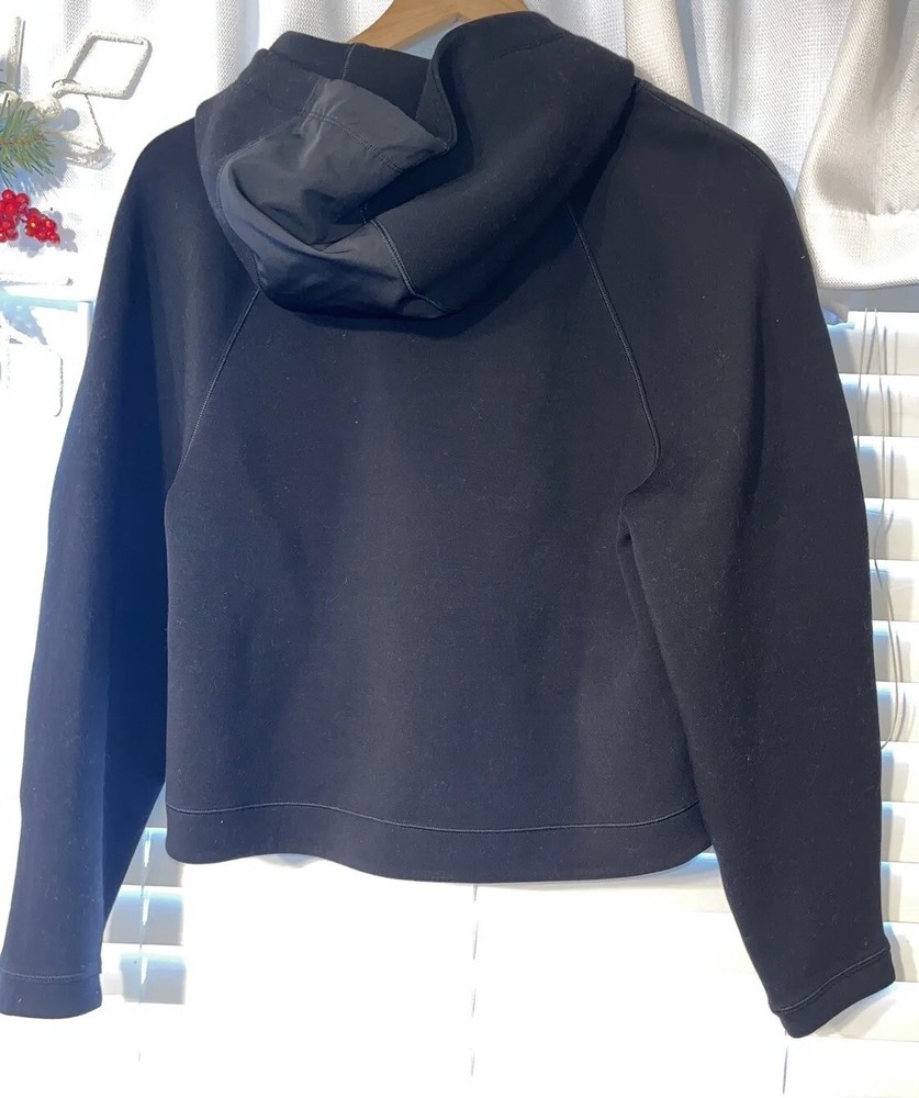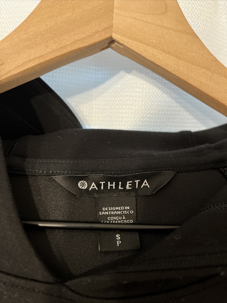 ATHLETA Women's black get set hooded sweatshirt, Size S $109 Very high quality warm sweatshirt. Worn only once or twice. Excellent condition. Two cozy pockets in front. No fading- just hard to photograph black :) Chest measures about 17 inches. Sleeve from shoulder seam is about 26.5 inches. Length from neck seam to bottom is 17.5 inches Smoke free very clean home. Questions welcome!!