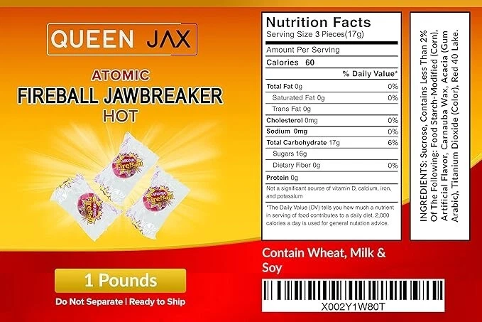 Free eBay listing template designed by dewiso.com ATOMIC Fireballs Fireball Candy Bulk 1 LB Hot Jawbreakers Individually Wrapped Brand: QUEEN JAX Flavor: Cinnamon Unit Count: 16.0 Ounce Number of Items: 1 Occasion: Halloween Package Dimensions: 8.62 x 5 x 2.36 inches; 1 Pounds Features and further details Legal Disclaimer Statements regarding dietary supplements have not been evaluated by the FDA and are not intended to diagnose, treat, cure, or prevent any disease or health condition. Contact us We can be contacted at any time through eBay messages if you have any questions, comments or product requests. We will respond to you within 24 hours and do our best to help you out! We encourage our customers to contact us with any questions or concerns! We'd like to be sure you are completely satisfied with your purchase. klikshop