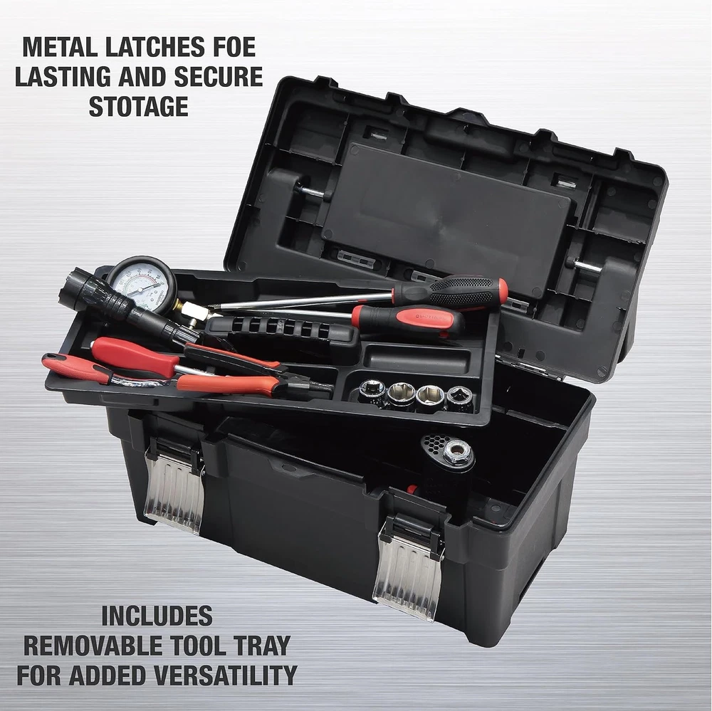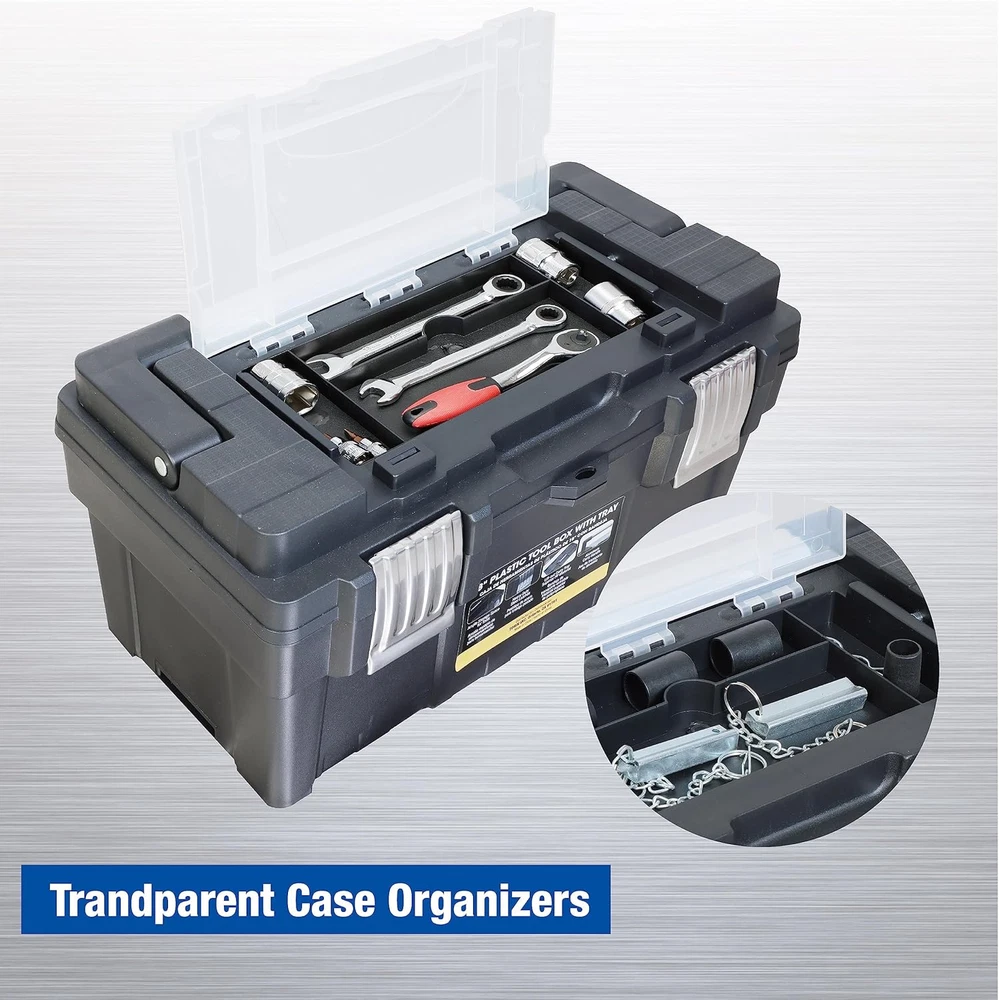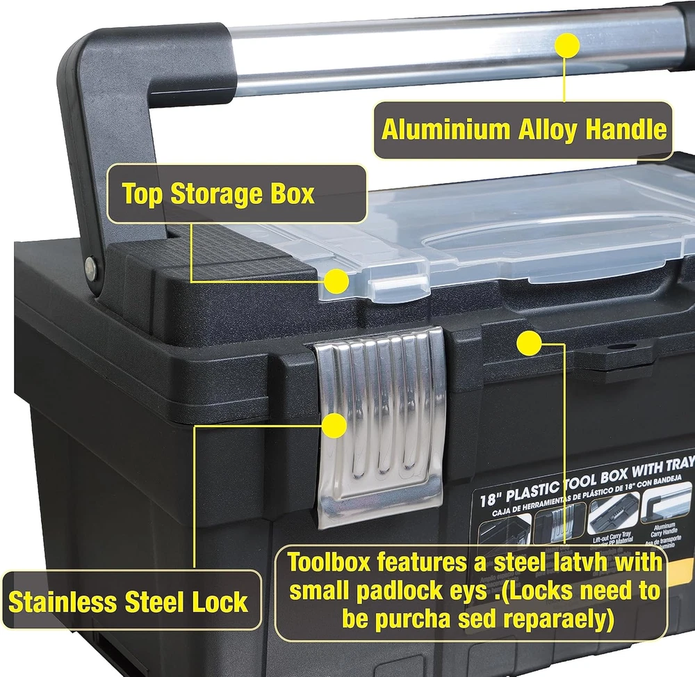 Store New Arrivals Add to Favorite View Feedback Contact ATRJH-9019U 18-Inch Plastic Tool Box Organizer & Durable Tool Storage Box: Portable Removable Tray and Alum Alloy Handle Tool Box with 2 Metal Snap Lock for Enhanced Security, Black Description Item model number ATRJH-9019U Part Number ATRJH-9019U Style Plastic Tool Box Number of Compartments 1 Item Package Quantity 1 Color Black Water Resistance Level Water Resistant Material Plastic Country of Origin China Batteries Required? No Maximum Weight Recommendation 33 Pounds Item Weight 4.9 pounds Size 17.6"x 9.2"x8.8" Product Dimensions 17.6"L x 9.2"W x 8.8"H Included Components Plastic Tool Box, Foam Pad Insert, User Manual EXTRA STORAGE SPACE AVAILABLE: The thoughtful head cover design emphasizes strength and space as the open from top storage box makes it easier to use and store items during work EXCELLENT MATERIALS: This 18-inch plastic tool box is made from durable and robust materials ensuring long-lasting performance and protection for your tools. The outside dimensions: L 17.6" * W 9.2" * H 8.8" Internal dimensions: L 16.2" * W 7.3" * H 6.8" PORTABLE & LIGHTWEIGHT DESIGN: The easy-to-carry alum alloy handle and lightweight construction make this plastic tool box a convenient choice for transporting your tools to any job site. MODULAR DESIGN: Removable trays allow simple organization of smaller tools and accessories keeping them within easy reach while you work HIGH SECURITY: Two strong metal snap locks keep the tool box securely closed ensuring your tools remain stable and protected during transport This plastic tool box is made of durable and robust materials ensuring long-lasting performance and protection for your tools. The outside dimensions: L 17.6"" * W 9.2"" * H 8.8"" and the internal dimensions: L 16.2"" * W 7.3"" * H 6.8"". Its easy-to-carry alum alloy handle and lightweight construction make this plastic tool box a convenient choice for transporting your tools to any job site. The removable trays for organization provide ample storage space which allow simple organization of smaller tools and accessories keeping them within easy reach while you work. Two strong metal snap locks keep the tool box securely closed ensuring your tools remain stable and protected during transport. The toolbox features a steel latch with a small latch hole that can be padlocked or zipped to secure the case (purchased separately). Last but not least, the thoughtful head cover design also provides the added strength and extra space which improves functionality all around during your work. ABOUT US We offer the best prices around on high quality products. Our E-store includes media such as books, movies, music and games while offering electronics, toys, sporting apparel, clothing, tools, general home, garden items and more. SHIPPING We are always working hard to ensure your package arrives as soon as possible. Please understand that some factors like weather, high postal traffic, and the performance of shipping companies are outside of our control. We offer free shipping to the lower 48 states and ship within 2 business days of payment, usually sooner. We do not accept P.O. Boxes. Please provide a physical address. For shipping outside of the continental USA, we only use eBay's Global Shipping Program.The item is shipped to KY and then sent to the rest of the world. International customers are responsible for all duties and taxes. Continue to check out in order to calculate costs for shipping the item to your country. Messages regarding eBay's Global Shipping Program MUST be directed at eBay EXCLUSIVELY. RETURNS We offer a 30-Day Return Policy on items which you are not completely satisfied with. You have the option for a full-refund or an exchange of the item. No returns are available on items shipped outside of the USA. PAYMENT We accept PayPal. CONTACT US This page content is yet to come Please ad us to your favorite seller and visit again later Thank You CUSTOMER SATISFACTION We try our very best to make sure every customer is completely satisfied. If there's a problem, message us! We're happy to help. WE ACCEPT Copyright © 2021 AutoDS. | All Rights Reserved