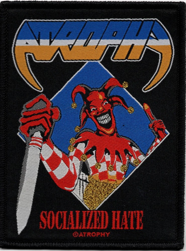 Brand New and Official !!! Atrophy-3 Bundle Woven Patches Collection : 1) Violent by Nature- Patch measures 3" X 4" (7.62 cm x 10.16 cm)-Red Borders !!! 2) Socialized Hate- Patch measures 3.25" X 4.25" (8.25 cm x 10.79 cm)-Black Borders and Gold Glitter Thread !!! 3) Socialized Hate/Violent by Nature-Stripe- Patch measures 2.25 " x 7.75" (5.71 cm x 19.68 cm)-Green Borders !!! Perfect for sewing onto Bags, Jeans and Jackets, or in fact, wherever you like! THE PATCHES ARE NEW. USA $2.99 (SHIPPING AND HANDLING) AND REST OF THE WORLD(EBAY INTERNATIONAL SHIPPING). SEE MY OTHER ITEMS FOR MORE RARE TITLES.