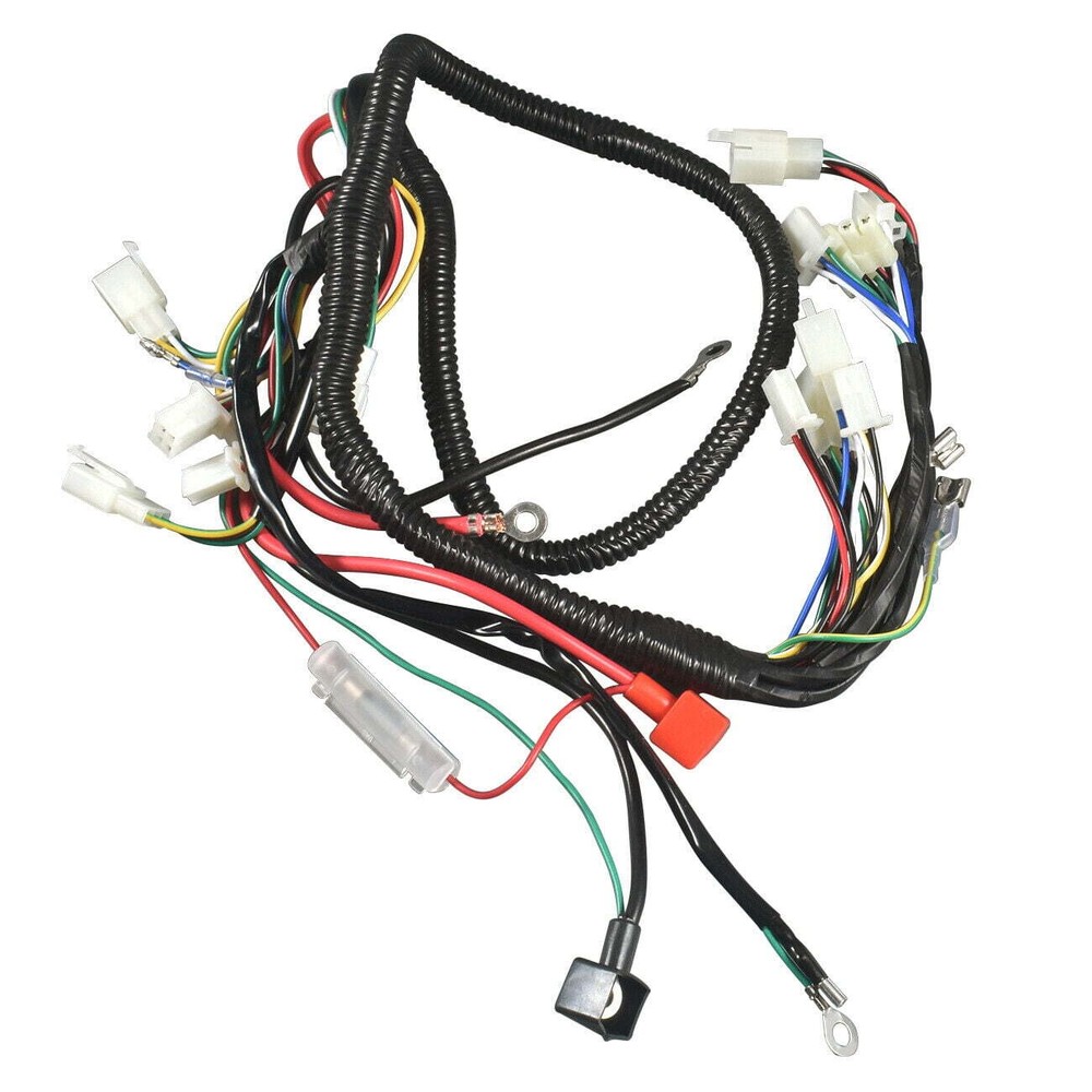 Complete Electric Wiring Harness Kit ATV Wire For GY6 150cc 125cc Scooter Moped Fitment: Fits almost all years Chinese made electric start upright engine GY6 125cc 150cc ATV / QUAD / Coolster / Go Kart / 4 wheelers / Scooter / buggy / Motowork & more Package Include:1 Wire loom, 1 Electric door lock, 1 Raley, 1 CDI, 1 Stablilzer, 1 Magneto Coil, 1 Ignition Coil Does NOT fit 49cc 50cc 70cc 110cc 150cc 200cc 250cc 300cc Zongshen Lifan ATV / QUAD with different stator Compatible: GY6 125cc 150cc ATV / QUAD with 6 coil stator ATTENTION: Please check the wiring diagram first before installation. Please consult or hire a mechanic to install this wiring harness if you are not sure about the wirings. Faulty assembly on rare occasions may cause fire. Shipping/Fulfillment We offer FREE shipping to most States except for the following: California, Connecticut, District of Columbia, Massachusetts, Louisiana, Maryland, Mississippi, Tennessee, Washington, New Mexico, Illinois We use a selection of shipping services such as but not limited to: UPS, FedEx, USPS, DGM SmartMail Expedited, etc. We only ship to the lower 48 states, no APO/FPO addresses, or PO Boxes allowed. Local pickups and combined shipping options are not provided at this time. ORDER FULLFILLMENT Most items are forwarded to our supplier for processing, which will then be fulfilled through a distributor that is closest to your location. Th ese distributors may be names you recognize or sourced from smaller local operations. Return You can return a product for up to 30 days from the date you purchased it. Any product you return must be in the same condition you received it and in the original packaging. Payment We accept payment by any of the following methods: PayPal, GPay, Venmo, Visa, Mastercard, American Express, and Discover Feedback Customer satisfaction is very important to us. If you have any problem with your order, please contact us and we will do our best to make you satisfied. Contact Us If you have any queries, please contact us via eBay. We usually respond within 24 hours on weekdays. Please visit our eBay store to check out other items for sale! Thank you for shopping at our store.