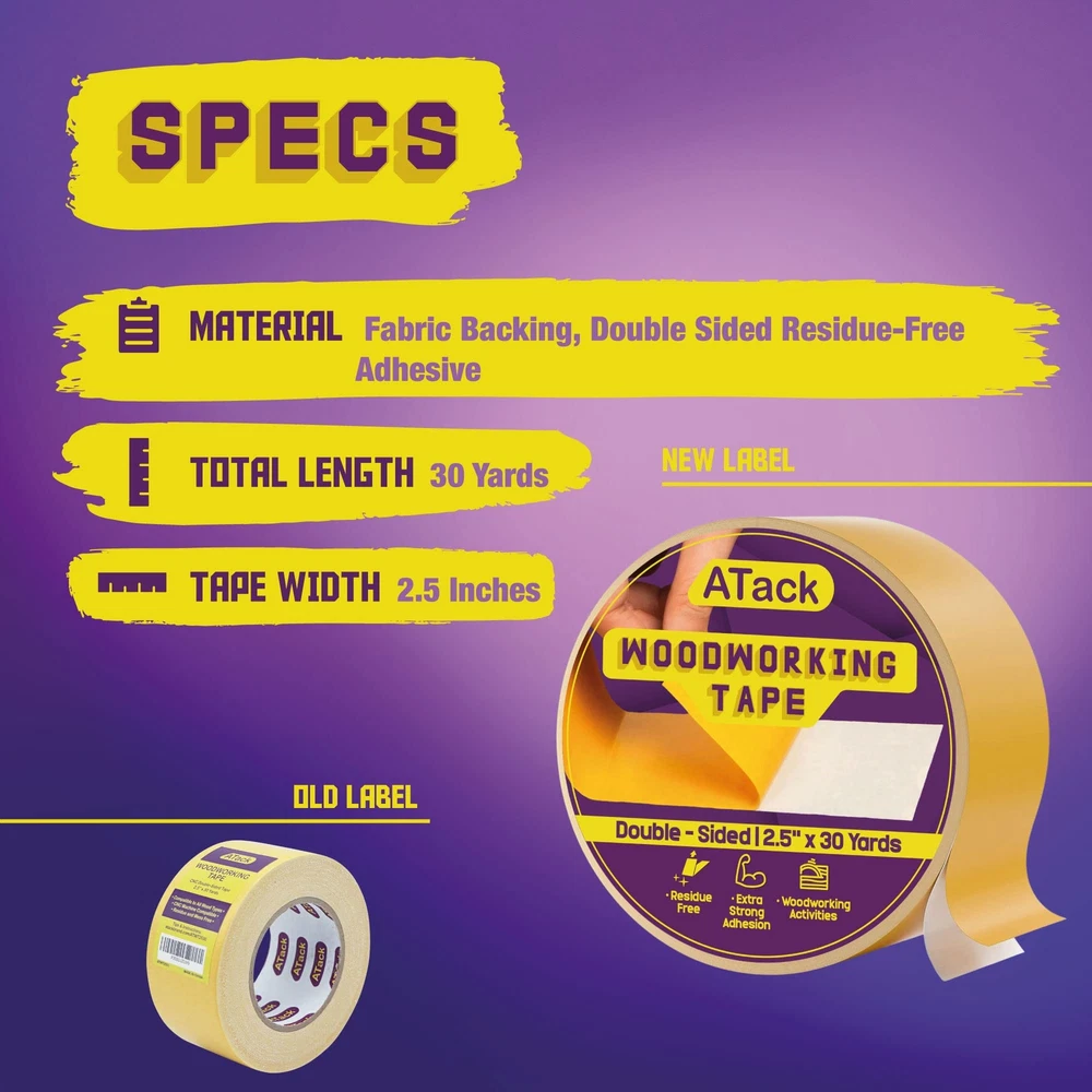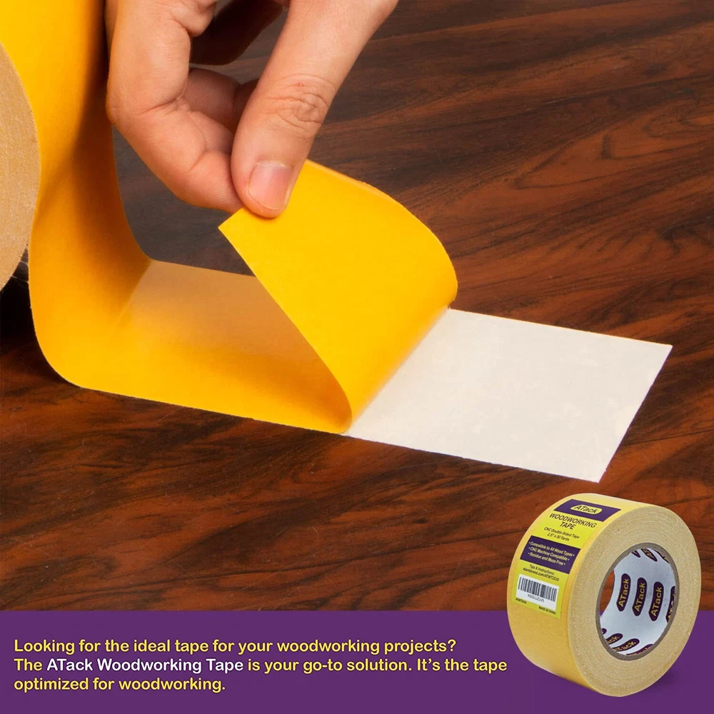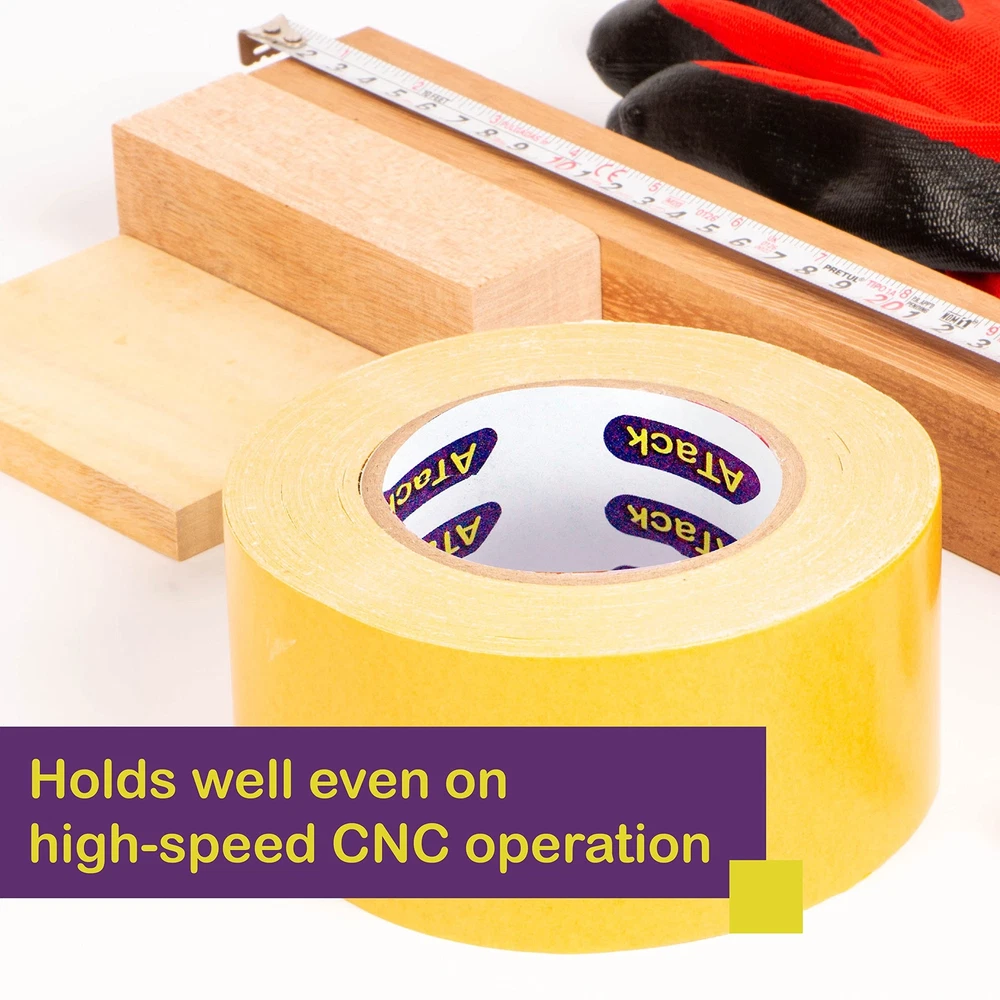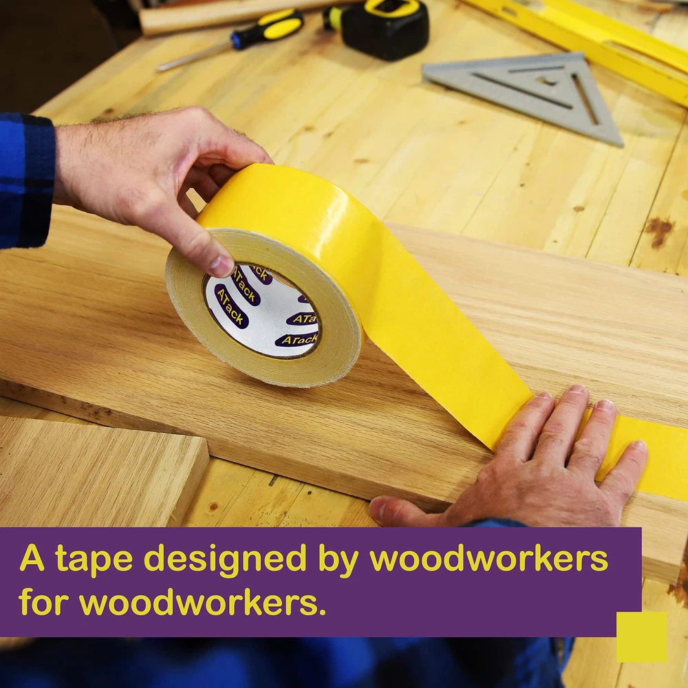 ATack Double-Sided Woodworking Crafter’s Tape, 2.5-Inch by 30-Yards Traceless... Product Overview Size: 2.5-Inch by 30-Yards The ATack Woodworking Tape is a tried and tested tool for woodworking recommended by professionals. This double face masking tape for woodworking is perfect for activities such as splicing, machine cutting, CNC woodworking, routing, and anchoring. Here are some of the reasons why you should trust Atack's double sided tape for a CNC router. 1. It has the ideal thickness and tackiness that, when applied, can easily be removed without lifting or chipping off the wood. 2. This double-sided woodworking crafter's tape is removable and easy to install. 3. It works well with metal, wood, and plastic. It's a silicone-based adhesive that offers excellent adhesion for the best stability. We all love wood furniture, fixtures, jewelry, and many other works of art made from wood. However, little do we know that as much as it is a sight to behold, this art requires so much time and effort, even in the hands of an expert artisan.The sad thing is, despite the number of adhesive tapes that are made available in the market, nobody has ever made a tape that is specifically tailored for woodworkers. This is why woodworkers usually resort to carpet tapes or double-sided tapes and settle with whatever compromise the narrow choice offers them.But, ATack isn't just any other adhesive company.We reached out to several woodworkers on our social media outlets and asked them what they needed in double-sided tape. We then created the ultimate Woodworking Tape based on what was on their wishlist.Why Choose the ATack Woodworking Tape?● Optimal thickness allows the tape to be manageable, resisting curling, breaking and tangling.● Easy to apply and remove after due to its cloth backing. Remove the tape either through peeling off or through a cutter. ●Strong and stable adhesion allows the template to be held perfectly while the CNC machine or woodturner runs. Features INDUSTRIAL DOUBLE SIDED TAPE FOR WOODWORKING. The ATack double-sided woodworking crafter's tape has a strong shear stress resistance but will not leave any sticky residue nor damage the wood upon removal. So avoid the hassle of brushing off goo or needing to try how to salvage a chipped-off wood finish every time you use our yellow double sided woodworker's tape! MESS-FREE HIGH TORQUE CNC MACHINE TAPE FOR WOODWORKING. Woodworking calls for fast but sure and steady hands, and nothing's more annoying than using a yellow woodworking tape that sticks to everything, including your hands! However, thanks to the Anti-curling adhesive liner and tape backing, this removable double sided tape for wood working will not curl or stick to your hands unnecessarily. TRACELESS ADHESION. Professionals can attest that this double-sided woodturner's tape doesn't leave stubborn residues on any surfaces. Our 2 sided tape for woodworking is designed to withstand spindle speeds of up to 18,000rpm without ripping or moving even by a thousand of an inch. This CNC Router Tape for Woodworking holds exceptionally well but does not leave any residue trace, nor will it chip off the surface. VERSATILE YELLOW DOUBLE SIDED WOODWORKER'S TAPE. You can use this double sided tape that sticks to wood for activities such as splicing, machine cutting, CNC woodworking, routing, and anchoring. It is perfect for wood templates and acrylic and metalwork inlays and templates. This tape has a yellow adhesive liner, but the sticky tape itself is white. QUICK-RELEASE ADHESIVE LINER. The ATack double-sided woodturner's tape is perfect for projects with multiple pieces, patterns, and templates because, with its quick-release adhesive liner, you can easily peel off strips and easily remove them later, allowing for fast turnover rates. In addition, strong adhesion provides a stable hold, MAXIMIZING SAFETY, especially on fast operations wherein accidents are more common. OPTIMAL THICKNESS. At 0.25mm thick, the ATack Industrial Strength Double Sided Tape will prevent curling and unnecessary sticking. We made sure to find out the most optimal thickness for a double-stick tape for woodworking with the right amount of strength without sacrificing ease of use. DESIGNED FOR HIGH CNC TORQUES. We understand that woodworking is such an intricate craft that even having a template missed by a few thousands of inches can mean wasted wood panels. Unfortunately, many double-sided tape for woodworking templates is too weak that they move or get dislodged at higher CNC torques. Therefore, we designed the ATack Double Sided Tape for Woodworking Removable to stay strong even against 18,000rpm spindles. GENTLE EVEN ON DELICATE SURFACES. A good two faced tape for woodworking and CNC templates should balance adhesive strength and be surface-safe. We made sure that the ATack Double-face woodworker's tape isn't only strong and stable but is also safe, especially on delicate surfaces such as MDF or wood laminates. SAFETY FIRST AND LAST. Safety plays a primordial role from start to end of a woodworking project. Haste makes no sense if the woodworker is exposed to accidents along the process. With our super strong double-sided silicone adhesive for woodworking, we ensured that no wood panel gets dislodged even on extremely high-speed CNC rotation settings. TRUSTED DOUBLE-SIDED WOODTURNER'S TAPE. ATack made sure that this double-sided woodturner's tape has a high shear stress resistance and strong tensile strength. We also listened to our followers from our social media account and store to create a tape with a much stronger anti-curling backing; hence this woodworking tape will not curl and stick to your fingers. These features lessen the preparation time and effort needed on each template. Details Package Dimensions ‏ : ‎ 5.47 x 5.43 x 2.48 inches; 1.46 Pounds Date First Available ‏ : ‎ March 26, 2021 Manufacturer ‏ : ‎ ATack Best Sellers Rank: #127,963 in Industrial & Scientific (See Top 100 