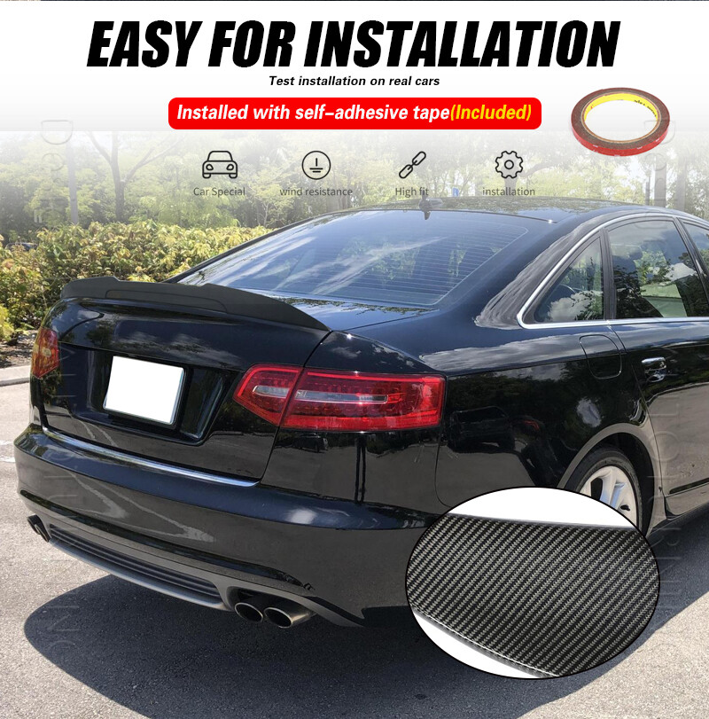 Fitment: Fits for Audi A6 C6 A6 Sline S6 Sedan 2008-2011 Specifications: Product Name: Rear Spoiler Material: Carbon Fiber Package Size: 121*25*11cm Package Weight: 1.7kg Features: Made of High Quality Lightweight Carbon Fiber. Latest Design GT Wing Spoiler Completed Kit, Improve Handling And Make Tail More Stable in High Speed. Water Transfer Carbon Fiber for Highest Durability and Appearances. Adjustable Angles for Customizable Usages and Efficiencies, Enhances Aerodynamic. Reduces Drag, Increases Fuel Efficiency, Reinforces Downforce, Traction and Stability. Double-sided adhesive paste, Easy to Install. Package included: 1 x Spoiler with self-adhesive glue tape Carbon Fiber Spoiler AUDI The Rear Trunk Spoiler is one of the simplest mods you can do to the exterior of your car that will give your car that completely different look. Not only are spoilers meant for great looks, they also help with the aero dynamics of the car by lowering drag, or helping to put more downforce on the car making sure that the wheels stay grounded for maximum traction. Fitment: Fits for Audi A6 C6 A6 Sline S6 Sedan 2008-2011 Specifications: Product Name: Rear Spoiler Material: Carbon Fiber Package Size: 121*25*11cm Package Weight: 1.7kg Features: Made of High Quality Lightweight Carbon Fiber. Latest Design GT Wing Spoiler Completed Kit, Improve Handling And Make Tail More Stable in High Speed. Water Transfer Carbon Fiber for Highest Durability and Appearances. Adjustable Angles for Customizable Usages and Efficiencies, Enhances Aerodynamic. Reduces Drag, Increases Fuel Efficiency, Reinforces Downforce, Traction and Stability. Double-sided adhesive paste, Easy to Install. Package included: 1 x Spoiler with self-adhesive glue tape Delivery details Payment and TAX Warranty Policy Return Policy Contact us Delivery details NOTE: The shipping fee is only for the mainland of each country, it does not include the overseas territories, such as Virgin Islands (U.S.) , Puerto Rico, Hawaii , French Reunion Island, etc. But on ebay, when buyers from Puerto Rico and overseas territories , the shipping fee is equal to United States, it is NOT correct,. please contact us for correct shipping fee, or we will cancel the order. Sorry for the inconvenience, and thanks for your cooperation. 1. If you want to upgrade the shipping, please contact us before making payment, we will revise the shipping fee. 2. We will ship according to your Ebay address. Please make sure it is correct and include phone number for delivery. If you want to know the exact shipping time , please contact us . Payment and TAX 1.We accept Multiple Payment Methods Available: Credit Card, Debit Card, Gift Card, Apple Pay, Goggle Pay, PayPal and PayPal Cred. 2.Please leave note for your special request (e.g. Colors or Size) in ebay note when you pay the order. 3.Your must complete the payment within 7 days or Ebay will automatically open unpaid item case For US Buyer:The invoice value of each item is less than 800USD ,so you no need to pay any tariff . NON-US Buyer Note: Most countries are tax free based on our invoices, if tax is required, which will be buyer's responsibility. Warranty Policy We Warranty Our Product Within the Limited Warranty Policy Specified on Ebay. Please Email us if ou have any question regarding the warranty policy on a specific item. Most of the items are Aftermarket Parts and they are intended for off-road usage only, therefore no installation instruction will be included, Professional installation are Highly Recommended. We are not responsible for any damages to the item or the vehicle that occur during the installation of the item.Also, Please Make Sure Proper Installation is Performed as we are not responsible for item being missing or flew off after the installation. if you don't think the item can stay on the car properly, please do not attempt to drive the car with it and please check with professional shops/mechanics or contact us for assistance. Return Policy We Accept Returns Within the Return Period On Ebay. Return Authorization/Return Approval is Required For Every Return. So If you Wish to Make a Return On Your Purchase. Please Contact us Before You Send The item back For any damages occured to the item upon arrival, Please notify us within 5 days of the delivery so we can take proper action to fix the issue. So Please Kindly inspect and check the item condition upon arrival.For Any other Return Inquries, You can contact us within the return period to obtain return authorization/return approval. In case of return, the merchandise needs to be returned in original condition with origi- nal packaging in order to be eligible for an exchange or a refund. Items must be not opened in their original package. Any mark of installation, mounting, cutting, scratch or using will not be allowed. Contact us 1.We are trying our best to explain all details of the products here! If you have any question, please feel free to contact us by Ebay message, and We will get back to you within 24-48 hours. 2.Customer satisfaction is our NO.1 priority. If you are not happy with the item that you purchase, please contact us first. We will try our best to solve the problem with you.Please leave us a positive feedback if you receive the item.Please do not leave negative or neutral feedback without any contact.If you haven't received item in 30 days, please contact us and we will arrange refund.We appreciate your business.Happy Bidding & Have a nice day! 3.Working hours: From 8 a.m. to 6 p.m. from Monday to Friday. From 8 a.m. to 12 a.m. on Saturday morning Holiday/Rest time: Saturday afternoon and Sunday