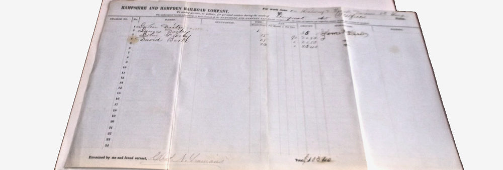 Hampshire & Hampden Railroad voucher dated August 1860. Very good condition.
