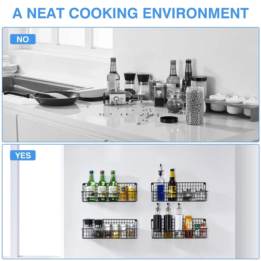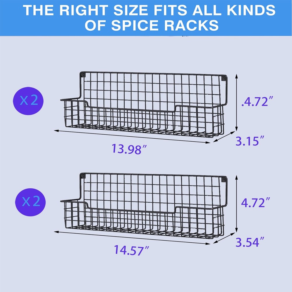 AURIKAR Spice Rack Wall Mount, Spice Organizer for Cabinet & Pantry Door, Set of 4 Hanging Spice Rack Saving Space for Kitchen, Black Spice racks with square mesh structure is solid and stable, quality metal material make spice rack has a longer life time and no longer slipping in the process of using. Larger capacity wall spice rack have 4 tiers, each tier can hold 8 6oz or 6 8oz spice jars, as like give you an extra cupboard for your kitchen, demand much needed cabinet space. Used on multiple occasions: hanging spice rack keep your kitchen organizer, also can be used in pantry, bathroom and RV flexibly according to your needs, saving space for you as much as possible. Easy to hang spice rack on the wall, you can finish the installation work within 15 minutes, all accessories come with the product include (screws/wall anchors). Simple and applicable design style can perfectly match any scene, an elegant black wall spice rack will make you never tire of seeing it, bringing convenience and adding beauty to your home life. Are you looking for a spice rack to make your kitchen more organized? AURIKAR spice rack are definitely the right choice for you! Let you enjoy your cooking to the fullest. Choosing our spice rack will help you organize kitchen and more in a limited space and save more space in your kitchen or cabinets! Specifications Material : Alloy Steel, Metal color: Black Matte Black Package Dimensions: A: 14.57*3.54*4.72 inches, B: 13.98*3.15*4.72; 2.4 Pounds Plug Profile: Wall Mount Package Contents 4 x Spice Rack 4 x Mounting hardware (screws/wall anchors) Shipping We offer FREE shipping on all orders! We ship within Three business days of payment, usually sooner. We use a selection of shipping services such as UPS, FedEx, USPS etc. We only ship to the lower 48 states, no APO/FPO addresses or PO Boxes allowed. Local pickups and combined shipping options are not provided at this time. Return You can return a product for up to 30 days from the date you purchased it. Any product you return must be in the same condition you received it and in the original packaging. Please keep the receipt. Payment We accept payment by any of the following methods: PayPal Please pay as soon as possible after winning an auction, as that will allow us to post your item to you sooner! Feedback Customer satisfaction is very important to us. If you have any problem with your order, please contact us and we will do our best to make you satisfied. Contact Us If you have any queries, please contact us via ebay. We usually respond within 24 hours on weekdays. Please visit our eBay store to check out other items for sale! Thank you for shopping at our store.