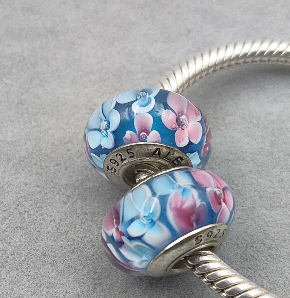 AUTHENTIC 2pcs 925 Sterling Silver Flower Murano Glass Bead European Charm Whether you're celebrating a special occasion or just adding a fresh pop to your collection, these colorful charm beads are the ideal way to bring warmth and personality to any bracelet. Whether you’re running errands or enjoying a sunny day outdoors, this unique shield gives you the perfect blend of protection and style. Quantity : 2 pc without snake chain 100% New and high quality Material: S925 Sterling silver FITS PANDORA, CHAMILIA, TROLLBEADS, AND EUROPEAN STYLE CHARM BRACELETS In-stock in the US~