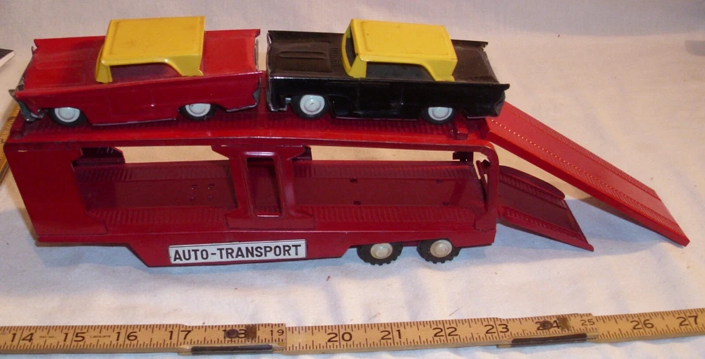 Nice example of this trailer only tin toy. In good original shape, just needs the front tractor. So take a good look at the photos. These will show you its overall good original shape. As shown and found. SELLING WITH NO RESERVE! Make sure you check out my other items. I have several really nice antiques and toys up right now. Shipping gladly combined on orders where it is possible! So buy more than one and save on shipping! Welcome to Classic Eddy's. Feel free to ask any questions we are happy to help. Shipping is extra and is paid by the buyer and non refundable. Don't worry we ship tons of items and do not overcharge on shipping. Payments must be received five days from the auction closing so we can ship your item fast. Feel free to use your credit cards they are welcome through Paypal. We love shipping International orders and ship all around the world. We prefer Paypal! Look over all our auctions we always carry great stuff! Thanks for taking a look and please feel free to place a bid!