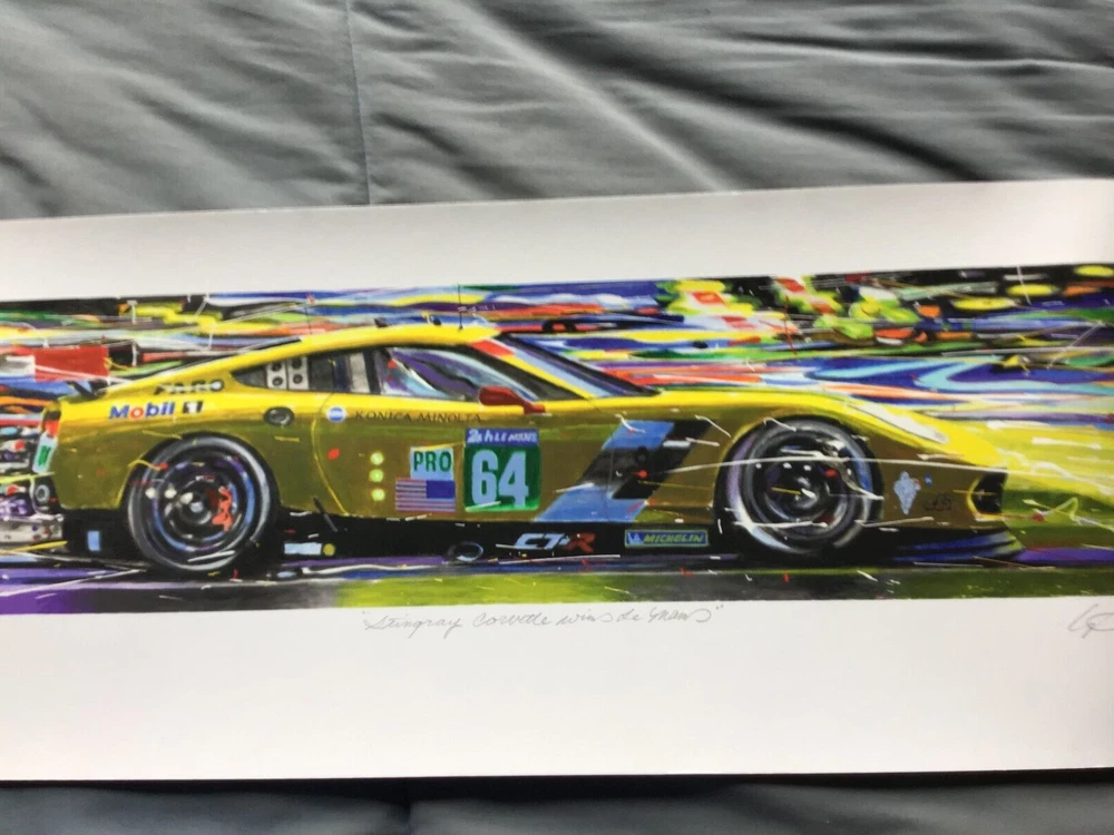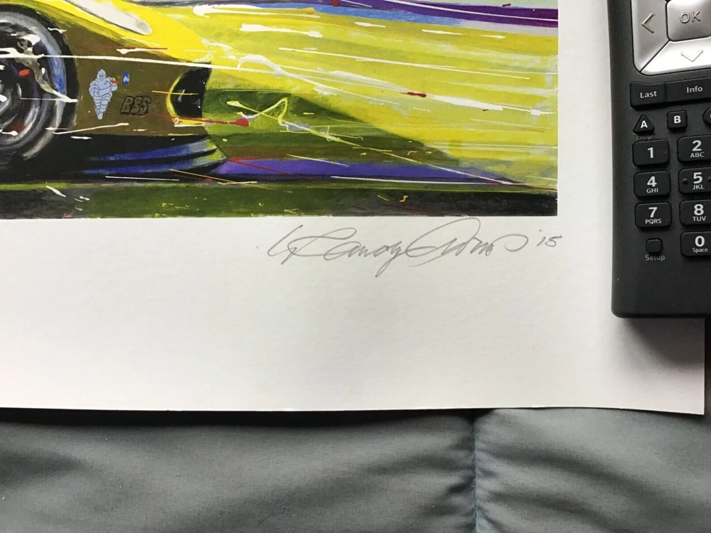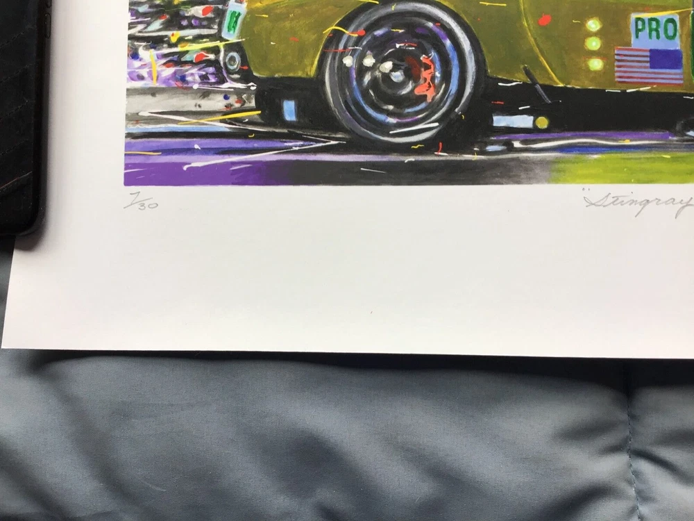 Stingray Corvette wins LeMans giclee by Randy Owens, signed by the artist, EXTREMEY LOW RUN limited edition no 7/30, 10 x 28 very good condition never framed buyer to pay $25 shipping and handling