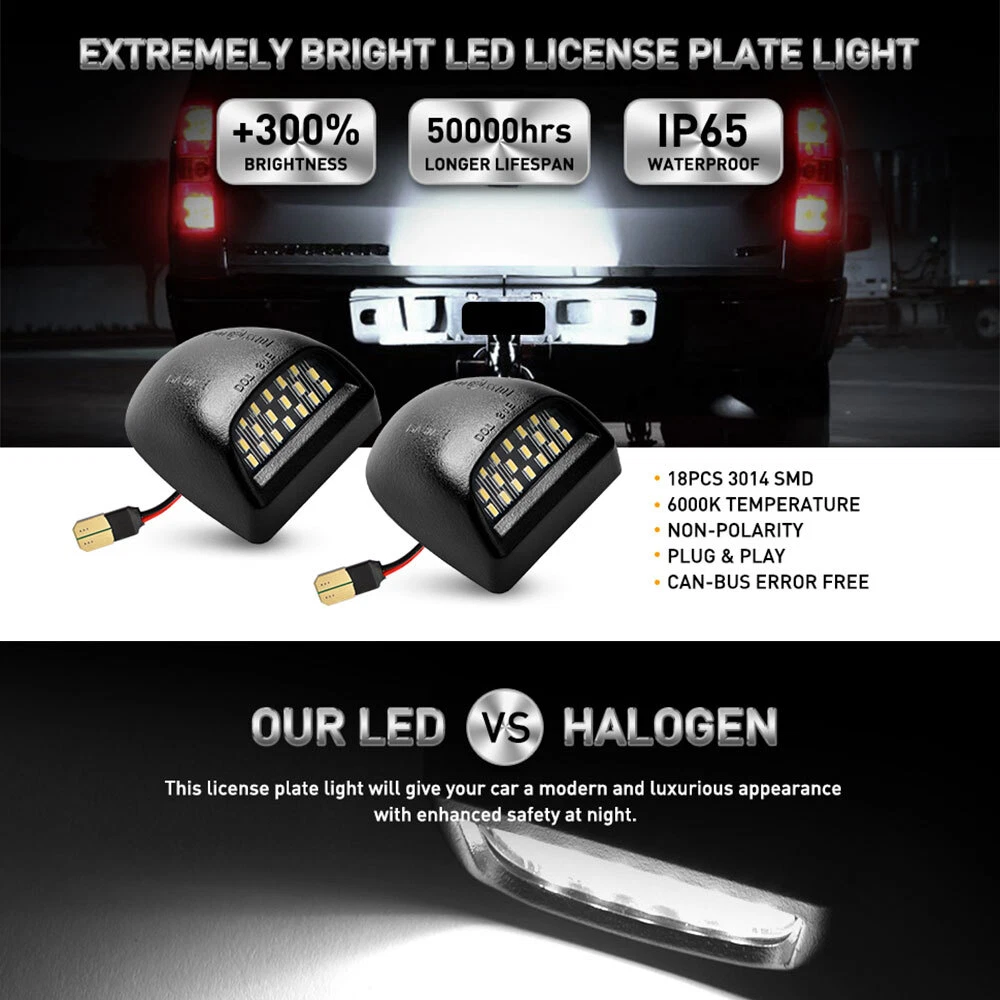 Package included: 2XLED License Plate Light Fitment: for 2002-2013 Chevy Avalanche for 1999-2013 Chevrolet Silverado 1500 for 1999-2013 Chevrolet Silverado 2500 for 1999-2013 Chevrolet Silverado 3500 for 2000-2006 Chevrolet Tahoe & Suburban 1500 2500 for 2009-2012 Chevrolet Traverse for 1999-2013 GMC Sierra 1500 2500 3500 for 2000-2006 GMC Yukon for 2000-2006 GMC Yukon XL 1500 for 2000-2006 GMC Yukon XL 2500 for 2002-2006 Cadillac Escalade (All Models) for 2007-2013 Cadillac Escalade EXT Description : AUXITO 2x Plate License LED Light For Chevy 2000-2006 Tahoe Suburban GMC Yukon Package included: 2XLED License Plate Light Fitment: for 2002-2013 Chevy Avalanche for 1999-2013 Chevrolet Silverado 1500 for 1999-2013 Chevrolet Silverado 2500 for 1999-2013 Chevrolet Silverado 3500 for 2000-2006 Chevrolet Tahoe & Suburban 1500 2500 for 2009-2012 Chevrolet Traverse for 1999-2013 GMC Sierra 1500 2500 3500 for 2000-2006 GMC Yukon for 2000-2006 GMC Yukon XL 1500 for 2000-2006 GMC Yukon XL 2500 for 2002-2006 Cadillac Escalade (All Models) for 2007-2013 Cadillac Escalade EXT Description : 1.Type:Full LED License Plate Light 2. Voltage: 12V 3. Size: 1.77*1.23*1.98in 4. Light Temperature: 6500K 5. Light Source: LED 6. Body Color: Black 7. LED Type: Built-in 18 SMD LED Light 8. Light Color: White 9. Material: ABS and Clear PC Lens Feature: 1. One pair full LED assemblies, powered by 18 pieces super bright xenon white LED diodes. 2. Directly replace and upgrade the factory original license plate lamp housing/lens and the 168 194 or 6418 C5W light bulb inside. 3. These all new super bright 3-watt high power LED license plate light assy are at least 3 times brighter than the factory ones, will give your car a modern and luxurious appearance with enhanced safety at night. 4. For a super bright spotlight on your rear license tag, try out our pair of LED license plate lights! How to install: Use a screwdriver to pry out the original license plate light. Unplug the plug behind the original license plate light directly. Plug the original car's line plug directly into the LED license plate light. Simply press the LED license plate light, simple and non-destructive modification. Note: 1. Please kindly confirm the fitment before ordering to make sure this item is perfectly fit. Please make confrim whether it can fit your car. 2. It is easy to install, but professional installation is always recommended. 3. Please allow 0.5-1 inch difference due to manual measurement.(1inch=2.54cm) 4. Due to the different display and different light, the picture may not reflect the actual color of the item. Item Specifics Features CANbus Compatible Bulb Fitment Code W5W (168) Manufacturer Warranty 2 year Fot for Cadillac, Chevrolet, GMC OE/OEM Part Number AUXITOLED Voltage 12V Fitment Type Direct Replacement Lighting Technology LED Suitable For License Plate Light Color Temperature 6000k white Light Color Cold White Number of Bulbs 2 Placement on Vehicle Rear, Left, Right Manufacturer Part Number Does Not Apply Brand AUXITO Type LED license plate light FAQ ♥ If you have a decoding problem or any other problems, please contact us first, we will help you with it. We will reply you within 24 hours in working days. I'm a new seller, thanks a lot for your trust and convince! I will serve you with all my heart. ♥ Q1: Will this bulb fit my vehicle? A: We can match almost any vehicle to one of our bulb sizes. eBay only lets us include some vehicle fitments per listing, but if your vehicle does not show up on the compatibility table at the top of our listings, welcome you to contact us for free consulation before purchasing a product. Q2: My item has not arrived, what's taking so long? A: Sometimes items take longer than expected, especially if it’s going far or to rural area. Check with your post office to see if your item has been held up. Sometimes Royal Mail will not update a tracking number until it has arrived at its destination. If your item still don't arrive after a few days, let us know so we can double check for you and help solve it asap. Q3: My bulbs won't fit, help! A: Special bulb holder may be required. See if you can take the holder from the stock bulb. If not, let us know. The bulb size may be wrong, double check the item you received with the item you ordered. Do you have an aftermarket lighting housing? These may not be perfectly fitted for aftermarket bulbs and will require some manual modifications. Q4: Neither side lighting up? Both sides flicker, hyper flash, or work inconsistantly. A:Check the light fuses, and then check the ballast plugs to insure correct installation. If this doesn't work, there may be a voltage problem with the vehicle. You probably just need a relay or capacitor. Even though some bulbs are builtin resistors, they may still need a decoder. Pay & Ship (1). We gladly accepts payment via PayPal, We will ship your item(s) within 24 hours. (2). Before payment, please keep the consistency of Paypal address and ebay address. (3). Quantity orders are welcome! Returns (1). We offer 60 days free return policy. Please contact us within 60 days from the date you receive your order if you have any issues with the product or want return. Refund will be send after we got your resend package. (2). All returned items should be in the original packaging , return tracking information should be provided . Contact Us (1).Negative feedback will not help resolve any problems you have, please contact us via eBay messages before leaving negative feedback , our customer service will make best effort to help you with the issues. (2).We maintain high standards of excellenceand strive for 100% customer satisfaction! Feedback is very important to us. We request that you contact us immediately before you give us neutral or negative feedback, so that we can satisfactorily address your concerns. About us We're professional in car and motorcycle accessories, especially in LED bulbs. We have our own factory and R&D team. Our
