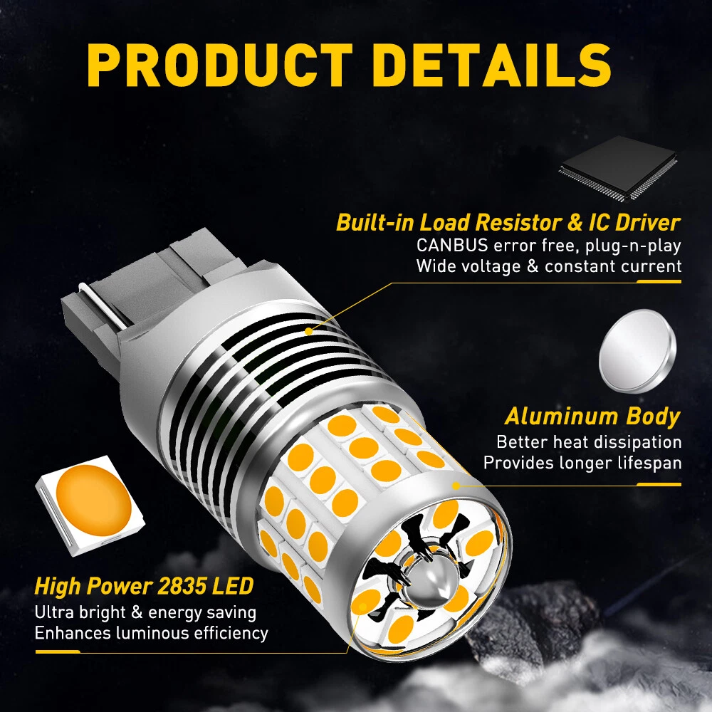 Specification: Brand: AUXITO Bulb Size: 7440 7441 7443 7444 992 992A W21W 7440A LED Type: 42pcs 2835SMD Light Color: Amber Working Voltage: 12-24V DC Current: 2A Wattage: 24W/bulb, 48W/pair Beam Angle: 360 Degree Working Temperature: -40???80???/span> External Testing Certification: CE / Rohs / IP67 Lifespan: more than 50,000 hours Application: Side Marker Light, Turn Signal Light Feature: *Safety Protection The 6063 aluminum construction in the 7440 led turn signal bulb will protect bulbs against excessive current and overheating and ensure a longer lifespan with low energy consumption. AUXITO 7440 LED Turn Signal Side Marker Light Amber Anti Hyper Flash 48W Specification: Brand: AUXITO Bulb Size: 7440 7441 7443 7444 992 992A W21W 7440A LED Type: 42pcs 2835SMD Light Color: Amber Working Voltage: 12-24V DC Current: 2A Wattage: 24W/bulb, 48W/pair Beam Angle: 360 Degree Working Temperature: -40???80 ???/span> External Testing Certification: CE / Rohs / IP67 Lifespan: more than 50,000 hours Application: Side Marker Light, Turn Signal Light Feature: *Safety Protection The 6063 aluminum construction in the 7440 led turn signal bulb will protect bulbs against excessive current and overheating and ensure a longer lifespan with low energy consumption. *High Brightness Each 7440 bulb has 42pcs high-quality LED chips to make your turn signal light noticed immediately. The 2835SMD light source is close to the halogen lamp of the original one. *Simple installation Perfect replacement of the original LED bulbs. *Double Heat Dissipation Aircraft-grade aluminum body built and fan design increases the heat dissipation area. *High decoding rate The decoding rate is higher and can solve most decoding problems compared with the old one. *Important Note: These 7440 LED bulbs are used as turn signal lights ONLY. (They are single function, and could not be used as day running light or parking light function) Please Note: For most vehicles, just directly plug and play. Yet for some vehicles with CAN-BUS system, you might need to add 50W 6-Ohm load resistors to prevent the LED bulbs from hyper flashing, malfunction or trigger warning message on dashboard. Package: 2 x AUXITO 7440 Amber LED Bulbs Item Specifics Light Color Amber Waterproof IP67 Bulb Fitment Code 7440 7441 7443 7444 992 992A W21W 7440A Fitment Type Direct Replacement Manufacturer Part Number AUXITO2G427440 Wattage 24W/per bulb, 48W/per Set UPC 782890731393 Number of Bulbs 2 Light Source 42pcs 2835SMD Suitable For Side Marker Light, Turn Signal Light Placement on Vehicle Front, Rear, Left, Right Brand AUXITO Type LED Light Bulb Lumens 8000 lm Manufacturer Warranty 2 Years Payment We can accept payment by credit, debit, and gift cards; Apple Pay, Google Pay, PayPal, and PayPal Credit. Shipping 1. All items will be shipped in 24 hours after receiving your payment . 2. We ship this item to US only via USPS first class mail. It usually takes 3-5 working days to deliver. Returns 1. We offer 60 days return policy. 2. Please contact us within 60 days from the date you receive your package if you have any questions with the products . 3. Refund will be sent after we got your returned package. 4. All returned items should be in the original packaging with tracking number. Contact Us We work from Monday - Saturday 9:00AM - 6:00PM PST, but we will reply you once we get your message .There will be some delay on response if you send message or E-Mail on Sunday. DESCRIPTION PAYMENT SHIPPING RETURN POLICY CONTACT US Hot item AUXITO 3157 3156 LED Flashing Brake Stop Stobe Tail Light Bulb Blinker Bulb 2F23 USD 13.59 AUXITO 3157 4157 Amber LED Turn Signal Side Marker Indicator Corner Light 2F23 USD 13.59 Help & Info Payment Policy Shipping Policy Return Policy FAQ About Us AUXITO 7440 LED Turn Signal Side Marker Light Amber Anti Hyper Flash 48W Specification: Brand: AUXITO Bulb Size: 7440 7441 7443 7444 992 992A W21W 7440A LED Type: 42pcs 2835SMD Light Color: Amber Working Voltage: 12-24V DC Current: 2A Wattage: 24W/bulb, 48W/pair Beam Angle: 360 Degree Working Temperature: -40???80 ???/span> External Testing Certification: CE / Rohs / IP67 Lifespan: more than 50,000 hours Application: Side Marker Light, Turn Signal Light Feature: *Safety Protection The 6063 aluminum construction in the 7440 led turn signal bulb will protect bulbs against excessive current and overheating and ensure a longer lifespan with low energy consumption. *High Brightness Each 7440 bulb has 42pcs high-quality LED chips to make your turn signal light noticed immediately. The 2835SMD light source is close to the halogen lamp of the original one. *Simple installation Perfect replacement of the original LED bulbs. *Double Heat Dissipation Aircraft-grade aluminum body built and fan design increases the heat dissipation area. *High decoding rate The decoding rate is higher and can solve most decoding problems compared with the old one. *Important Note: These 7440 LED bulbs are used as turn signal lights ONLY. (They are single function, and could not be used as day running light or parking light function) Please Note: For most vehicles, just directly plug and play. Yet for some vehicles with CAN-BUS system, you might need to add 50W 6-Ohm load resistors to prevent the LED bulbs from hyper flashing, malfunction or trigger warning message on dashboard. Package: 2 x AUXITO 7440 Amber LED Bulbs Payment Shipping Returns Contact Us We can accept payment by credit, debit, and gift cards; Apple Pay, Google Pay, PayPal, and PayPal Credit. 1. All items will be shipped in 24 hours after receiving your payment . 2. We ship this item to US only via USPS first class mail. It usually takes 3-5 working days to deliver. 1. We offer 60 days return policy. 2. Please contact us within 60 days from the date you receive your package if you have any questions with the products . 3. Refund will be sent after we got your returned package. 4. All returned items should be in the original packaging with tracking number. We wo