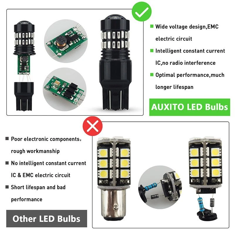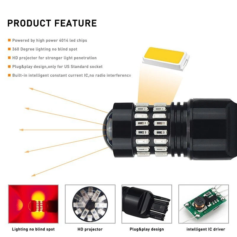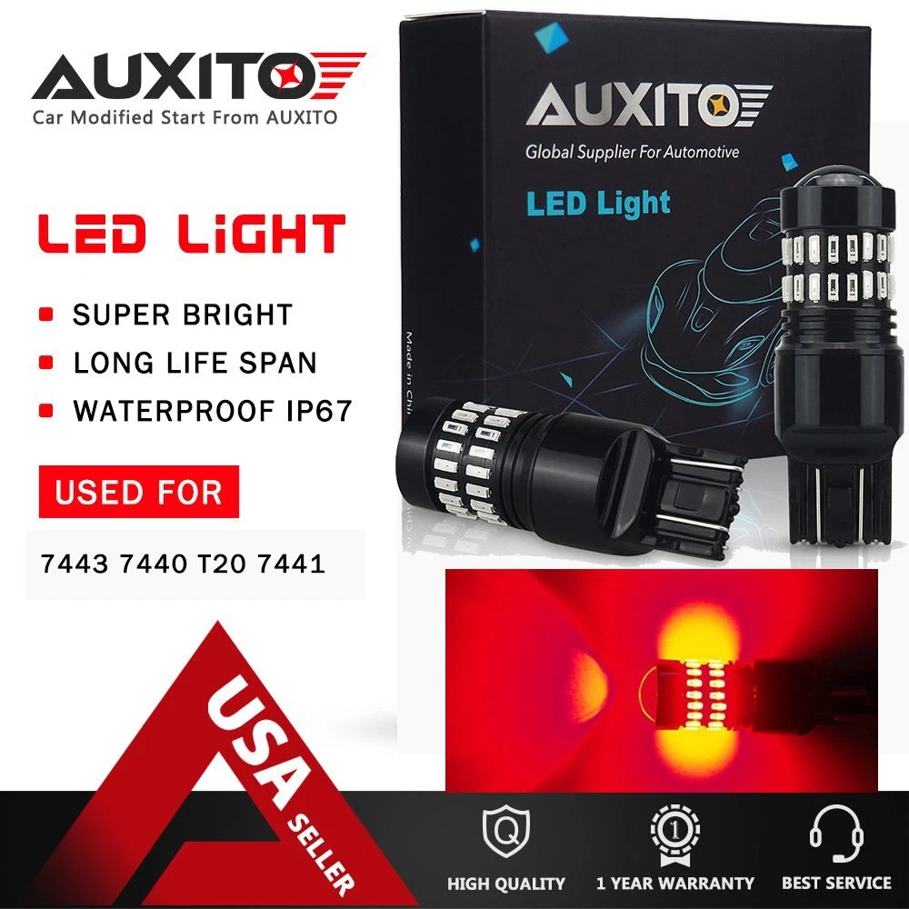 About the item: This listing features one pair ( 2 pieces) extremely super bright 7443/7440 pure Red FLASHING high power 4014 48PCS-SMD led bulbs, especially designed for replacing the cars rear turn signal light or brake lights.. Big difference between high and low intensity light output( dual filament bulbs), easily noticed while braking or blinking, much safer driving and much more luxury good looking. This bulb is equipped with high quality 48 pieces 4014 SMD and luxury design that will make your cars looks much brighter than halogen or stock lamp,highly recommended. Specification: Package: including 2 pieces 7443/7440 LED super bright pure red led bulbs. AUXITO 7444 7440 LED Red Strobe Flash Brake Stop Tail Parking Light Bulbs CANBUS About the item: This listing features one pair ( 2 pieces) extremely super bright 7443/7440 pure Red FLASHING high power 4014 48PCS-SMD led bulbs, especially designed for replacing the cars rear turn signal light or brake lights.. Big difference between high and low intensity light output( dual filament bulbs), easily noticed while braking or blinking, much safer driving and much more luxury good looking. This bulb is equipped with high quality 48 pieces 4014 SMD and luxury design that will make your cars looks much brighter than halogen or stock lamp,highly recommended. Specification: Package: including 2 pieces 7443/7440 LED super bright pure red led bulbs. LED Chips: 48 pieces high power 4014 chips per bulb. Warranty: Full ONE Year guaranteed for manufacturer quality. Color: Brilliant pure red. Flashing details: Flash 11 times in 2 seconds for brake light mode, then keep steady lighting on. CANBUS ERROR FREE: No. For some vehicles, it may require install decoder or load resistor to avoid turn signal hyper flash or fast blinking. Cross Reference: 7440, 7441, 7443, 7444NA, 7440LL, 7443LL, 7443-SCK, T20, 7440NA, 7440A, 7440ANK, 7440K, 7444NAPLL,etc. Application: turn signal light, brake tail light, etc. Voltage: 12V~24V, bulit in IC driver,much stable current than normal led bulbs in the marker, longer life span. Length: as photo mentioned. Please Note: Please check your car manual or original bulb to confirm the bulb size, length is correct or not before purchasing to save your time Most important Note: This bulbs is NOT compatible with CK/SRCK ,it's only fit standard socket type, check it to avoid burn out the fuse. Package Included: 2* 7443/7440 LED Bulbs Item Specifics Brand AUXITO Number of Bulbs 2 Light Color Red Type Light Bulb Lighting Technology LED Suitable For Brake Light OE/OEM Part Number 7440NAK, 7444NA,7444NAK, 7443LL etc Lumens 2400 lm Manufacturer Warranty 2 Year Bulb Life Hours Up to 50,000 Hours UPC 782890731225 Manufacturer Part Number AUXITO48H7443 Mode Flash 11 times in 2 seconds then stay steady with light on Features Plug and Play, Super Bright, 360 degrees Full Emitting LED Chip 48PCS 4014-SMD Fit For Tail Light, Brake Light Waterproof Rate IP67 Universal Fitment Yes FAQ ♥ If you have a decoding problem or any other problems, please contact us first, we will help you with it. We will reply you within 24 hours in working days. I'm a new seller, thanks a lot for your trust and convince! I will serve you with all my heart. ♥ Q1: Will this bulb fit my vehicle? A: We can match almost any vehicle to one of our bulb sizes. eBay only lets us include some vehicle fitments per listing, but if your vehicle does not show up on the compatibility table at the top of our listings, welcome you to contact us for free consulation before purchasing a product. Q2: My item has not arrived, what's taking so long? A: Sometimes items take longer than expected, especially if it’s going far or to rural area. Check with your post office to see if your item has been held up. Sometimes Royal Mail will not update a tracking number until it has arrived at its destination. If your item still don't arrive after a few days, let us know so we can double check for you and help solve it asap. Q3: My bulbs won't fit, help! A: Special bulb holder may be required. See if you can take the holder from the stock bulb. If not, let us know. The bulb size may be wrong, double check the item you received with the item you ordered. Do you have an aftermarket lighting housing? These may not be perfectly fitted for aftermarket bulbs and will require some manual modifications. Q4: Neither side lighting up? Both sides flicker, hyper flash, or work inconsistantly. A:Check the light fuses, and then check the ballast plugs to insure correct installation. If this doesn't work, there may be a voltage problem with the vehicle. You probably just need a relay or capacitor. Even though some bulbs are builtin resistors, they may still need a decoder. Payment (1). We gladly accepts payment via PayPal, We will ship your item(s) within 24 hours. (2). Before payment, please keep the consistency of Paypal address and ebay address. (3). Quantity orders are welcome! Returns (1). We offer 60 days free return policy. Please contact us within 60 days from the date you receive your order if you have any issues with the product or want return. Refund will be send after we got your resend package. (2). All returned items should be in the original packaging , return tracking information should be provided . Contact us (1).Negative feedback will not help resolve any problems you have, please contact us via eBay messages before leaving negative feedback , our customer service will make best effort to help you with the issues. (2).We maintain high standards of excellenceand strive for 100% customer satisfaction! Feedback is very important to us. We request that you contact us immediately before you give us neutral or negative feedback, so that we can satisfactorily address your concerns. About us We're professional in car and motorcycle accessories, especially in LED bulbs. We have our own factory and R&D team. Our belief is to sell top quality items that fit your car and serve you with our heart. An