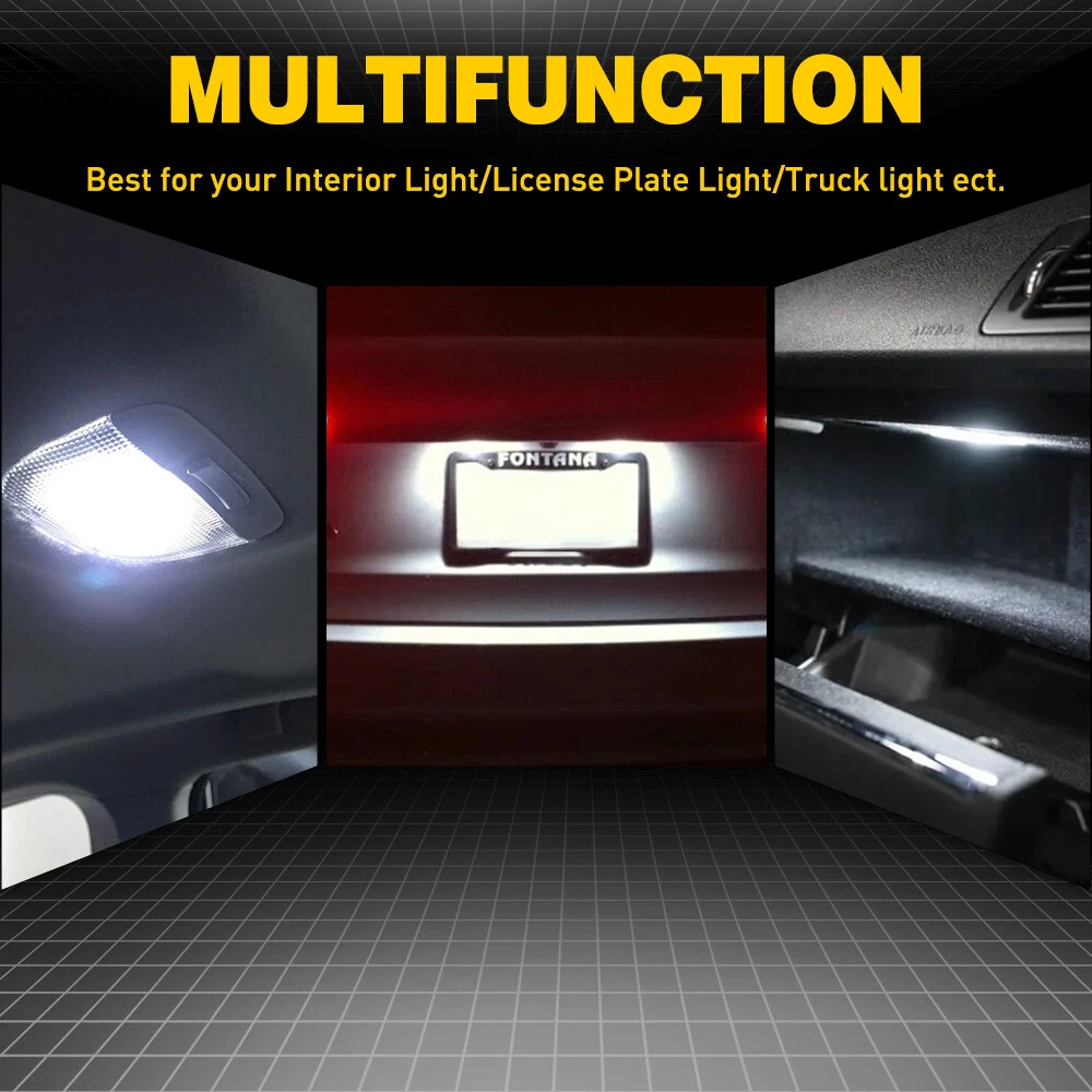 ABOUT THIS ITEM: The 4014 series is an extremely efficient SMD LED provides a very good color, the brightest LED chip on the market. Long-lasting, low energy doesn't zap you power supply, faster on/off response time, unique, vivid color, simple to fit. AUXITO 921 912 LED Reverse Backup Light Bulb 190LM 6500K Super Bright T10 2Pc S ABOUT THIS ITEM: The 4014 series is an extremely efficient SMD LED provides a very good color, the brightest LED chip on the market. Long-lasting, low energy doesn't zap you power supply, faster on/off response time, unique, vivid color, simple to fit. FEATURES: Brand New Package Content: 2x LED Light Bulbs(CANBUS) Bulb Size: T10 LED Type: 18led 4014SMD Beam Type: 360°Beam Angle Working Voltage: DC 9-14V Color Temperature: 6500K Output: 190 lumens each bulb Lifespan: 50000 working hours ,Adopt imported chips, stable quality, long service life Color: White Compatible with: W5W 2825 194 147 152 158 159 161 168 175 184 192 193 259 280 285 447 464 555 558 585 655 656 657 1250 1251 1252 2450 2652 2921 2825 906 579 Application:Interior Door Light Bulb / side Marker Light Bulb rear / front Tail Light Bulb Inner / License Light Bulb / Glove Box Light Bulb Stepwell light bulb / Trunk or Cargo Area Light Bulb/ Dome Light Bulb Check Engine Light Bulb / Courtesy Light Bulb / Parking Light Bulb Center High Mount Stop Light /Dome Light Bulb / Map Light Bulb Door Mirror illumnination light bulb Advantage: Energy saving, environmental protection, Stable performance, through strict test, Use safer driving in the car For most cars, just Plug-n-Play,no ballast required. Yet for some European vehicles or new vehicles, load resistors maybe required to avoid the error code or blinking. When installing this bulb, please make sure to turn the car off, and key out. LED bulbs are very easy to install. You just have to plug it in the socket. (LED bulb has + AND -terminal. If it doesn't light up after inserting into the socket, all you need to do is insert it oppositely.) Note: Please double check owners manual or your original halogen bulbs to confirm the size before placing an order. Item Specifics Features CANbus Compatible Bulb Fitment Code T10 2825 194 158 168 192 198 164 W5W Manufacturer Warranty 2 Year Light Colour Cold White Colour Temperature 6500K OE/OEM Part Number AUXITOT10LED Voltage DC 12V 24V Fitment Type Direct Replacement Performance Part Yes Lighting Technology LED Reference OE/OEM Number AUXITO LED Suitable For Dome Light Headlight Parking Light Lumens 190 lm To Fit License Plate Light Bulb, Side Marker Light Bulb,Backup Light Universal Fitment Yes UPC 782890730174 Model AUXITO LED Color Temperature 6500K Light Color White,Clear Number of Bulbs 2 Placement on Vehicle Interior, Front, Rear, Left, Right Wattage 2.4 W Classic Car Part Yes Manufacturer Part Number AUXITO18HT10 Brand AUXITO Technology Canbus Light Bulb Life Hours Up to 50,000 Hours Type Map Light,Interior Light,Door Trunk or Cargo Area Light Type Map Light,Interior Light,Door Trunk or Cargo Area Light FAQ ♥ If you have a decoding problem or any other problems, please contact us first, we will help you with it. We will reply you within 24 hours in working days. I'm a new seller, thanks a lot for your trust and convince! I will serve you with all my heart. ♥ Q1: Will this bulb fit my vehicle? A: We can match almost any vehicle to one of our bulb sizes. eBay only lets us include some vehicle fitments per listing, but if your vehicle does not show up on the compatibility table at the top of our listings, welcome you to contact us for free consulation before purchasing a product. Q2: My item has not arrived, what's taking so long? A: Sometimes items take longer than expected, especially if it’s going far or to rural area. Check with your post office to see if your item has been held up. Sometimes Royal Mail will not update a tracking number until it has arrived at its destination. If your item still don't arrive after a few days, let us know so we can double check for you and help solve it asap. Q3: My bulbs won't fit, help! A: Special bulb holder may be required. See if you can take the holder from the stock bulb. If not, let us know. The bulb size may be wrong, double check the item you received with the item you ordered. Do you have an aftermarket lighting housing? These may not be perfectly fitted for aftermarket bulbs and will require some manual modifications. Q4: Neither side lighting up? Both sides flicker, hyper flash, or work inconsistantly. A:Check the light fuses, and then check the ballast plugs to insure correct installation. If this doesn't work, there may be a voltage problem with the vehicle. You probably just need a relay or capacitor. Even though some bulbs are builtin resistors, they may still need a decoder. Payment (1). We gladly accepts payment via PayPal, We will ship your item(s) within 24 hours. (2). Before payment, please keep the consistency of Paypal address and ebay address. (3). Quantity orders are welcome! Returns (1). We offer 60 days free return policy. Please contact us within 60 days from the date you receive your order if you have any issues with the product or want return. Refund will be send after we got your resend package. (2). All returned items should be in the original packaging , return tracking information should be provided . Contact us (1).Negative feedback will not help resolve any problems you have, please contact us via eBay messages before leaving negative feedback , our customer service will make best effort to help you with the issues. (2).We maintain high standards of excellenceand strive for 100% customer satisfaction! Feedback is very important to us. We request that you contact us immediately before you give us neutral or negative feedback, so that we can satisfactorily address your concerns. About us We're professional in car and motorcycle accessories, especially in LED bulbs. We have our own factory and R&D team. Our belief is to sell top quality