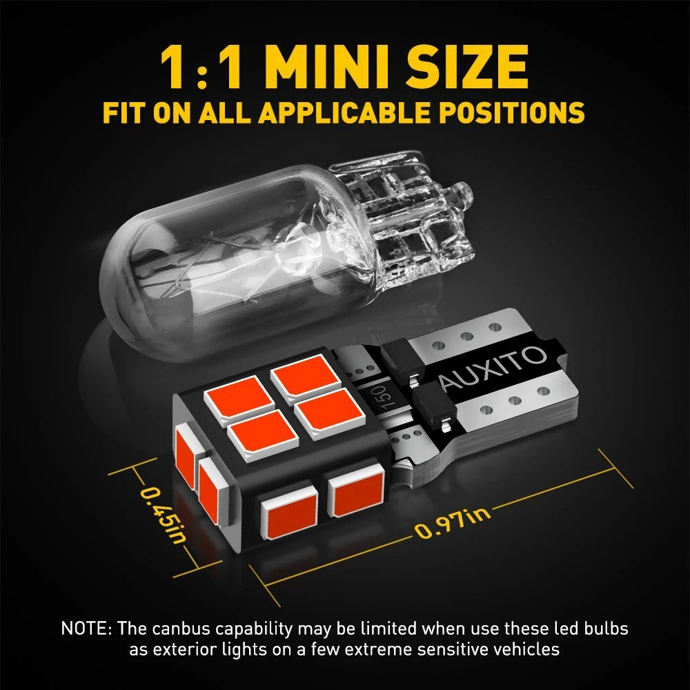 Description This item is 10pcs T10 wedge 14-SMD REDLED bulbs especially designed for car interior map or dome light,car license plate light,side courtesy light,etc. NON-POLAR Designed, Just plug Play. Specification Package: T10 wedge 2835 SMD led bulbs. LED Type: 14-pieces 2835SMD LEDs per T10 wedge led bulb Color:RED AS PICS. Dimension: as photo show. Cross Reference: 147, 152, 158, 159, 161, 168, 184, 192, 193, 194 2825 W5W.Easy installation, plug and play Application: Car License Plate Lights ,side door courtesy lights,Interior Map Lights or Dome Lights AUXITO T10 194 168 Interior License Plate LED Light Bulbs Super Bright RED 10PCS Description This item is 10pcs T10 wedge 14-SMD REDLED bulbs especially designed for car interior map or dome light,car license plate light,side courtesy light,etc. NON-POLAR Designed, Just plug Play. Specification Package: T10 wedge 2835 SMD led bulbs. LED Type: 14-pieces 2835SMD LEDs per T10 wedge led bulb Color:RED AS PICS. Dimension: as photo show. Cross Reference: 147, 152, 158, 159, 161, 168, 184, 192, 193, 194 2825 W5W.Easy installation, plug and play Application: Car License Plate Lights ,side door courtesy lights,Interior Map Lights or Dome Lights Item Specifics Manufacturer Part Number 14SMD-RED-2835SMD-WJ-T10 Interchange Part Number 193, 658, 2827, 194NA, 161, 558 T10, W5W, 147, 152, 158, 159, 161, 168, 184, 192, 193, 259, 1250, 1251, 1252, 2450, 2652, 2921 2825, 921, 906, 579, 280, 285, 447 464, 555, 558, 585, 655, 656, 657 Other Part Number 168NA, 2825, 194G, 160, 168A, 192 Manufacturer Warranty 1 Year Brand AUXITO Part Brand Interior/sidemarker/Map/Dome-Bulbs part number 04 2827LL, 158LL, 194LL part number 03 2825L, 2821LL, 168LL, 194ST, 161LL, 194NALL part number 02 2825ST, 168ST, 3652LL, 579LL, 2825LL, 168NALL part number 01 2821, 194B, 158, W5WB, 579, 168, Number of Bulbs 10 To Fit Parking Marker Interior Dome Map Light Bulb Fitment Code 168 194 2825 T10 Light Color RED Type Globe Bulb Fitment Type Direct Replacement Placement on Vehicle Front REAR Placement on Vehicle Front REAR Payment We only accept PayPal payment, should be received within 3 days from the date of purchase. Please keep the consistency of Paypal address and ebay address. Payment should be made within 4 days once you won a item ,or ebay will launch Unpaid Reminder agaist you and there will be bad record on your ebay account . Buyers are responsible for import duties, custom fees and taxes.Please check with your country's custom office to determine the additional costs before you finally make the purchase Shipping All items will be shipped in 48 hours after receiving your payment . We ship this item to US only via USPS first class mail. It usually takes 3-6 working days to deliver. Returns We offer 30 days return policy. Please contact us within 30 days t from the date you receive your order if you have any issues with the product or want return .Refund will be send after we got your resend package. All returned items should be in the original packaging , return tracking information should be provided .. Buyer is responsible for return shipping cost due to the problem not caused by item quality itself . Contact Us Our office hours are MONDAY - FRIDAY 9:00PM - 6:00PM PST, but we will response you once we get your message .There will be some delay on response if you send message or E-Mail on weekend. FAQ Q1: Will this bulb fit my vehicle? A: We can match almost any vehicle to one of our bulb sizes. eBay only lets us include partial vehicle fitments per listing, but if your vehicle does not show up on the compatibility table at the top of our listings, welcome you to contact us for free consulation before purchasing a product. Q2: My item has not arrived, what's taking so long? A: Sometimes items take longer than expected, especially if it’s going far or to rural area. Check with your post office to see if your item has been held up. Sometimes USPS will not update a tracking number until it has arrived at its destination. If your item still has not arrived after a few days, let us know so we can double check for you and help solve it asap. Q3: Do I need to mention the Year, Make and Model in the notes when place order? A: YES. Please include the Year, Make, and Model in the notes section during checkout to ensure you receive everything needed for your kit! Q4: My bulbs won't fit, help! A: Special bulb holder may be required. See if you can take the holder from the stock bulb. If not, let us know. The bulb size may be wrong, double check the item you received with the item you ordered. Do you have an aftermarket lighting housing? These may not be perfectly fitted for aftermarket bulbs and will require some manual modifications. Q5: Neither side lighting up? Both sides flicker, flash, or work inconsistantly. A:Check the headlight fuses, and then check the ballast plugs to insure correct installation. If this doesn't work, there may be a voltage problem with the vehicle. You probably just need a relay or capacitor. Q6: WARNING ABOUT POLARITY Unlike halogen bulbs, LED are polarity sensitive. BEFORE you start your LED kit installation, verify the polarity on your vehicle by simply plugging the LED bulb into your vehicle socket. - if your light turns on, please proceed to install both bulbs onto your vehicle. - if your light DOES NOT turn on, disconnect the bulb and flip the socket in order to reverse the polarity (this will not damage your vehicle electrical system in any way). Once you made sure the LED bulb turns on, please proceed to install both bulbs onto your vehicle. Note: There is no convention when it comes to polarity. Different car manufactures have different polarity setup, even within the car model the polarity setup on your low beams and high beams might be different. DESCRIPTION PAYMENT SHIPPING RETURN POLICY CONTACT US Shop Category Store Home B3 FANLESS SERIE LED HEADLIGHT Other Y13 CANBUS SERIE LED HEADLIGHT Z1 SERIE CSP LED HEADLIGHT Hot Item AUXITO LED Headli