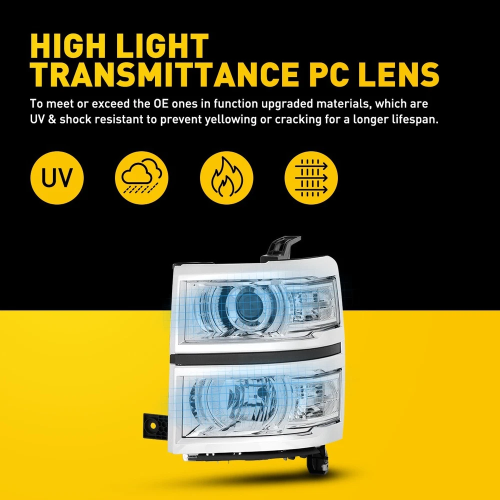 Fit for: 2014-2015 Chevy Silverado 1500 models only (Fit 2014 New Body style models only; Does NOT fit HD models) Specifications: OE number: 20933724, 20933725, 20933722, 20933723, 23172782, 23172783 GM2502389, GM2503389, GM2502395, GM2503395, GM2502410 Material: ABS+PC (ABS Plastic Housing/Polycarbonate lens) Appearance color: 1.Housing Color: Chrome 2.Lens Color: Clear 3.Reflector Color: White Note: Projector √ (include) DRL × (Not include) Bulb × (Not include) Features: *Easy to install: AUXITO for 14-15 Chevy Silverado 1500 Chrome LH+RH headlights White Projector Fit for: 2014-2015 Chevy Silverado 1500 models only (Fit 2014 New Body style models only; Does NOT fit HD models) Specifications: OE number: 20933724, 20933725, 20933722, 20933723, 23172782, 23172783 GM2502389, GM2503389, GM2502395, GM2503395, GM2502410 Material: ABS+PC (ABS Plastic Housing/Polycarbonate lens) Appearance color: 1.Housing Color: Chrome 2.Lens Color: Clear 3.Reflector Color: White Note: Projector √ (include) DRL × (Not include) Bulb × (Not include) Features: *Easy to install: Direct replacement, drilling and cutting are not required. *Superior quality: Made of ABS and PC materials with toughness and heat resistance functions to ensure its long service life and durability. *Angle adjustment: Equipped with a headlamp Angle adjustment knob, you can adjust the best Angle of view through the knob. *Suggestion: 1.Please confirm the OE number before purchasing!!! 2.Professional installation is required!!! Package Included: Headlights *2 (Left+Right) Item Specifics Brand AUXITO Type Headlight Assembly Placement on Vehicle Front,Left,Right OE/OEM Part Number 20933724, 20933725, 20933722, 20933723, 23172782, 23172783 Fitment for 2014-2015 Chevy Silverado 1500 models only Specifics Fit 2014 New Body style models only; Does NOT fit HD models Manufacturer Warranty 1 Year Universal Fitment No Interchange Part Number GM2502389, GM2503389, GM2502395, GM2503395, GM2502410 Fitment Type Direct Replacement Number of Pieces 2 Fit for 2014-2015 Chevy Silverado 1500 models only Fit for 1 2014 New Body style models only; Does NOT fit HD models Manufacturer Part Number 20933724, 20933725, 20933722, 20933723, 23172782, 23172783 Material ABS PC (ABS Plastic Housing/Polycarbonate lens) Housing Color Chrome Lens Color Clear Reflector Color White Note Projector √ (include) DRL (Not include) Bulb (Not include) Features *Easy to install *Superior quality *Angle adjustment Package Included Headlights *2 (Left Right) KEYWORD CHROME HOUSING Clear CORNER HEADLIGHT HEAD LAMPS KEYWORD 1 LH RH headlights Chrome White Projector KEYWORD 2 Chrome Housing Headlights Lamps Left Right Pairs 14-15 KEYWORD 2 Chrome Housing Headlights Lamps Left Right Pairs 14-15 Warranty 2 year Payment Returns DESCRIPTION PAYMENT SHIPPING RETURN POLICY CONTACT US Shop Category Store Home LED Headlight ◈ H4 ◈ H13 LED FogLight ◈ H10 / 9145 / 9140 LED Reverse Light ◈ T15/921/W16W LED License Plate Light LED Side Marker Light Car Parts & Accessories Tail Light assemblies Other Hot Item Ignition Control Module 4 Pin HEI Distributor for GM Chevy 1974-1988 Replacement USD 11.39 REPLACEMENT Radio Touch-screen GLASS Digitizer LCD For Chevy GMC 15-18 MYLINK USD 32.99 New Fits 2013-20 Nissan Pathfinder Front Left & Right Outer Bumper Cover Bracket USD 17.99 Fuel Gas Door Lock Cylinder & Keys For Toyota 1995-2004 Tacoma 2000-2003 Tundra USD 13.29 10ft Seal Strip Trim For Car Front Rear Windshield Sunroof Weatherstrip Rubber USD 12.34 Picture New List Item 2Pcs H11B Headlight LED Bulbs Kit High Low Beam Super 6500K Bright White CANbus USD 45.59 AUXITO 12SMD LED License Light Plate Canbus For Chevy C/K 1500 2500 3500 Pickup USD 13.29 Turn Signal Brake Tail Light Harness Wire Socket for 2019 RAM 3157 Bulb Base USD 11.39 AUXITO W5W 194 T10 168 LED License Plate Light Dome Map Parking Light CANbus 10X USD 19.94 2xWhite Smoke Len LED Side Marker Light Front Lamp Fender For 45213 Ford Mustang USD 21.84 Help & Info Payment Policy Shipping Policy Return Policy FAQ About Us AUXITO for 14-15 Chevy Silverado 1500 Chrome LH+RH headlights White Projector Fit for: 2014-2015 Chevy Silverado 1500 models only (Fit 2014 New Body style models only; Does NOT fit HD models) Specifications: OE number: 20933724, 20933725, 20933722, 20933723, 23172782, 23172783 GM2502389, GM2503389, GM2502395, GM2503395, GM2502410 Material: ABS+PC (ABS Plastic Housing/Polycarbonate lens) Appearance color: 1.Housing Color: Chrome 2.Lens Color: Clear 3.Reflector Color: White Note: Projector √ (include) DRL × (Not include) Bulb × (Not include) Features: *Easy to install: Direct replacement, drilling and cutting are not required. *Superior quality: Made of ABS and PC materials with toughness and heat resistance functions to ensure its long service life and durability. *Angle adjustment: Equipped with a headlamp Angle adjustment knob, you can adjust the best Angle of view through the knob. *Suggestion: 1.Please confirm the OE number before purchasing!!! 2.Professional installation is required!!! Package Included: Headlights *2 (Left+Right) Payment Returns All rights reserved. On Dec 9, 2024 at 11:29:26 PST, seller added the following information: