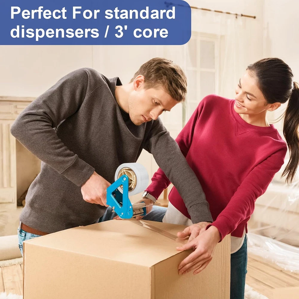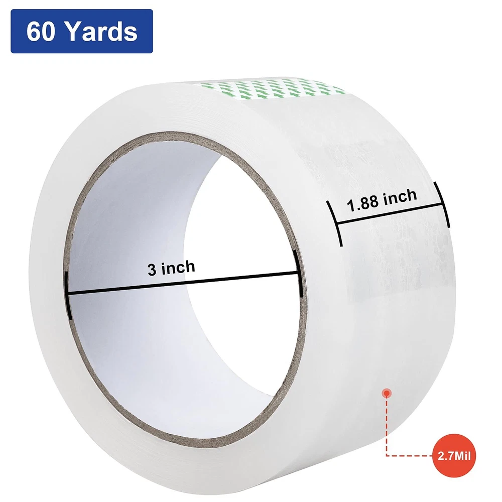 Our 12 Rolls strong packing tape, it is very easy to help you complete the work quickly. These shipping tape prefect for multi-purpose use: Could be used for packing, shipping, packaging, mailing, carton sealing, storage, moving, ect. Outstanding Material: Our packaging tape made of extra strength OPP layer material, use industrial-strength adhesives, the coating is uniform. Package Tape Size: Core diameter: with 3 inch core Packing tapes thickness: 2.7 mil Long and wide: 1.88 inch X 60 yard Total rolls: 12 rolls Total yards: 720 yards Mailing tape color: clear packing tape Packing Tape Advantages: Super Sticky: Packing tape heavy duty with strong adhesion, ultra-strong, industrial-strength adhesive, holds boxes together. Strong Toughness: Our heavy duty packaging tape thickness 2.7 mil, is very good in toughness, so this clear packaging tape will not tear or split easily. Long Lasting: Packing tape bulk total 720 yards, can be used longer. Multiple Use: Packing tape refill for home, office, commercial or industrial use. Clear package tape apply at the depot, warehouse, express logistics use. Packaging tape refill for dispenser, could be used for packing, shipping and mailing, storage, moving, sealing. No more hesitation! Try it now! Satisfaction Guaranteed: We are very confident in our clear packaging tape refill, please contact us if any issue with our products. Just Add To Your Cart Now! Package Includes: 12 Rolls clear packing tape refills for dispenser 12 Rolls Packing Tape: Our clear package tape with 3" core, 1.88" X 60 yd, 720 total yards, suitable for standard tape dispensers and tape guns, it can help you quickly complete the work of packaging and sealing Strong Toughness: Our packing tape heavy duty, 2.7 mil thick, clear tape packing made of extra strength OPP layer material, so this clear packaging tape will not tear or split easily Strong Adhesive, Load Up 50LB: Our packing tape rolls use industrial-strength adhesives, the coating is uniform, box tape for moving, guarantees that the boxes can be glued together and are strong and durable Wide Applications: Our shipping tape rolls apply at the depot, warehouse, express logistics, home and office use, packaging tape refill for dispenser, could be used for packing, shipping and mailing, storage, moving, sealing Satisfaction Guaranteed: We are very confident in our clear packaging tape refill, please contact us if any issue with our products