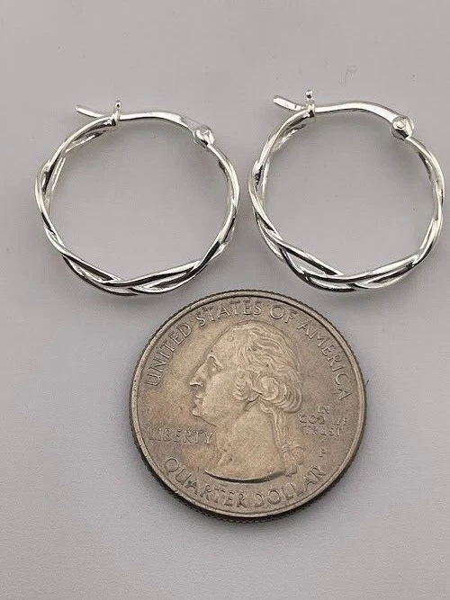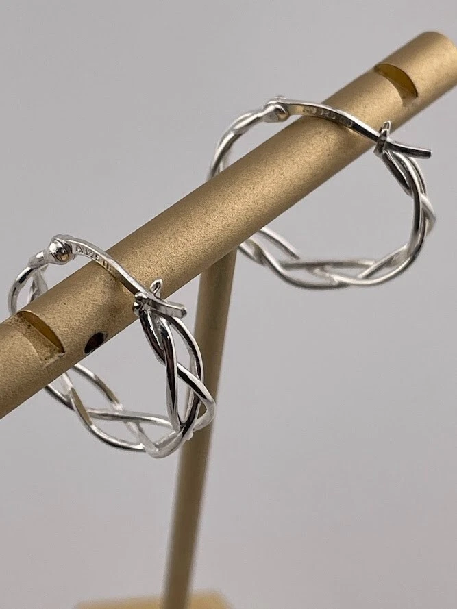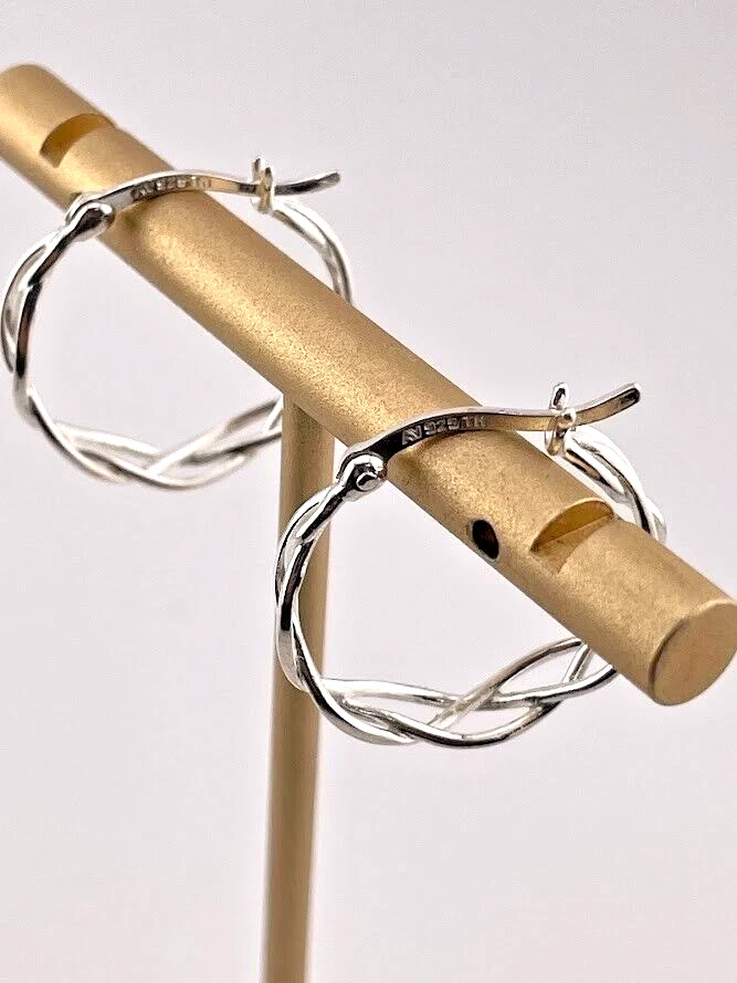 AV THAILAND 925 STERLING SILVER OPEN BRAID HOOP EARRINGS 3/4" SOUTHWESTERN 3607 ****************************** Thank you for your interest in our jewelry. We?d like to introduce ourselves. We are just a retired couple who love matching our customers with great jewelry. We?re not professional jewelers. To have the best shopping experience we like to recommend the following: Please measure your hand, wrist, finger or neck to ensure the best fit. We can use your measurements to help with sizing. Please ask all the questions you want. We know some stuff and, if we don?t, we?ll do the research. We like to learn too. More Stuff: If an item is described as ?gold over 925 sterling silver? this means it is gold vermeil. Vermeil is the process by which a layer of gold (usually 14k or 18k) is bonded to sterling silver. We only clean with gentle soap and warm water to avoid damage. The items we sell may be new or pre-owned and may have normal wear, slight damage, and/or tarnish. We make every effort to ensure the items we sell are as described. This includes testing to confirm metal purity if the item isn?t marked, and testing for gemstone identity. We try to put measurements in the jewelry description and include a photo of each piece with a U.S. quarter (25mm).