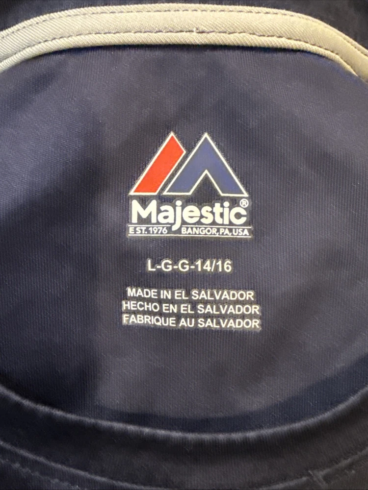 Country/Region of Manufacture: El Salvador Color: Blue Team: New York Yankees Officially Licensed: Yes Sport: Baseball League: Major League (MLB) Brand: Majestic Size: L Product: Shirt Player: Derek Jeter Pre & Post Season: Regular Season Gender: Youth