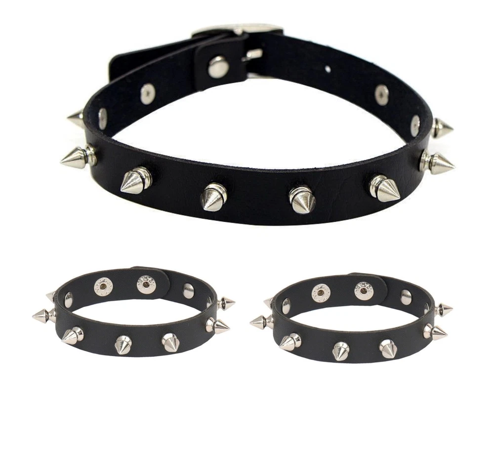 AWXZOM 3pcs punk accessories Choker Necklace and spiky bracelet for women men...