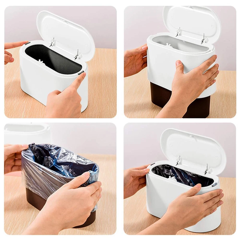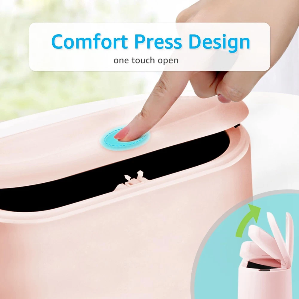AYADA Mini Trash Can with Lid, Press-Type with Removable Inner Plastic Small Garbage Can Little Tiny Waste Basket Compact Covered Closable Trash Bin, Desk Countertop Office Kids Oval Rectangle (Pink) 【Desktop Trash Can with Lid】 The new mini trash bin with lid can effectively reduce the spread of odors and isolate fruit flies. Beautiful hidden trash bag and fresh color design, it can even become the perfect decoration for your desktop! 【Easy to Use】Automatic pop-up top lid, one touch open. 7-inch widened trash caliber, double buckles on the side can easily fix the garbage bag. The narrow shape is more suitable for being placed against the wall without occupying your desktop space. 【Quality Materials】Strong and durable polypropylene materials and high-quality alloy spring, rounded edges without any sharp parts, long-term use is not easy to deform. 【Multipurpose】 Suitable for desks, coffee tables, dressing tables, bedside tables, etc. It can also store cosmetics and toiletries to keep your tabletop neat. 【Customer Satisfaction】 We promise you every quality mini trash can and friendly customer service. If you found the mini trash bin you received is defective or any problem in using, please feel free to contact us. Specifications: Material: Polypropylene plastic Size: 8.7x4.3x5.1 in Net weight: 0.6 lb Volume: about 1.5 liters Color: Pink Shipping We offer FREE shipping on all orders! We use a selection of shipping services such as UPS, FedEx, USPS etc. We only ship to the lower 48 states, no APO/FPO addresses or PO Boxes allowed. Local pickups and combined shipping options are not provided at this time. Return You can return a product for up to 30 days from the date you purchased it. Any product you return must be in the same condition you received it and in the original packaging. Please keep the receipt. Payment We accept payment by any of the following methods: PayPal Please pay as soon as possible after winning an auction, as that will allow us to post your item to you sooner! Feedback Customer satisfaction is very important to us. If you have any problem with your order, please contact us and we will do our best to make you satisfied. Contact Us If you have any queries, please contact us via ebay. We usually respond within 24 hours on weekdays. Please visit our eBay store to check out other items for sale! Thank you for shopping at our store.