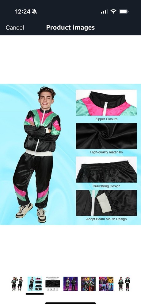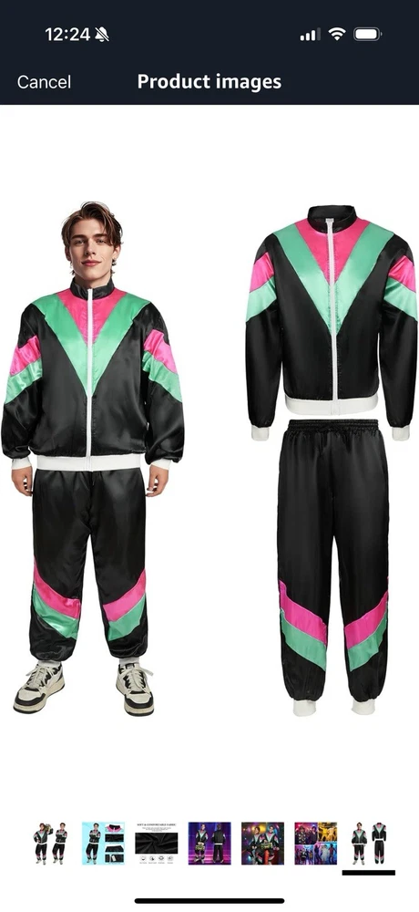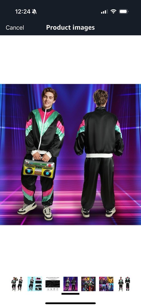 The AYBUY 80s 90s Fancy Dress Shell Suit Costume in black is a complete outfit perfect for a hip hop themed fancy dress party. Made from polyester with an L size, this retro costume is designed to give you a nostalgic and fun look from the 80s or 90s era. Complete with everything you need to transform your outfit into a funky ensemble, this costume is a great choice for anyone looking to channel their inner urban style icon.