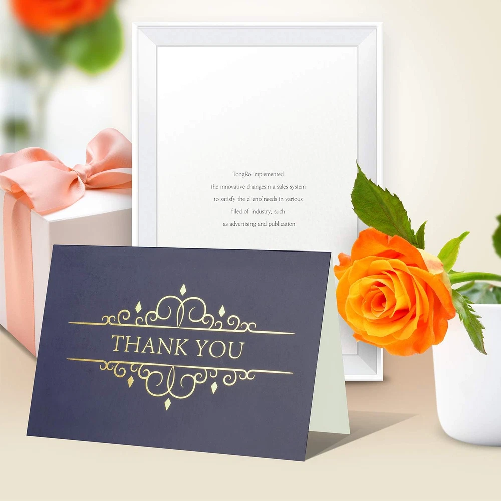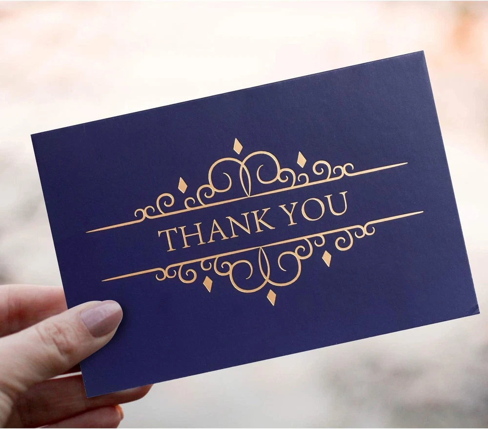 Store New Arrivals Add to Favorite View Feedback Contact AZZUTORK 20 Thank You Cards - Greeting Cards Blank Cards with Envelopes and Sealing Stickers -4X6 Photo Size Thank You Notes Assortment for Weeding Business Birthday (Style 2-20 Pack) Description Item model number 002 Sheet Size 4-x-6-inch Number of Items 20 Color Style 2-20 Pack Manufacturer Part Number 002 Item Weight 8.8 ounces Is Discontinued By Manufacturer No Package Dimensions 8.66 x 7.09 x 0.39 inches THANK YOU CARDS - Four classy navy and gold foil designs, 20 pack, 20 envelopes and sealing stickers, each card is blank inside. PHOTO SIZE - When closed, these elegant high-quality gratuity cards measure 4x6 inches. These stylish yet simple cards are blank inside and come with a storage box for your convenience. ONE CARD FITS ALL - Elegant, bold designs appeal to both a masculine and feminine audience. Ideal for Men, Boys, Women or Girls. 100 thank your cards in bulk means you’ll always have a card on hand for office stationery, graduation, holiday or wedding. ECO-FRIENDLY - Eco-friendly thank you notes made from 100% recycled paper. GREAT FOR ALL OCCASIONS - With a variety of designs, you can choose a unique card for your heartfelt message of thanks. Wedding, Baby Shower, Professional Business, Graduation, Birthday, Engagement, Funeral, Sympathy, Baptism and more! Why Choose Our Brand Thank You Card Elegant and classy navy thank you cards are printed on high-quality matte paper with embossed gold foil. Each card is designed to be sophisticated and appeal to a wide audience including men, women, teens, graduates and businesses. The assortment of 100 thank you notes with envelopes and sealing stickers, is ideal for expressing thanks at work, graduation, wedding or job interview. How to Say Thank You Kindly These 5 unique yet minimalist design found on these assorted cards for all occasions are more than just a small token of your appreciation. They are a symbol of gratitude on a personal level in an age when digital messages are no longer capable of making one stop, smile, and feel truly appreciated. The premium quality paper makes your gratitude clear, while the elegant unique designs is dressed to impress. This bulk set of 100 assorted note cards with envelopes and sealing stickers are a simple way to make somebody happy you noticed their effort, time, gifts, or gesture. Greeting Cards for Every Occasion From bridal showers to religious occasions, these thank you stationary notes are the perfect way to say you appreciate somebody for being there. Give a heartfelt thank you by personalizing the internal blank canvas of these gratuity cards using art, colored designs, or a hand-written message. Great for kids (boys or girls) saying thank you to teachers, or adults (men or women) thanking friends and family. Don't forget to thank everyone for work anniversary gifts either! Package: 20 Thank You Cards 20 Envelopes 20 Sealing Stickers Storage Box Satisfaction Guaranteed Buy with confidence knowing we will replace the cards or issue a full refund if you are not happy for any reason. Show Gratitude with these Designer Thank You Cards! Policy on Product Sourcing and Fulfillment Dear Valued Customers, We would like to clarify an important aspect of our business operations to ensure transparency and trust in our relationship with you. Product Fulfillment: Fulfillment by Amazon (FBA): The products are stored in Amazon Fulfillment Centers. This storage solution ensures that the inventory is kept in a secure and climate-controlled environment, which helps maintain the quality and safety of the products. Efficient Delivery: Utilizing Amazon's fulfillment services allows us to leverage their robust logistics network to provide you with fast and reliable shipping. This means you receive your purchases in a timely manner with the added assurance of Amazon's trusted delivery systems. Customer Assurance: Quality Control: Every product is carefully selected and undergoes rigorous quality checks before being listed for sale. Our commitment is to provide you with high-quality items that meet your expectations. Secure Storage: Amazon's Fulfillment Centers are renowned for their high standards of security and efficiency. Your products are stored safely until they are shipped to you. Customer Support: Should you have any questions or concerns regarding your purchase, our customer support team is readily available to assist you. We are dedicated to ensuring your satisfaction with every transaction. We appreciate your business and are committed to providing you with a seamless and satisfactory shopping experience. Thank you for your trust and understanding. Sincerely, -Manager- Shipping Policy and Expectations Dear Valued Customers, We are committed to ensuring that your package arrives as quickly as possible. However, we kindly ask for your understanding regarding certain factors that may occasionally affect shipping times. Our Commitment: Prompt Processing: We strive to process and dispatch your orders promptly to minimize any delays. Reliable Shipping Partners: We work with reputable shipping companies to ensure your packages are handled with care and delivered efficiently. External Factors: While we do everything within our power to expedite your order, please note that some factors are beyond our control: Weather Conditions: Severe weather can impact shipping routes and cause delays. High Postal Traffic: During peak seasons, such as holidays, the increased volume of packages can lead to longer delivery times. Shipping Company Performance: The performance and schedules of shipping companies may vary, potentially affecting delivery times. We appreciate your patience and understanding in these situations. Rest assured, we are doing everything possible to get your package to you as soon as possible. Customer Support: If you have any questions or concerns about your order, please do not hesitate to contact us. Our customer support team is here to as