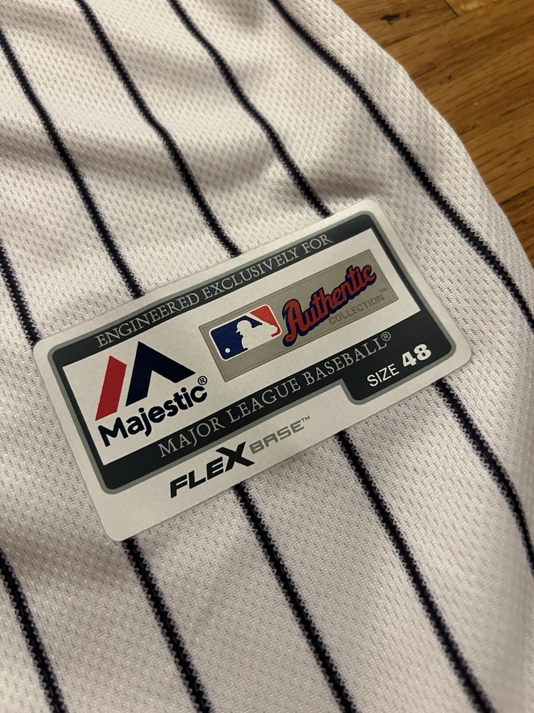 Player:Aaron JudgePre & Post Season:Regular SeasonLeague:Major League (MLB)Team:New York YankeesSport:BaseballBrand:MajesticOfficially Licensed:YesSize:LColor:WhiteGender:MenProduct:Jersey