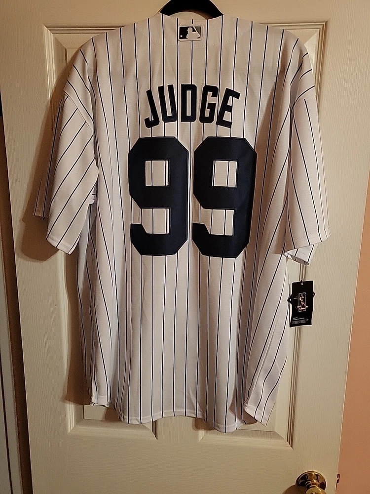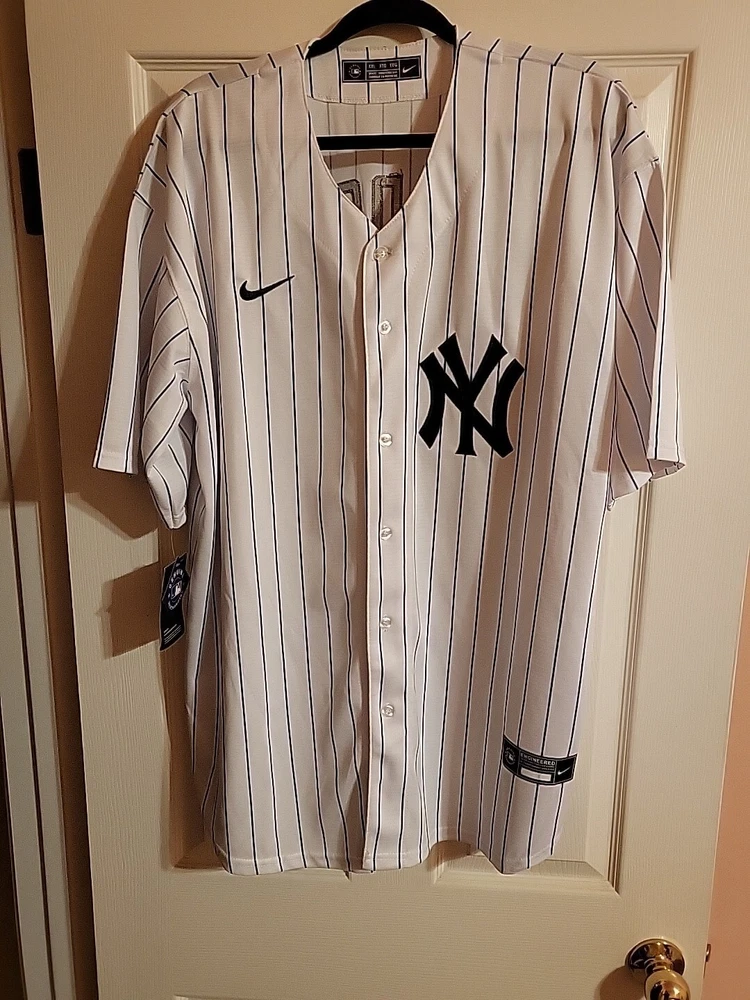 Aaron Judge New York Yankees White Pinstripe Jersey. Condition is New. Shipped with USPS Ground Advantage.