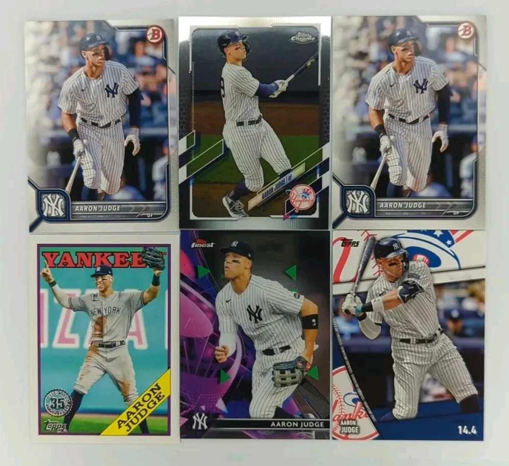 This lot of 12 Aaron Judge Topps trading cards is a must-have for any New York Yankees fan. Featuring the iconic player in a variety of poses and designs, this set includes cards from the 2022 Topps base set, as well as several rare inserts and Chrome cards. Each card is made of high-quality card stock and is an original, licensed print. With cards numbered 1-12, this set is perfect for collectors looking to complete their Aaron Judge collection or add to their existing set. Whether you're a seasoned collector or just starting out, this lot is a great addition to any sports trading card collection. Don't miss your chance to own these unique and highly sought-after cards!