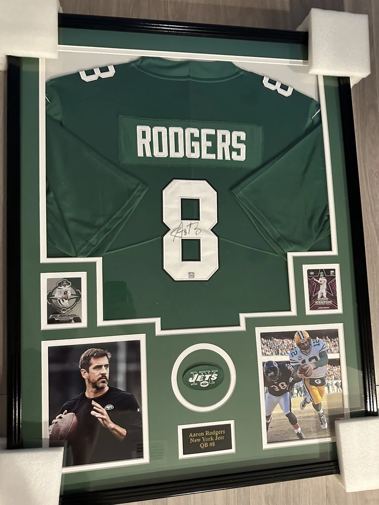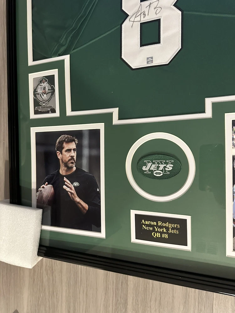 Aaron Rodgers Signed Framed Jersey New York Jets
