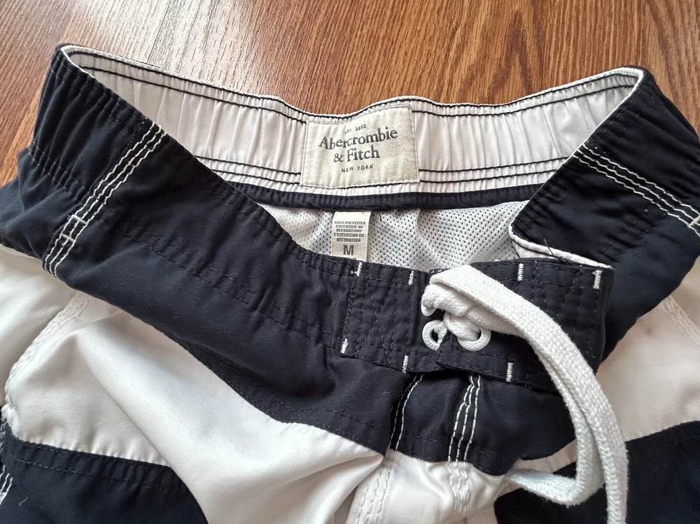 Get ready for a comfortable and stylish swimming experience with these Abercrombie & Fitch Adirondack Striped Swim Trunks. Made for men in size medium, these trunks come in a colorful striped pattern with a blue character theme that will make you stand out on the beach. The trunks have a regular size type and a white color that complements the blue character theme. These swim trunks have a comfortable fit and are perfect for your swimming needs. The Abercrombie & Fitch brand ensures quality, durability, and style that will last for years to come. Add these colorful trunks to your swimwear collection today and make a statement on the beach.