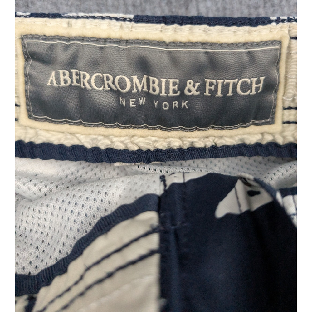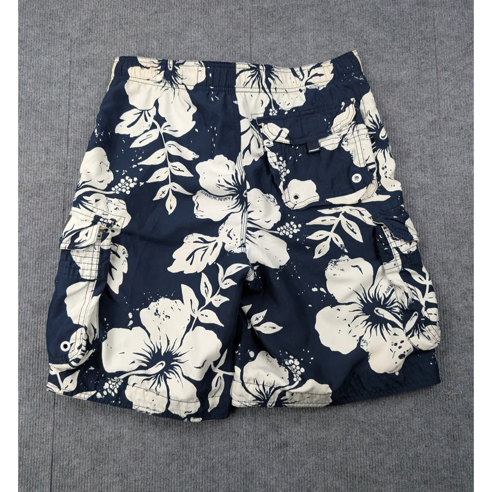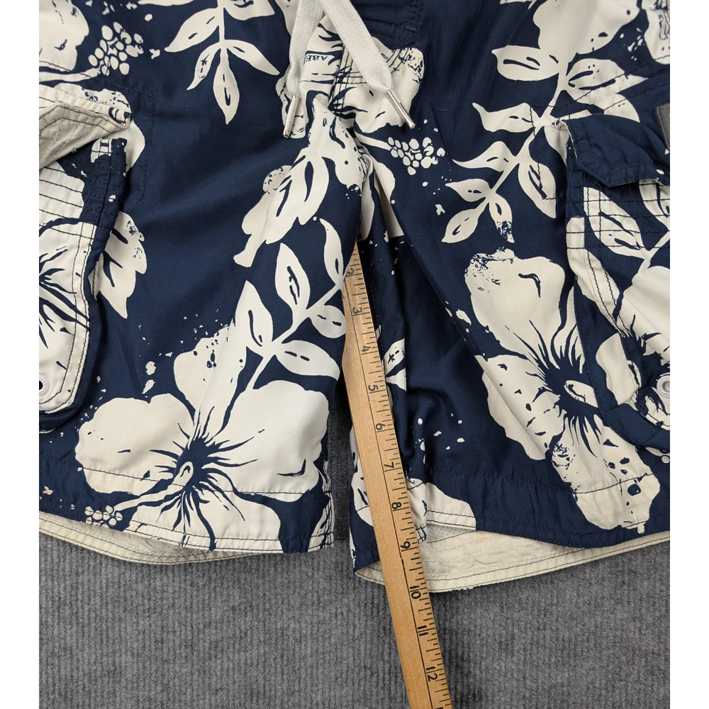 Brand: Abercrombie & Fitch Department: Men Type: Swim Trunks / Board Shorts Size: Mens 32 Color: Navy Blue / White Pattern: Floral / Hawaiian Material: 100% Polyester Lining: Mesh Closure: Drawstring Waist Features: Lightweight, Quick Dry, Cargo Pockets Occasion: Beach, Pool, Vacation, Summer Condition: Pre-Owned