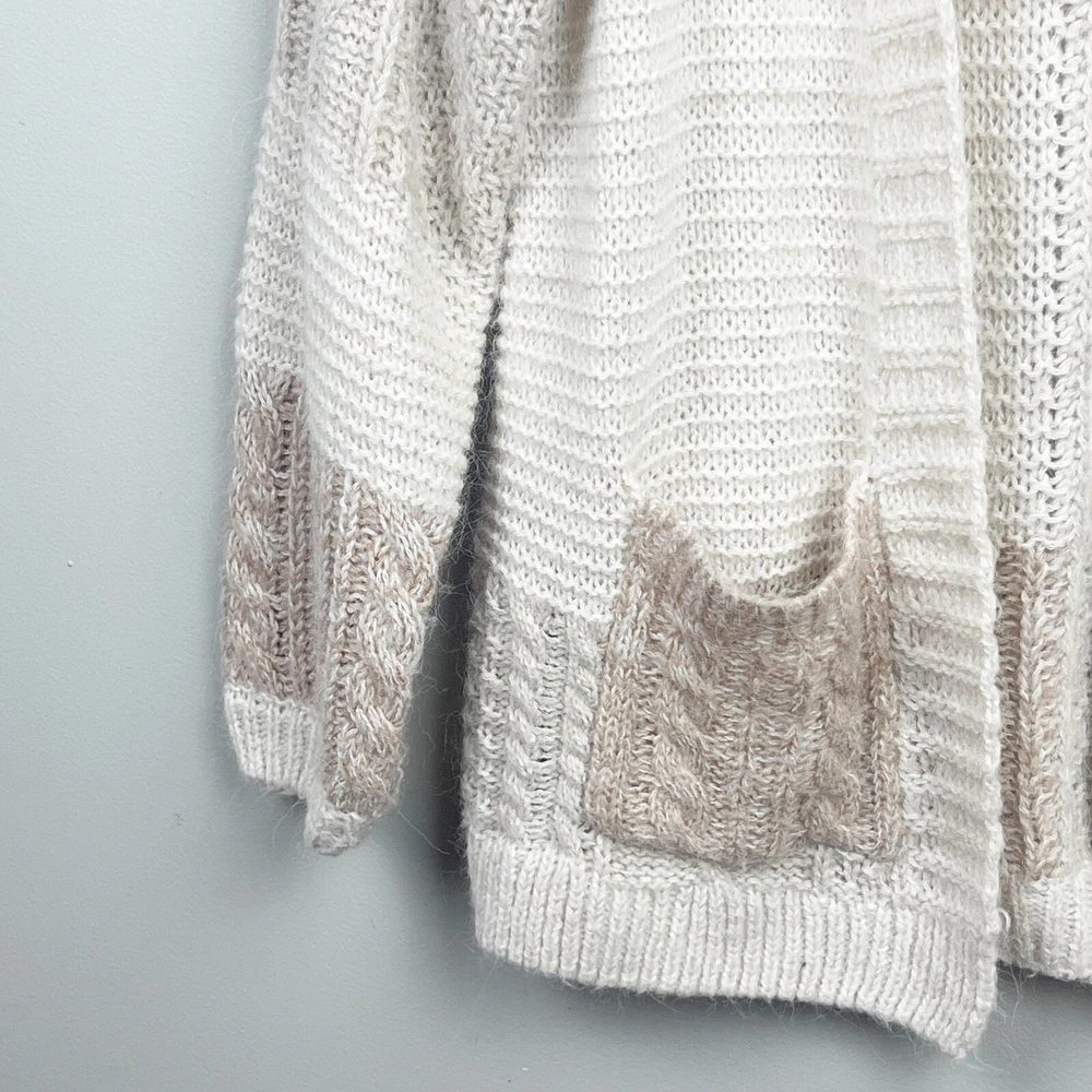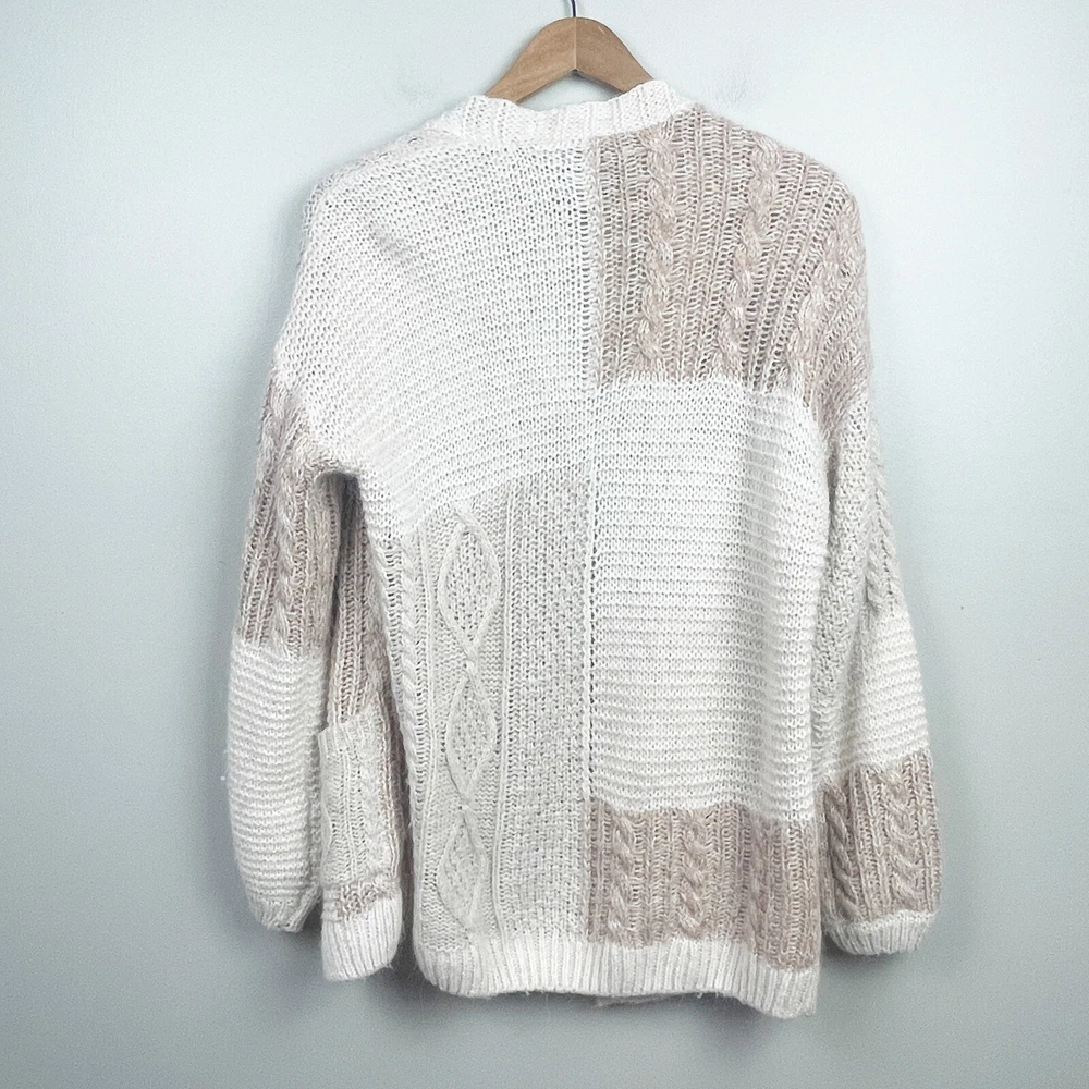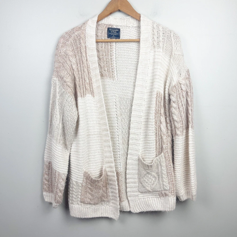 Abercrombie & Fitch Cable Knit Patchwork open cardigan sweater Excellent condition Measurements Straight across chest 23” Length 30”