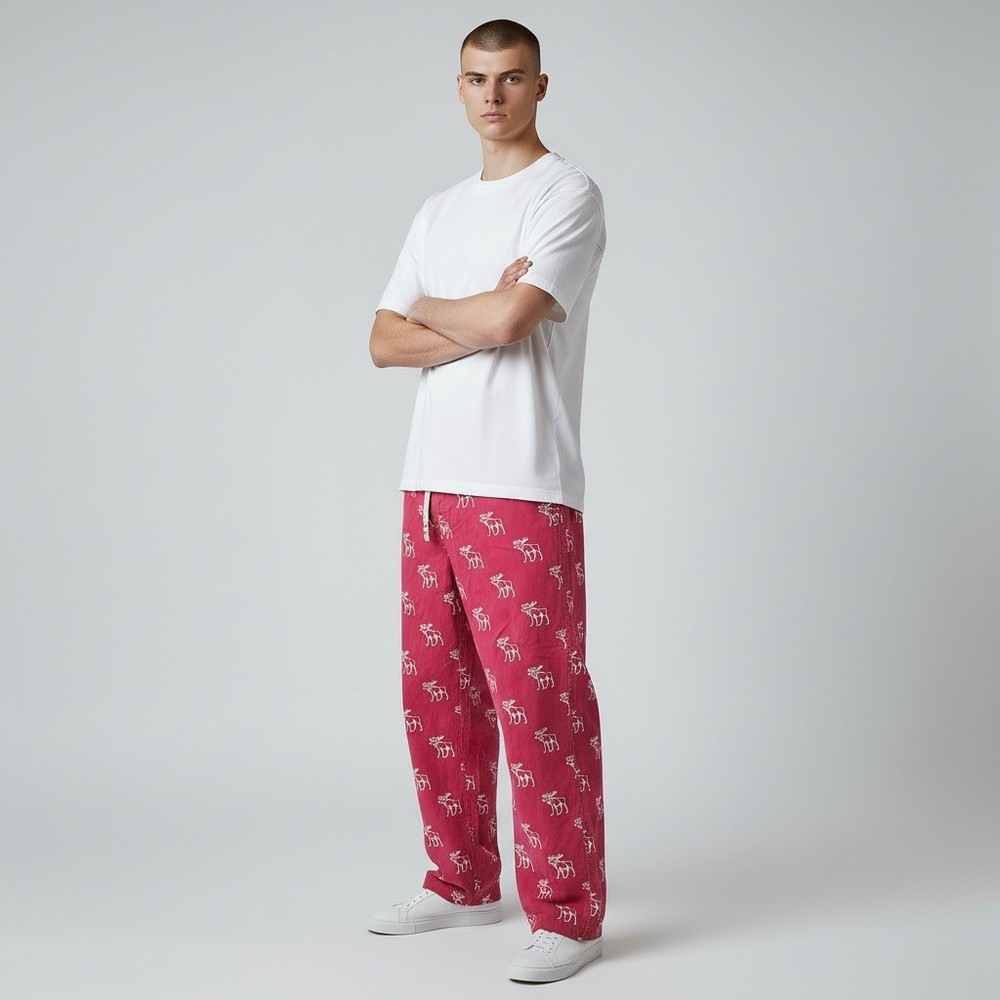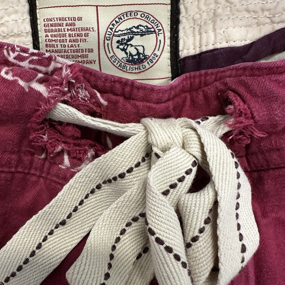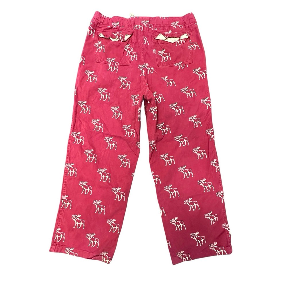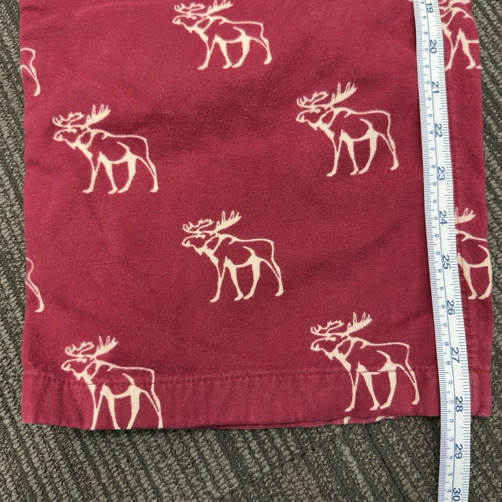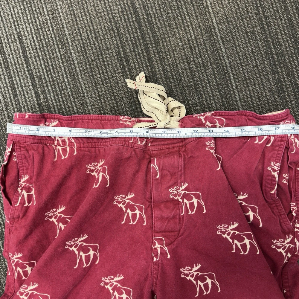 These Abercrombie & Fitch Men's Red Flannel Moose Sleepwear Lounge Pants in size L are a vintage Y2K piece that showcases the brand's iconic logo and preppy style. Made from cotton flannel, these drawstring closure pants feature a bold animal print pattern with a moose design, perfect for the winter, fall, and spring seasons. The pants are machine washable and adorned with button accents, adding a touch of comfort and style to your sleepwear collection. Ideal for men looking for a cozy and fashionable addition to their wardrobe. Small amount of fraying at the drawstring. See pictures