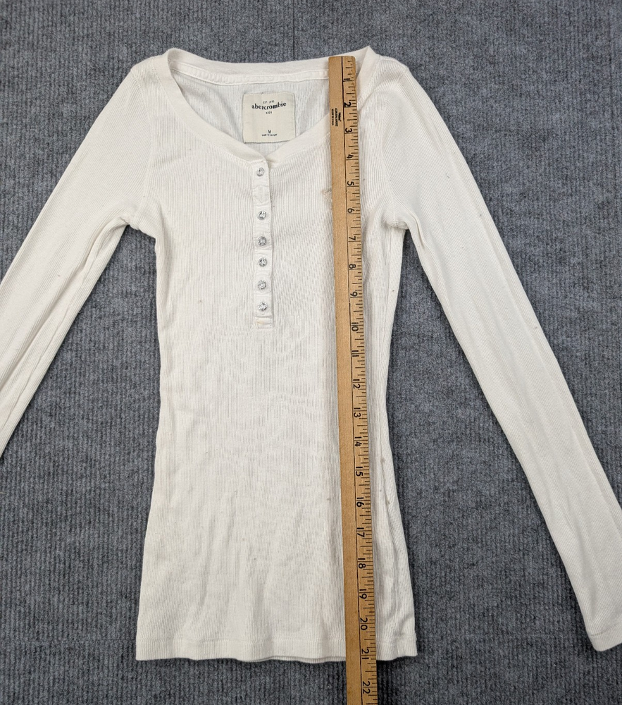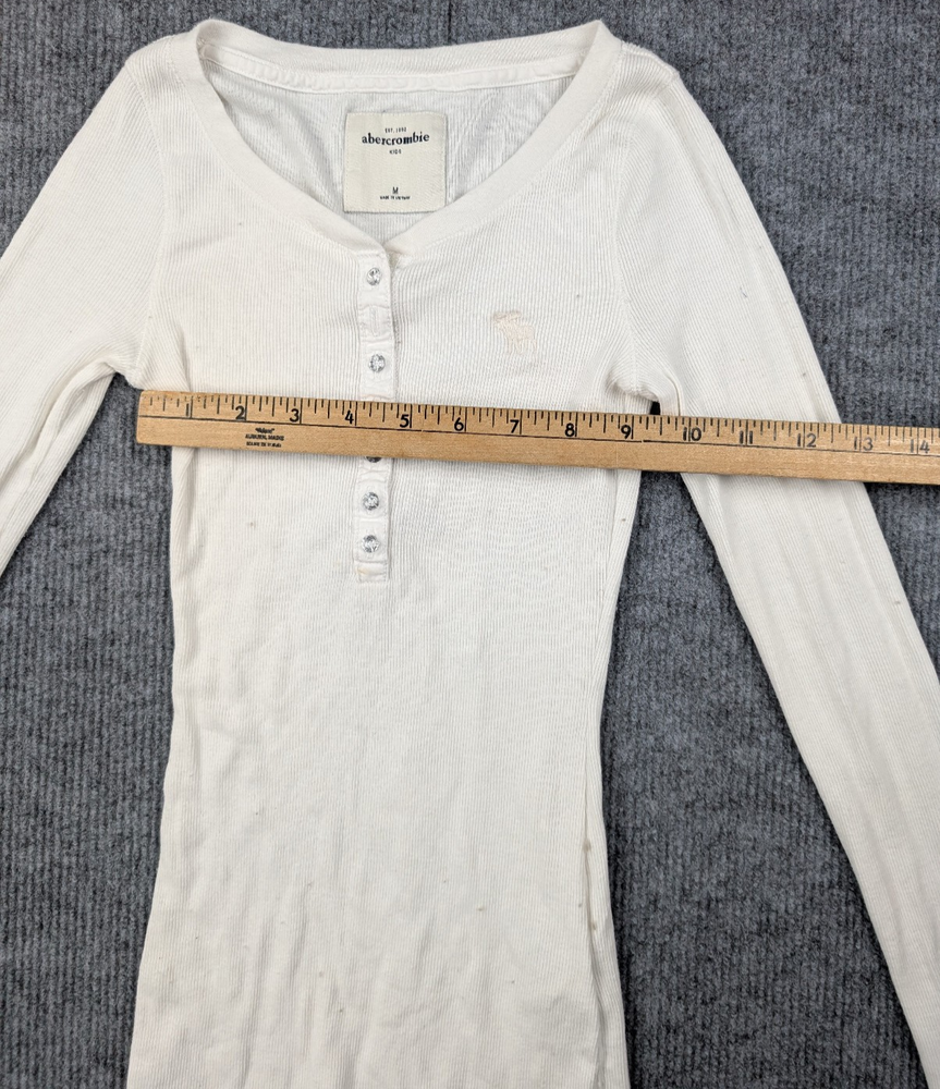 Brand: Abercrombie Kids Department: Girls Type: Henley Shirt Size: Medium Color: White / Cream Style: Long Sleeve Henley Material: Cotton Blend Fabric Type: Ribbed Knit Pattern: Solid Sleeve Length: Long Sleeve Neckline: Henley Closure: Button Features: Stretch, Ribbed, Lightweight Season: Fall, Winter, Spring Country/Region of Manufacture: Vietnam