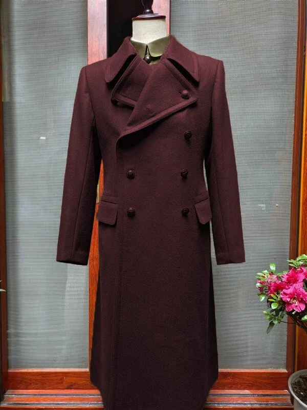 Abrigos largos de negocios 100 % cachemir para hombre de doble botonadura para uso al aire libre