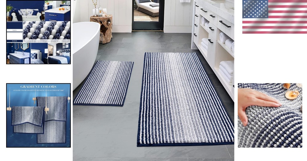 Absorbent Chenille Bathroom Rugs - 2-Piece Set in Navy 20"x47" & 16"x24" ‹ › ‹ › ‹ › ‹ › ‹ › ‹ › ‹ › Absorbent Chenille Bathroom Rugs - 2-Piece Set in Navy Sizes: 20"x47" & 16"x24" Luxurious Comfort for Your Feet Transform your bathroom experience with our Chenille Bath Mat Set . Crafted from high-quality, fluffy plush chenille microfibers, this set offers unparalleled softness and density. The plush fibers caress your feet and shield them from the chill of cold tiles, ensuring your comfort after every bath or shower. Superior Absorbency Ultra-fast Moisture Absorption: Experience the luxury of our chenille microfibers that quickly absorb moisture from your feet, keeping your floors dry and your feet pampered. Quick Drying: These mats dry rapidly, allowing you to step onto a fresh surface each time. Safety First Non-Slip Backing: Our high-quality hot melt adhesive backing ensures that these rugs stay firmly in place, reducing the risk of slips and falls, especially for children and the elderly. Care Instructions: For optimal safety, make sure the floor surface is clean, flat, and dry before placing the mat. Versatile Décor for Any Space The elegant gradient color design adds a touch of sophistication to your home decor, making these mats a beautiful addition in any bathroom, kitchen, bedroom, or living area. Their versatility extends to door entrances, stairways, laundry rooms, and even pet spaces. Durable and Easy to Maintain Machine Washable: Enjoy hassle-free cleaning with our durable material that withstands frequent washing while retaining its vibrant color and plush feel. Care Tips: Machine wash in cold water using mild detergent; avoid chlorine or bleach to keep your rugs looking new. Why Choose Our Chenille Bath Rugs? Indulge your feet with the luxurious softness and absorbency of our bathroom rugs. Designed with both aesthetic and practical features in mind, this 2-piece set elevates your space while ensuring safety and comfort. Treat yourself to the ultimate relaxation experience and enhance your home with our stylish bathroom essentials. Shipping Free & Fast Shipping - We offer free shipping to most of the USA with a normal delivery time of 3-7 days. However, due to the current situation, additional delivery time (up to 3 weeks) may be required for some items. Alternative Carriers - We may use alternative carriers (e.g. USPS, FedEx, UPS, etc.) to ensure your package arrives safely and on time. Due to the use of multiple carriers, we are unable to provide a tracking number automatically. Handling Time - Orders are processed and shipped within 1-2 business days of receiving cleared payment. Shipping Restrictions - Shipping to Alaska, Hawaii, Puerto Rico, Guam, and other US territories may incur shipping charges or delivery restrictions. Please contact us before ordering, or your order can be refunded/cancelled. State Restrictions - There may be restrictions based on your state of purchase. For example, certain items may not be shipped to California due to state regulations. Contact for Tracking Updates - If you require tracking updates or have any concerns about the delivery of your order, please feel free to contact us, and we will be happy to assist you. Return 30-Day Hassle-Free Returns - We want you to be completely satisfied with your purchase. If you are not, you can return the item within 30 days of receiving it for a full refund or exchange. Easy Return Process - To start a return, simply contact us and we will provide you with a prepaid return shipping label and detailed instructions. Restocking Fee - There are no restocking fees for returns. However, the buyer is responsible for return shipping costs if the return is not due to a seller's error. Refund Processing Time - Refunds will be processed within 5 business days of receiving the returned item in its condition. Payment We accept all major credit cards, PayPal, and Apple Pay for your convenience. Your payment information is secure and encrypted to ensure a safe and seamless transaction. Please complete your payment within 3 days of purchase to avoid any delays in shipping. Feedback Your feedback is extremely important to us. We strive to provide the best products and customer service possible. If you are satisfied with your purchase, please take a moment to leave us a positive review. If you have any concerns or issues with your order, please contact us before leaving negative feedback. We are committed to resolving any problems and ensuring your satisfaction. Contact Us If you have any questions or concerns, please feel free to out to our customer support team. You can contact us through the eBay messaging system. We are available Monday to Friday, 9:00 am to 5:00 pm EST, and we will do our best to respond to your inquiry within 24 hours. Buy it now and enjoy a pleasant shopping experience! Item Height: Bathroom Rugs Unit Quantity: 2 Material: Chenille,Microfiber Set Includes: Bath Mat,Bath Rug Room: Any Room,Bathroom,Bedroom,Kitchen,Living Room,Laundry Room Features: Non-Slip,Absorbent,Quick Dry,Machine Washable Department: Adults Care Instructions: Machine Wash Theme: Clouds Type: Bath Rug Color: Navy Number of Items in Set: 2 Shape: Rectangle Pattern: Striped