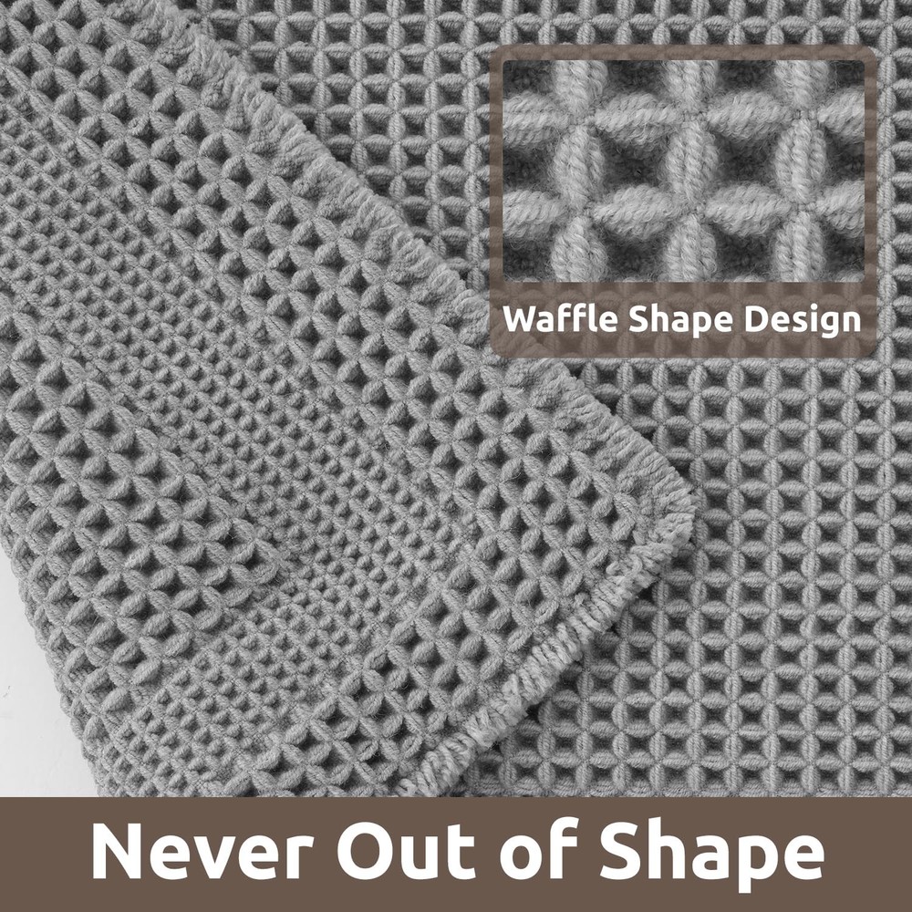 [Upgraded Waffle Bath Mat] Featuring a unique waffle design, our boho bathroom rugs can bring a touch of art to your bathroom. Woven with upgraded yarn, these absorbent bath mats for bathroom non slip is a combination of beauty and durability. Heavier and thicker threads are applied to make the grey bathroom mat more solid and never out of shape. [Super Absorbent Bath Mat] The super absorbent upgraded yarn and unique waffle texture make our long bathroom rug runner able to continuously absorb moisture like a sponge. These bath rugs non slip washable can soak up the water and prevent water seepage, keeping the floor dry at all times and protecting your feet from cold floor. [Non Slip Bath Mat] Designed with non-slip rubber backing, our bath rugs for bathroom non slip can tightly grip the floor and stay in place. There is no need to purchase extra grey bath mat tape. These bathroom rugs non slip washable are suitable for kids and elders, protecting them from slipping after shower. [Washable Bathroom Rugs] This waffle bath mat boho is designed to be machine washable, making cleaning a breeze. Machine wash the non slip bathroom rug runner with a laundry bag in cold water and mild detergent and hang it to dry. We recommend gentle mode, and do not tumble dry or iron. [Comfortable and Soft Bath Mat] The three-dimensional waffle design makes the washable bathroom runner rug very soft, giving you a comfortable feeling like stepping on layers of clouds. Enjoy the cozy underfoot touch after every shower with our bathroom mats non slip. Let the boho bath rug clear away your fatigue of the day.