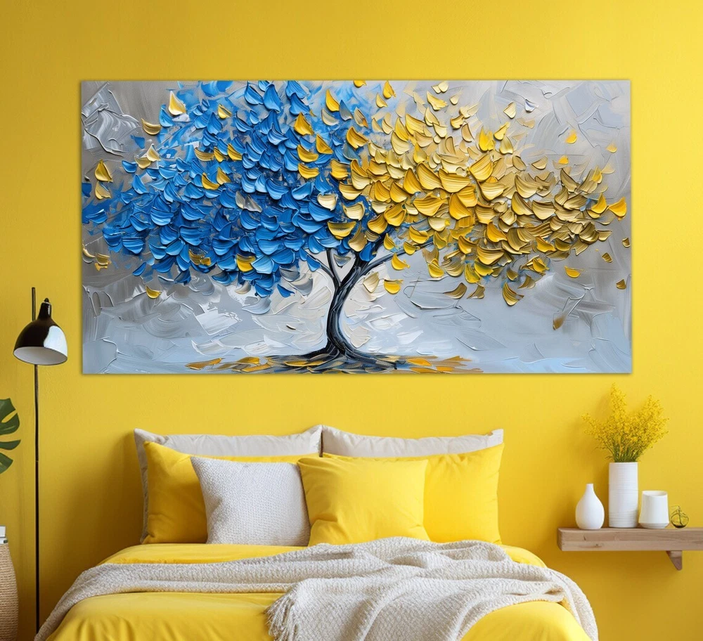 Abstract Blue & Yellow Tree Oil Paint Unframed Canvas Print Australian Wall Art