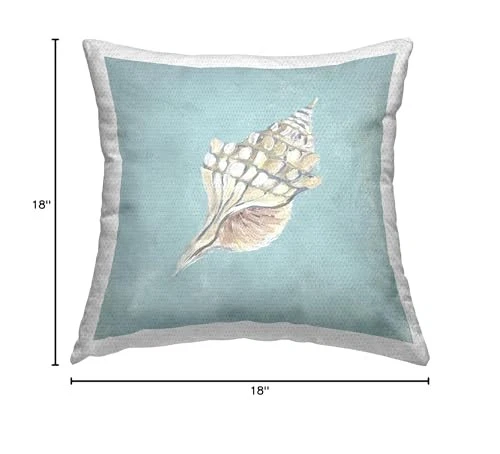 Update your outdoor living space with ’ Decorative Outdoor Printed Pillow in a wide variety of colors, styles, and trends. The printing process makes the ink part of the fabric for greater outdoor durability. Quick-dry pillows arrive with inserts already zipped inside their case. Ideal for outdoor couches, chairs, loungers and benches. Pillow cases printed in the USA. Dimensions: 18 x 18 Inches, Including Filling Insert Decorative outdoor pillows are a great and easy way to decorate your outdoor living space, adding both a decorative accent and comfort. Pillows arrive with insert already zipped inside and ready to fluff. Casing and filling insert are both made of quick-dry soft polyester material. The printing process makes the ink part of the fabric for greater outdoor durability. To wash remove filling insert from casing using invisible zipper. Clean pillow case separately, machine wash on delicate with cold water and mild detergent. For best quality hang dry. Pillow insert is spot clean only. Artwork Relates To: Animal, Invertebrate, Sea Life, Seashell, Nautical, Maritime, Conch Design by Julie DeRice