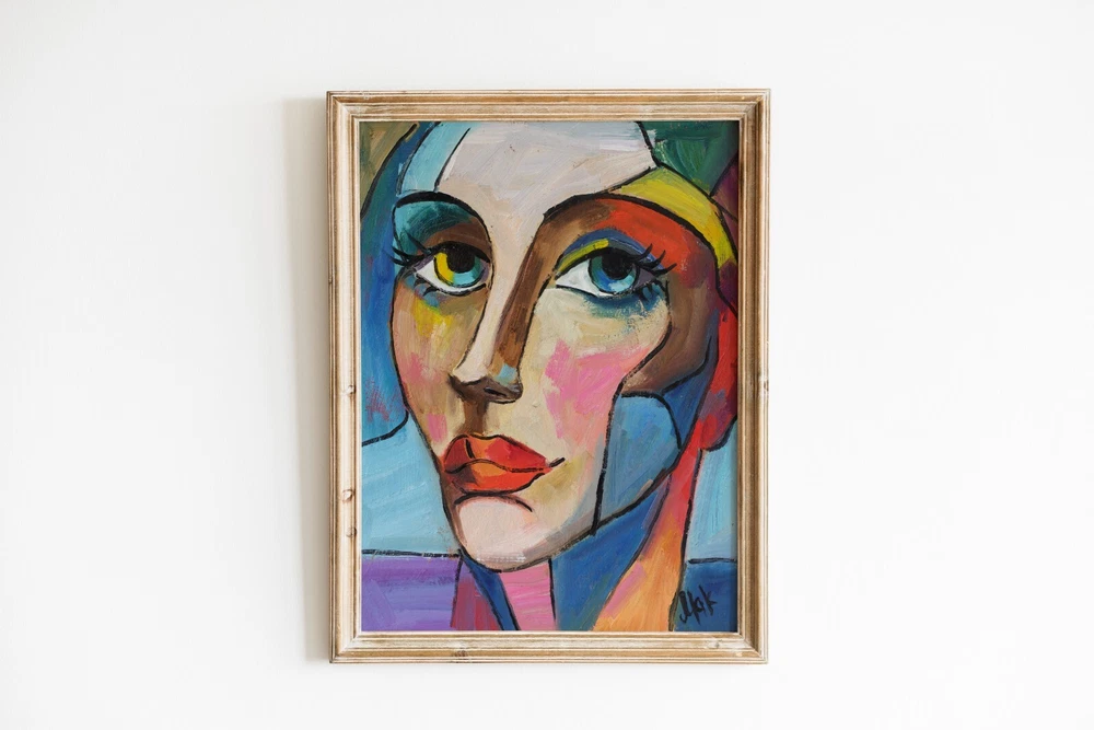 Abstract Woman Portrait Cubism Female Original Wall Art Modern Art Expression Contemporary Art Picasso Style Woman is an original oil painting. This is not a copy or print or reproduction. Just my art, directly from the artist - Nataly Mak. 🌈 Without frame 🌈 Size: 8x10 🌈 Materials: oil paints and cardboard ⭐ YEAR: 2023 ⭐ I can draw a different size picture. Just contact me ⭐ On the front and back sides of wall art - the author's signature. Please note, that colors shown may vary from monitor to monitor, but I guarantee that the colors are vibrant. Open for commission ♥ Thanks for shopping and feel free to message me with any questions! I look forward to working with you! I ship with registered mail and you will get a tracking number. Thank you for your visit! Best Wishes, Nataly Mak