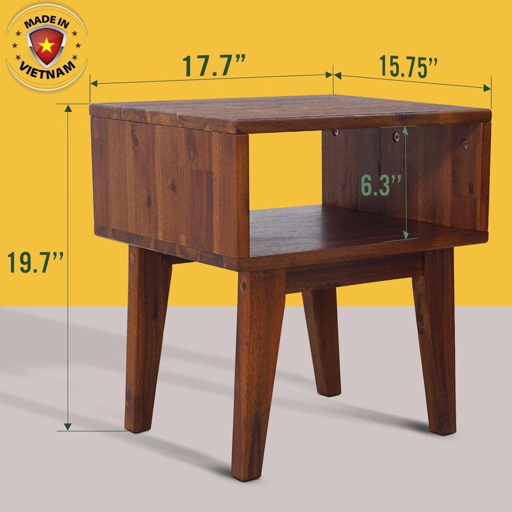Acacia Serena Nightstand/End Table Solid Wood Bed Side Table for Bedroom Living Room College Dorm (Chocolate) SOLID ACACIA WOOD CONSTRUCTION: Crafted from FSC-certified solid acacia wood, the Serena Nightstand ensures lasting durability and stability. Its sustainable design resists wear, prolonging lifespan and reducing the need for replacements. SPACIOUS STORAGE FOR LARGE AND SMALL ITEMS: The open shelf (17.7" L x 15.75" W x 6.3" H) easily holds large items like lamps, books, or decor and small essentials like a , glasses, or remote. With a 166-lb weight capacity, it offers sturdy, versatile organization. MODERN VERSATILE DESIGN: contemporary , this sleek walnut nightstand complements any decor, from modern to farmhouse. Its minimalist design keeps essentials within reach, adding both and function to your bedroom or living space. DURABLE AND ERGONOMIC: With a water- and scratch-resistant finish, this nightstand is built for lasting use beside your bed or sofa. Its sturdy design supports daily essentials while maintaining a clutter-free look. EASY ASSEMBLY IN MINUTES: Designed for hassle-free setup, the Acacia Serena Nightstand comes with all tools and instructions included. Assemble it effortlessly and enjoy a stress-free addition to your space. With a contemporary take on furniture, our nightstands are designed to realize the embrace between the sleek lines of the new and the comfort of the old. These easily fit into your unique decoration and personal preferences, harmonizing with their surroundings and complementing existing pieces. Contemporary, yet ephemeral. Never over substance, Acacia nightstands are made of high quality sustainable acacia wood, with a simple yet striking silhouette. Top surface is finished to be water and scratch resistant, thus offers greater versatility in untroubled uses. The structural integrity helps the nightstand stay stable for years to come. This combination offers a unique opportunity to furnish your personal space with ton-sur-ton appearance and quality. A nightstand that is simplistic yet essential in keeping all your important belonging at hand, in the most pleasing manner. All parts are engineered to minimize any hardship while assembling, for your effortlessly quick installation. This product is made of natural wood, which makes it unique and can lead to slight color variations. Shipping We offer FREE shipping on all orders! We ship within Three business days of payment, usually sooner. We use a selection of shipping services such as UPS, FedEx, USPS etc., unable to choose a carrier. We only ship to the lower 48 states, no APO/FPO addresses or PO Boxes allowed. Sellers generally can’t change the shipping address that you provided at checkout. Local pickups and combined shipping options are not provided at this time. International buyers - please note: Import duties, taxes, and charges aren't included in the item price or postage cost. These charges are the buyer's responsibility. Return You can return a product for up to 30 days from the date you bought it by using the seller's FREE RETURN LABEL only. Any product you return must be in the same condition you received it and in the original packaging. International buyers - Rejection and return of the product requires the buyer to pay all shipping and return costs. Please return with the reason "Order mistake" or "Changed my mind" or "Does not fit" for a refund, which would be greatly appreciated. If the buyer wishes to return the items for a refund or replacement, please contact the seller to obtain a free return label. The refund or replacement will be processed using the tracking number of the return label, which will be provided solely by the seller. Other methods of return that have not been approved by the seller will not be processed for a refund or replacement. Payment We accept payment by any of the following methods: eBay Manage Payment Please pay as soon as possible after winning an auction, as that will allow us to post your item to you sooner! Feedback Customer satisfaction is very important to us. If you have any problem with your order, please contact us and we will do our best to make you satisfied. Please be aware that our products are stored and fulfilled by third-party warehouses and manufacturers across the United States (also known as third-party fulfillment or product sourcing). These companies are completely trustworthy, and we are confident in entrusting all of our valuable items to them for the safety and best delivery system for our store. Contact Us If you have any queries, please contact us via ebay. We usually respond within 24 hours on weekdays. Please visit our eBay store to check out other items for sale! Thank you for shopping at our store.