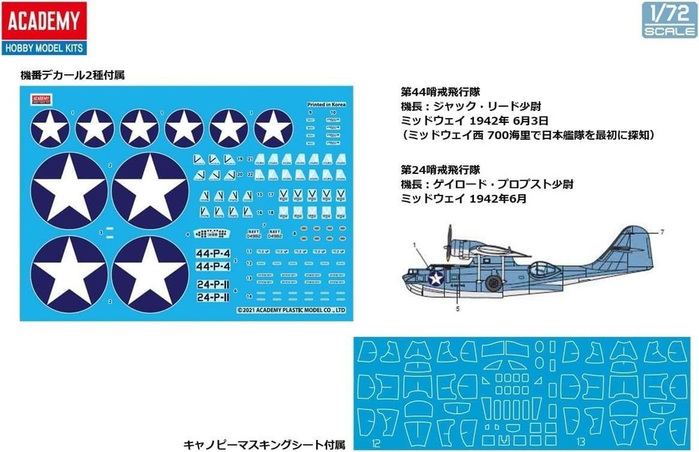 Further Details Title: Academy 1/72 US Navy Air Corps PBY-5A Operation Catalina Midway Plastic Model 12573 Condition: New Description: Academy 1/72 US Navy Air Force PBY-5A Catalina Midway Plastic Model Introducing the PBY-5A Catalina airplane that has been used as anti-subpost, coastal protection, and marine rescue. Products are precision molded, representing each panel line. Canopy Masking Seal and Decal comes with 2 U.S. Army Air Forces. Size when assembled: total length 10.9 inches (278 mm), total width 17.3 inches (440 This product is a plastic model that requires assembly and painting. Adhesives, tools, paints, etc., are required for assembly and painting. "Plastic Model" is a registered trademark owned by the Japan Plastic Model Industrial Cooperative Association. This product does not include any adhesives, paint, tools, or batteries. Release Date: 05/27/2022 Item Weight: 1.03 poundsg Age Level: 15 years and up Item Width: 130mm Item Height: 279mm Brand: アカデミー(Academy) Color: Molded Color Material: Plastic Style: Assembly Theme: Military Scale: 1/72 Character: Assembly Item Length: 439mm Size: 1/72 Dimensions: 17.32 x 5.12 x 11.02 inches Number of Pieces: 12573 Type: Airplane & Jet Kits MPN: 12573 US Army Navy Air Force Decal Precise molds represent each panel line Academy ACADEMY (Korea) Import Plastic Model This plastic model requires assembly and painting. Adhesives, tools, paints, etc., sold separately Size when assembled: total length 10.9 inches (278 mm), total width 17.3 inches (440 1/72 scale unpainted plastic assembly kit Missing Information? Please contact us if any details are missing and where possible we will add the information to our listing.