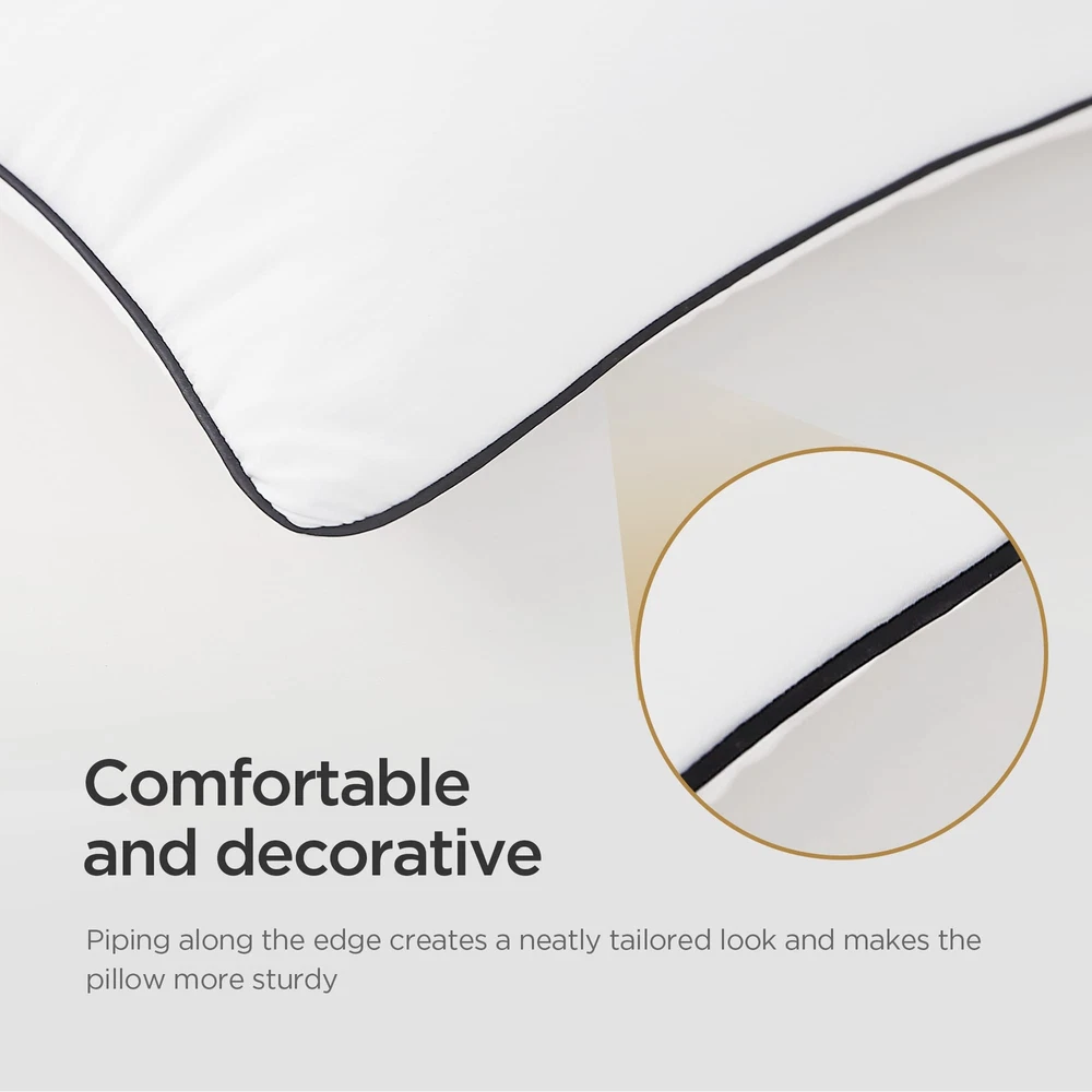 Enjoy cozy night sleep with Acanva bed pillows! Our fluffy, thick and supportive sleep pillows pop up quickly, offering the ultimate warmth and comfort. All materials are pure and clean to offer a sniffle-free night's sleep. Also ideal for guest bedroom, reading, setting up or decoration purpose. Package: Vacuum packaged NOTE: The pillow is compressed for better protection and easier shipping. Please open the package to allow it to expand into its original deep and fluffy shape. You could also put the pillow into the dryer in low heat for 10 minutes, to reach to maximum fluffiness. It will fit wonderfully into the pillow cases. Cooling Bed Pillows for Sleeping: The bed pillow cover is made of premium cotton polyester to stay soft, breathable, and dry. They are perfect for those who sweat easily or prefer a cool pillow to sleep with. Piping along the edge creates a neatly tailored look. Fluffy & Supportive: Filled with 100% microfiber similar to down which makes the pillows supportive and cozy. Whether you prefer soft or firm pillows, our comfortable pillows are for you. Enough filling makes pillows extremely fluffy. Our 4 pack bed pillows provide a great balance of supple softness and plump firmness. Comfort & Luxury at Home: With our bed pillows never go flat, no matter what kind of sleeping positions you prefer, including side and back sleepers, you can always get experience five-star hotel luxury and cozy at home every night. Packaging Design: The bed pillows are vacuum packed and rolled in a PE bag for shipping purposes. We suggest removing the vacuum bag, shaking it a few times to make it fluffy and putting them under sun bathing a few hours regularly for healthier use. Perfect Size: There are three sizes available, standard pillows 20x26 2/4pack, queen pillows 20x30 2/4 pack, king pillows 20x36 2/4 pack. The medium firm pillows down alternative filled is an ideal gift choice for your family and friends on Father's Day, Mother's Day, Birthday, Christmas, New Year, Housewarming or Back to School.
