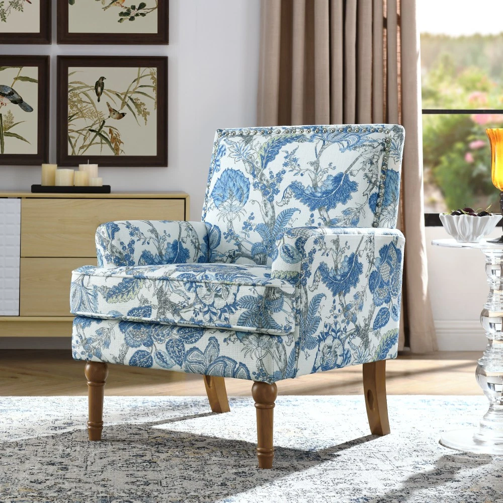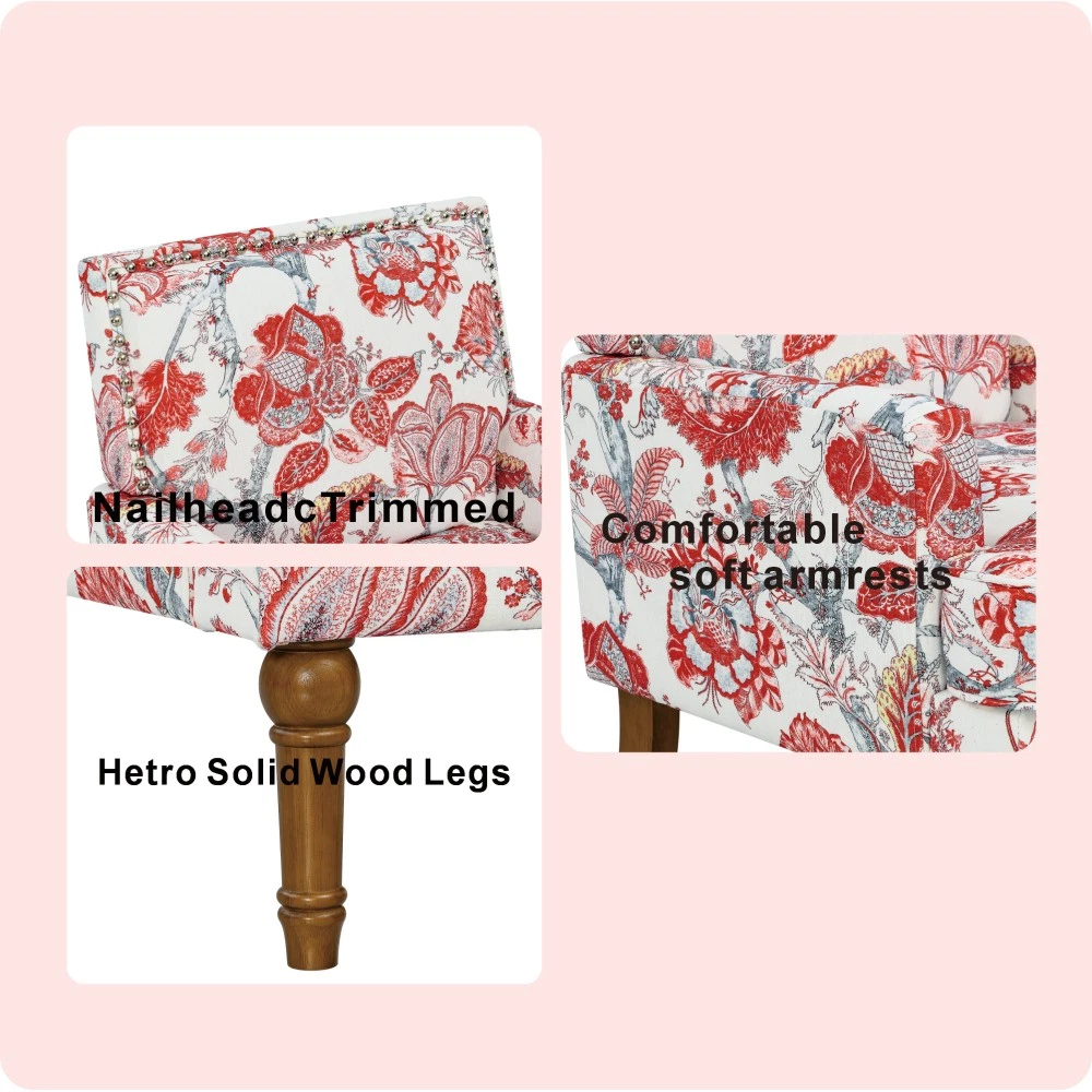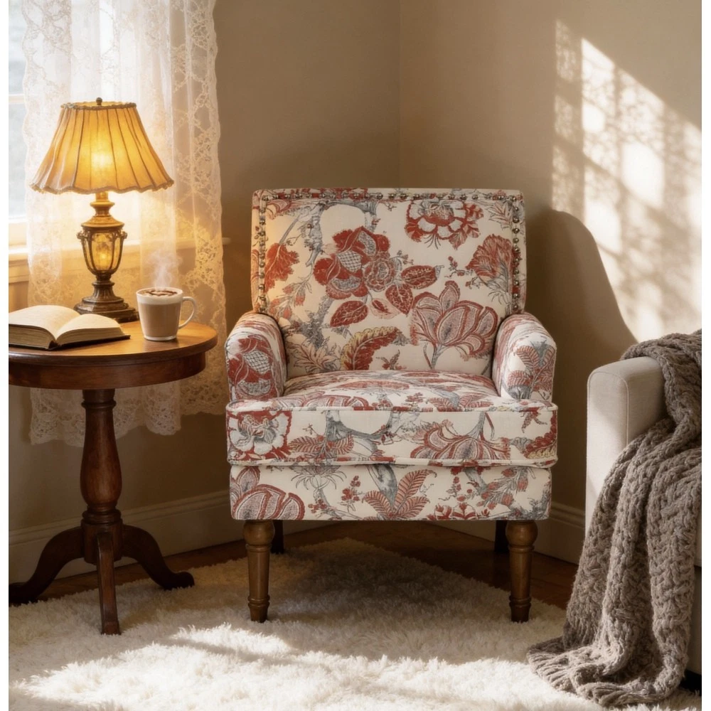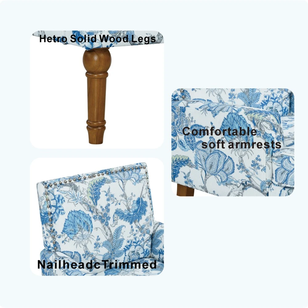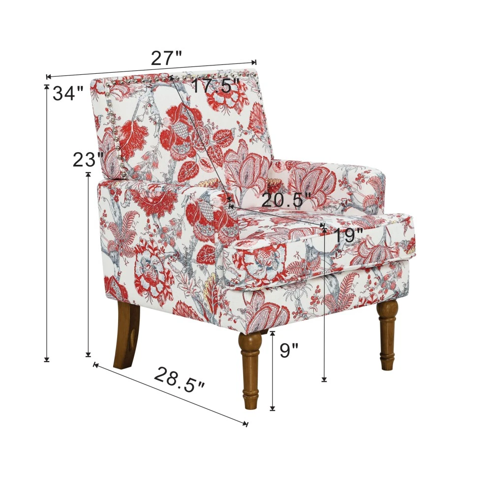 Accent Chair - Earthy Yellow, Floral Print with Nailhead Trim, Solid Wood Legs, Upholstered Slipper Chair for Living Room Elevate your primary living space with this stunning accent chair, crafted in Viet Nam to blend contemporary style with timeless comfort. Upholstered in an earthy yellow fabric adorned with sophisticated gold and grey floral prints, this chair features elegant nailhead trim, sturdy solid wood legs, and plush foam padding—making it a perfect statement piece for farmhouse, transitional, or modern interiors. Chic Botanical Pattern & Warm Earthy Tone. Dressed in a beautiful botanical tapestry-inspired fabric, this accent chair boasts a gold and grey floral print that adds a warm, artistic flair to any room. The earthy yellow base hue complements the floral design, offering a fresh take on classic elegance and making it an eye-catching statement piece that elevates modern farmhouse or transitional decors. Decorative Nailhead Trim for Tailored Sophistication. The chair’s high backrest is elegantly outlined with gleaming metallic nailhead trim, creating a refined, handcrafted aesthetic that exudes vintage luxury. This meticulous detailing adds structural definition to the chair, catching the eye from every angle and enhancing its overall polished look. Sturdy 9” Solid Wood Legs. Elevated by 9-inch tall solid wood turned legs with a natural finish, this chair delivers lasting stability and reliable support. The natural wood tone complements the warm earthy yellow fabric, while the generous 9-inch height makes vacuuming and general room maintenance a breeze—blending functionality with style. Plush High-Density Foam Comfort. Sink into premium comfort with a thick, high-resiliency foam-cushioned seat that retains its shape over time, ensuring long-lasting comfort. The supportive upright back offers ergonomic support, making this chair the perfect spot for long conversations, quiet reading sessions, or simply unwinding after a long day. Versatile for Any Living Space. With its compact silhouette and striking design, this upholstered slipper chair is a versatile addition to any room in your home. Use it as an accent piece in your living room, a cozy seating option in your home office, or a stylish side chair in your bedroom suite—offering both functional seating and a decorative element that enhances your space’s cozy ambiance. Perfect Size & Secure Shipping. The assembled chair measures 28.50”L × 27.00”W × 34.00”H and weighs 38.00 lbs, compact enough to fit in small spaces while still offering ample seating room. It ships in one secure package with dimensions of 27.50”L × 26.00”W × 15.50”H and a package weight of 45.00 lbs. All components are carefully packed with protective materials to prevent transit damage, ensuring your chair arrives in perfect condition. Easy Assembly. This accent chair comes with all necessary hardware and detailed assembly instructions, making setup straightforward even for those with minimal DIY experience. You’ll have your new statement piece ready to enjoy in no time. Care & Important Notes - Care Instructions: Spot clean the fabric with a mild soap solution and a soft cloth to remove dust and spills; avoid harsh chemicals or abrasive materials that may damage the floral print or fabric. Wipe the solid wood legs with a dry or slightly damp cloth to maintain their natural finish. - Color Variation: Actual product color (Earthy Yellow) may differ slightly from images due to lighting, monitor display differences, or fabric variations. This is normal and not a defect. - Size Variation: Manual measurement was used, so there may be some reasonable error between the actual product and the listed dimensions. Measurement data is for reference only. Product Details - Color: Earthy Yellow (with Gold & Grey Floral Print); Material: Wood + Fabric; Filling: Foam; Product Type: Accent Chair / Slipper Chair / Side Chair; Style: Contemporary; Origin: Viet Nam. - Assembled Dimensions: 28.50”L × 27.00”W × 34.00”H; Product Weight: 38.00 LBS. - Package Dimensions: 27.50”L × 26.00”W × 15.50”; Package Weight: 45.00 LBS; Number of Packages: 1; Assembly Required: Yes. - Key Features: Floral Botanical Print, Metallic Nailhead Trim, 9” Solid Wood Legs (Natural Finish), High-Density Foam Cushioning, Ergonomic Back Support, Compact Silhouette, Versatile Use. - Package Includes: 1 × Accent Chair, All Necessary Hardware, Detailed Assembly Instructions. - Applicable Scenario: Primary Living Space, Living Room, Home Office, Bedroom Suite; Perfect for adding style and comfort to any contemporary or farmhouse-inspired space. Warranty & Return Policy This Earthy Yellow Floral Accent Chair with Nailhead Trim is backed by a 1-year warranty against manufacturing defects, ensuring reliable durability and long-lasting use. We also offer a 30-day free return & exchange guarantee for your complete peace of mind. If you’re not fully satisfied with your purchase—whether it’s the quality, design, comfort, assembly process, or shipping—simply return it within 30 days for a full refund or replacement, no questions asked.