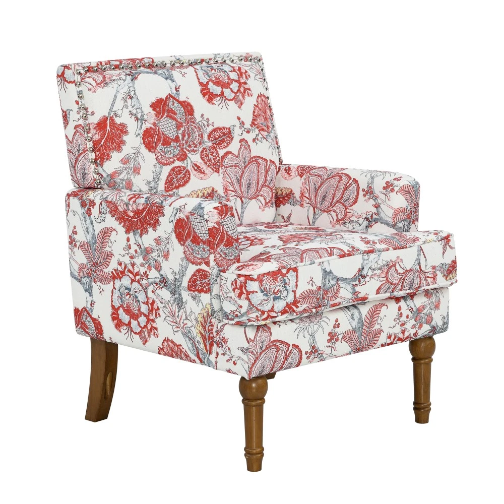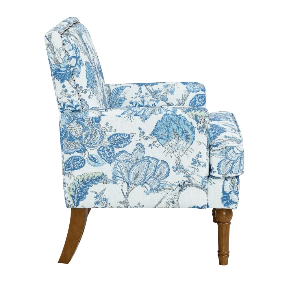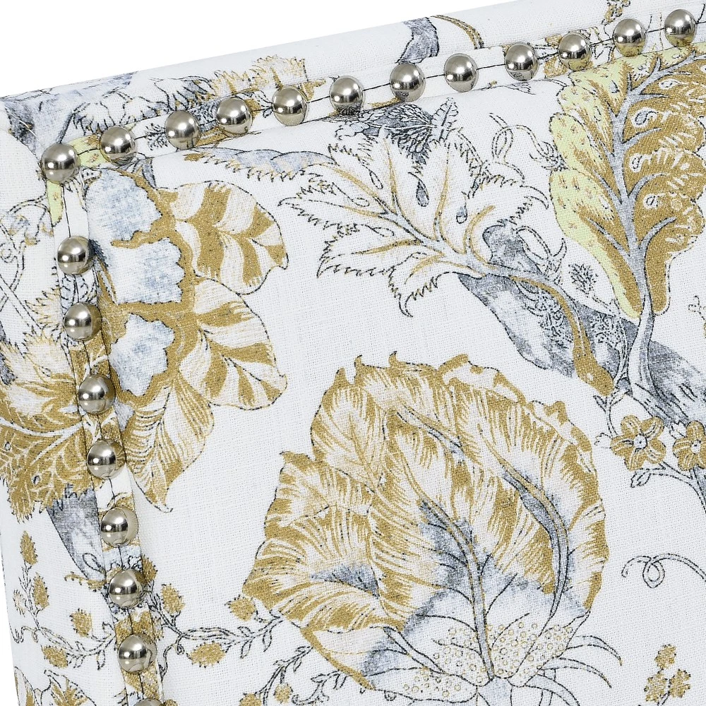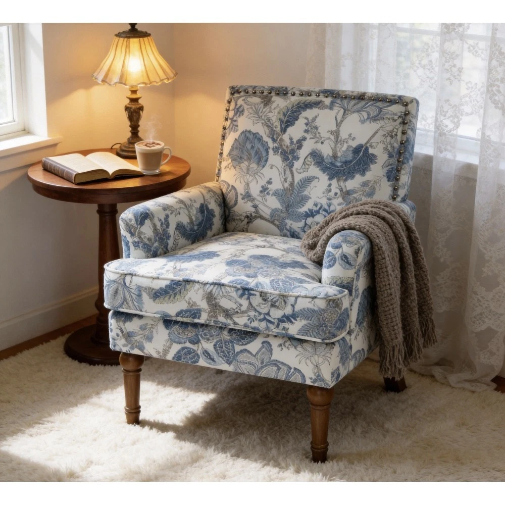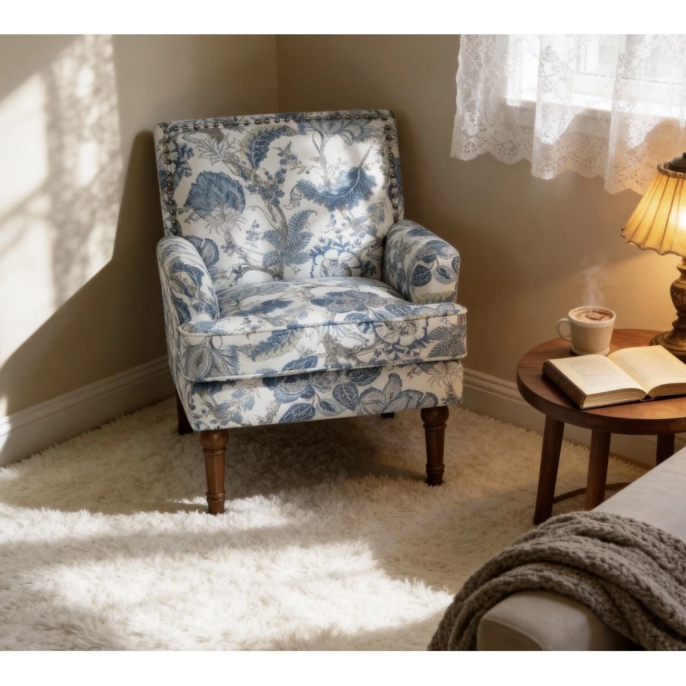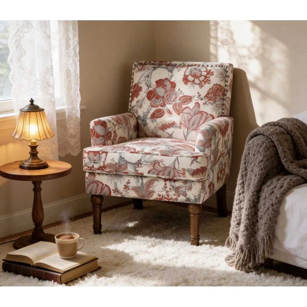 Accent Chair - Earthy Yellow, Floral Print with Nailhead Trim, Solid Wood Legs, Upholstered Slipper Chair for Living Room Elevate your primary living space with this stunning accent chair, crafted in Viet Nam to blend contemporary style with timeless comfort. Upholstered in an earthy yellow fabric adorned with sophisticated gold and grey floral prints, this chair features elegant nailhead trim, sturdy solid wood legs, and plush foam padding—making it a perfect statement piece for farmhouse, transitional, or modern interiors. Chic Botanical Pattern & Warm Earthy Tone. Dressed in a beautiful botanical tapestry-inspired fabric, this accent chair boasts a gold and grey floral print that adds a warm, artistic flair to any room. The earthy yellow base hue complements the floral design, offering a fresh take on classic elegance and making it an eye-catching statement piece that elevates modern farmhouse or transitional decors. Decorative Nailhead Trim for Tailored Sophistication. The chair’s high backrest is elegantly outlined with gleaming metallic nailhead trim, creating a refined, handcrafted aesthetic that exudes vintage luxury. This meticulous detailing adds structural definition to the chair, catching the eye from every angle and enhancing its overall polished look. Sturdy 9” Solid Wood Legs. Elevated by 9-inch tall solid wood turned legs with a natural finish, this chair delivers lasting stability and reliable support. The natural wood tone complements the warm earthy yellow fabric, while the generous 9-inch height makes vacuuming and general room maintenance a breeze—blending functionality with style. Plush High-Density Foam Comfort. Sink into premium comfort with a thick, high-resiliency foam-cushioned seat that retains its shape over time, ensuring long-lasting comfort. The supportive upright back offers ergonomic support, making this chair the perfect spot for long conversations, quiet reading sessions, or simply unwinding after a long day. Versatile for Any Living Space. With its compact silhouette and striking design, this upholstered slipper chair is a versatile addition to any room in your home. Use it as an accent piece in your living room, a cozy seating option in your home office, or a stylish side chair in your bedroom suite—offering both functional seating and a decorative element that enhances your space’s cozy ambiance. Perfect Size & Secure Shipping. The assembled chair measures 28.50”L × 27.00”W × 34.00”H and weighs 38.00 lbs, compact enough to fit in small spaces while still offering ample seating room. It ships in one secure package with dimensions of 27.50”L × 26.00”W × 15.50”H and a package weight of 45.00 lbs. All components are carefully packed with protective materials to prevent transit damage, ensuring your chair arrives in perfect condition. Easy Assembly. This accent chair comes with all necessary hardware and detailed assembly instructions, making setup straightforward even for those with minimal DIY experience. You’ll have your new statement piece ready to enjoy in no time. Care & Important Notes - Care Instructions: Spot clean the fabric with a mild soap solution and a soft cloth to remove dust and spills; avoid harsh chemicals or abrasive materials that may damage the floral print or fabric. Wipe the solid wood legs with a dry or slightly damp cloth to maintain their natural finish. - Color Variation: Actual product color (Earthy Yellow) may differ slightly from images due to lighting, monitor display differences, or fabric variations. This is normal and not a defect. - Size Variation: Manual measurement was used, so there may be some reasonable error between the actual product and the listed dimensions. Measurement data is for reference only. Product Details - Color: Earthy Yellow (with Gold & Grey Floral Print); Material: Wood + Fabric; Filling: Foam; Product Type: Accent Chair / Slipper Chair / Side Chair; Style: Contemporary; Origin: Viet Nam. - Assembled Dimensions: 28.50”L × 27.00”W × 34.00”H; Product Weight: 38.00 LBS. - Package Dimensions: 27.50”L × 26.00”W × 15.50”; Package Weight: 45.00 LBS; Number of Packages: 1; Assembly Required: Yes. - Key Features: Floral Botanical Print, Metallic Nailhead Trim, 9” Solid Wood Legs (Natural Finish), High-Density Foam Cushioning, Ergonomic Back Support, Compact Silhouette, Versatile Use. - Package Includes: 1 × Accent Chair, All Necessary Hardware, Detailed Assembly Instructions. - Applicable Scenario: Primary Living Space, Living Room, Home Office, Bedroom Suite; Perfect for adding style and comfort to any contemporary or farmhouse-inspired space. Warranty & Return Policy This Earthy Yellow Floral Accent Chair with Nailhead Trim is backed by a 1-year warranty against manufacturing defects, ensuring reliable durability and long-lasting use. We also offer a 30-day free return & exchange guarantee for your complete peace of mind. If you’re not fully satisfied with your purchase—whether it’s the quality, design, comfort, assembly process, or shipping—simply return it within 30 days for a full refund or replacement, no questions asked.