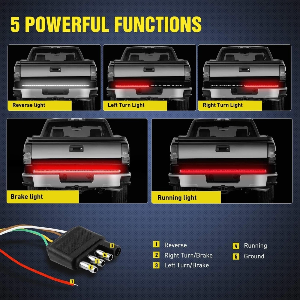 Accesorios Para Camiones Barra De Luz Led Strip Light Led Blanca De 60 Pulgadas. BRILLO INCREÍBLE: la barra LED para portón trasero Redline tiene 108 LED que brillan un 35 % más que los chips normales y garantizan que su automóvil se pueda ver incluso en el tráfico más denso, de día o de noche. LUCES LED FLEXIBLES Y DURADERAS: carcasa sellada IP67, protege bien las tiras LED contra gotas de lluvia, nieve, suciedad y arena, súper duraderas y flexibles con hasta 30 000 horas de vida útil NO REQUIERE PERFORACIÓN: viene con un potenciador adhesivo resistente que aumenta la fuerza de sujeción más de 5 veces. No es necesario perforar, no se caerá, incluye hardware de montaje para una instalación más segura. MONTADO EN CUALQUIER LUGAR CON FUENTE DE ALIMENTACIÓN DE 12 V - Tiras LED de 60", nominal de 12 V, ultra largas para iluminación de toldos de carga/camioneta/camper/garaje/RV o decoración de fiestas en el hogar. Uso múltiple: ampliamente utilizado en luz de caja de camioneta, luz de toldo de RV, iluminación LED de barra de estribo, lámpara LED de puerta lateral, kit de luz de caja de camioneta, etc. Ideal para bricolaje. Y amplio uso para camionetas Jeep, RV, SUV. Con un voltaje de trabajo de 12 V CC, se adapta al encendido ámbar en la mayoría de los vehículos. Como Dodge Ram 1500 2500, 3500, 4500, Ford F150, F250, Chevy, Silverado, GMC, Sierra, Toyota Tundra y la mayoría de los automóviles, camiones, camionetas, SUV, RV, furgonetas, remolques, etc.