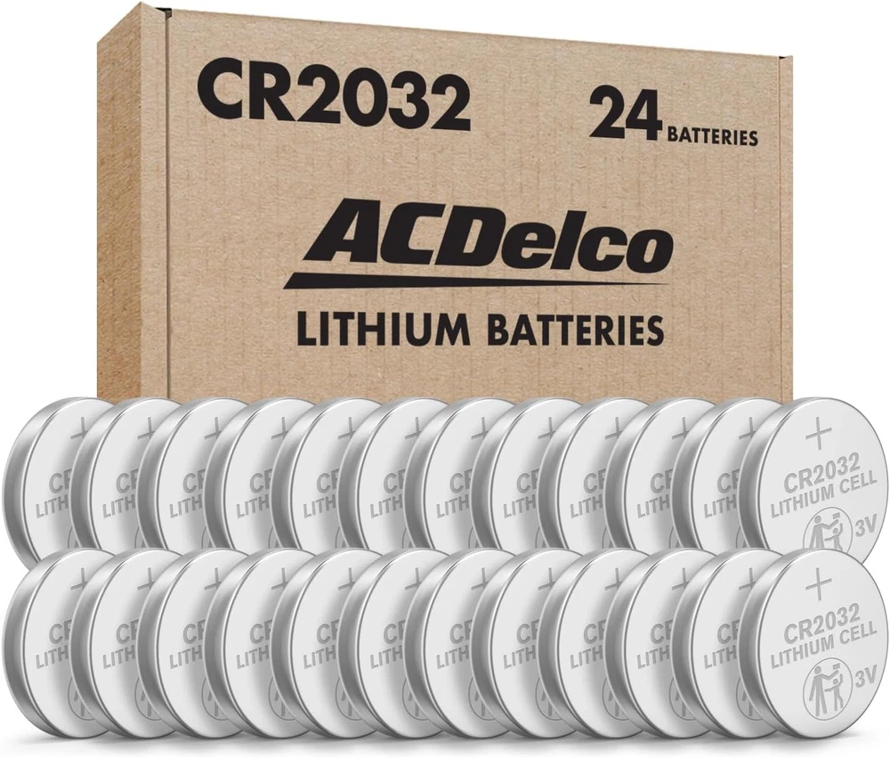 24 LITHIUM 3V BATTERIES: This convenient and cost effective pack of 24 lithium CR2032 3-volt coin cell batteries comes in child-protective packaging and delivers long-lasting and reliable performance for small electronic devices, making this perfect for those who want a small quantity of reliable batteries SMALL HOME AND OFFICE ELECTRONIC DEVICES: ACDelco 3 Volt lithium coin cell batteries deliver optimal power you can depend on to common every day office and household devces such as watches, calculators, key fobs, medical devices, Apple AirTags, remote controls, games, toys, sporting goods and more, making this an excellent long-term value for around the home, office, emergency kits, and much more ENVIRONMENTAL IMPACT: Our 3-volt batteries contain no mercury or cadmium, making them a smart choice for your family and for the environment LONG-LASTING POWER: All ACDelco 3V lithium coin cell batteries feature high energy density to deliver a long-lasting power source, and are built to last with an impressive 5 year shelf life when stored under normal conditions. Our button cells protect against leakage so that you can keep them easily stored long-term REPLACES DL2032: Our CR2032 lithium coin cell battery can be used in place of the DL2032 for same uses ACDelco CR2032 3 Volt Lithium Coin Cell Batteries are equipped with advanced technology which provide reliable and long-lasting performance that you can count on, making them perfect for daily use in your home or office. ACDelco button cell batteries feature high energy density to deliver a long-lasting and reliable power source, making them very valuable for long-term use. ACDelco lithium coin batteries are designed with a 5 year shelf life for long-lasting reliability, and feature anti-leakage protection for easy long-term storage. This circle battery assortment storage pack includes 24 three volt circular batteries great for a variety of small hoursehold and office electronics such as watches, calculators, car key fob devices, medical devices, Apple Air Tags, remote controls, games, toys, sporting goods and more. The 3 V flat coin cell batteries contain no mercury or cadmium, making them a smart choice for your family and for the environment. A trusted national brand, ACDelco offers a wide variety of batteries you can count on, including alkaline batteries, lithium round coin cell batteries, rechargeable batteries, and car batteries. Our CR2032 lithium coin cell battery can be used in place of the DL2032.