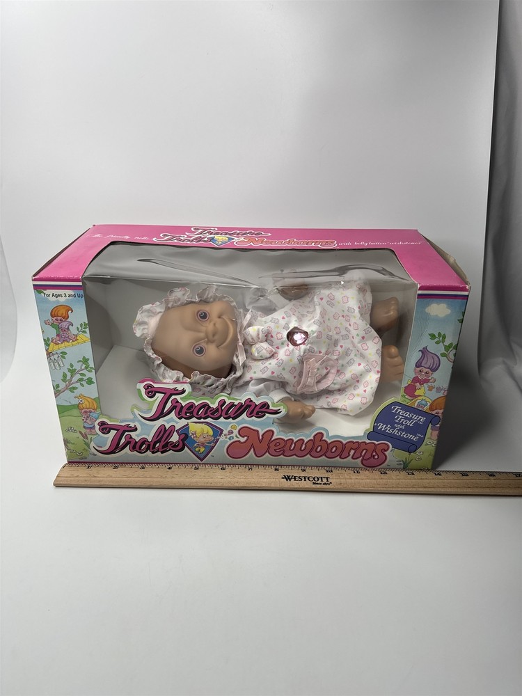 Ace Treasure Troll Baby 10" Pink Belly Button Wishstone Newborns Troll Doll NOS Item is vintage new old stock and as such may show signs of aging/wear/tear as pictured. Please check out the pictures and let me know if you have any questions. Thank you for checking out my shop! :) Our hand-selected products are carefully examined, photographed, and stored in a smoke-free environment. Orders received by 2pm ET generally ship the next business day from Pennsylvania via USPS. I'm happy to combine shipping on orders; eBay should provide a combined shipping quote in many cases. I can always combine shipping manually as well if that is helpful.