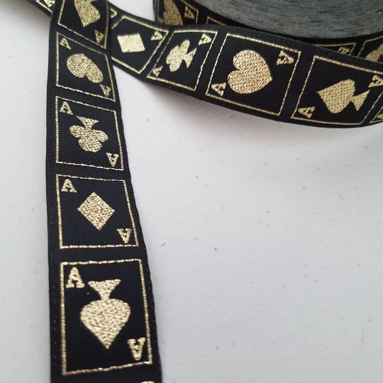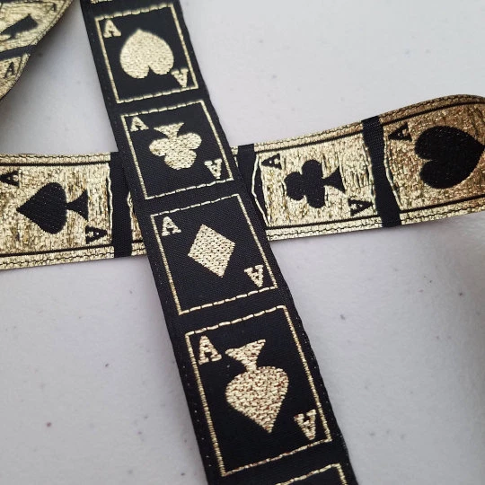 Ace playing card Casino metallic Jacquard Trim 7/8 inch wide Sold by the Yard