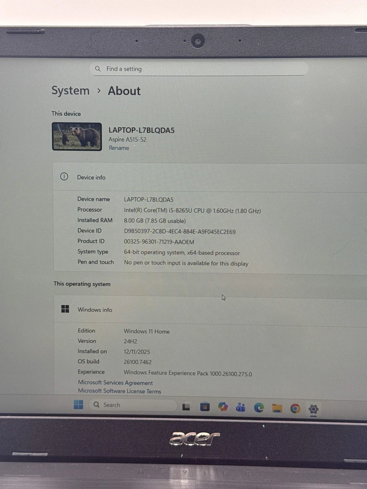 Acer A515-52 N18C1 15.6" i5-8265U 1.6GHz 8GB RAM 256GB SSD Acer A515-52 N18C1 15.6" i5-8265U 1.6GHz 8GB RAM 256GB SSD Item Specifications Condition Used - A Processor Intel Core i5-8265U @ 1.60GHz RAM 8GB Storage 256GB Screen Size 15.6 inch Cosmetic Description:The laptop has some scratches on the front and back casing from normal use. The keyboard is in good condition and functions properly. The screen is in pristine condition, clear, and free from any marks or blemishes. Overall, the laptop is in good condition and is functional This Acer Aspire A515-52 series laptop is powered by an Intel Core i5-8265U processor, making it suitable for a range of computing tasks from everyday browsing to more demanding applications. With 8GB of RAM and a 256GB NVMe SSD, it offers efficient multitasking and quick load times, ideal for students and professionals alike. Whether for work or leisure, this laptop provides robust performance and versatility. Although it has visible cosmetic wear, it's been tested and is fully functional, ensuring a reliable computing experience. Perfect for anyone seeking an economical laptop that delivers on both performance and value. Shipping & Returns:Free shipping and free 30 day returns. Gadget Grabber Home About us CustomerFeedback Contact seller shop All categories shop All categories Video Games & Consoles Computers/Tablets & Networking Consumer Electronics Cell Phones & Accessories Cameras & Photo Musical Instruments & Gear Everything Else Fast Shipping 30 Days Hassle Free Returns eBay Money Back Guarantee 100% Authentic, Tested Products Top Products from Best Brands Acer A515-52 N18C1 15.6" i5-8265U 1.6GHz 8GB RAM 256GB SSD $109.99 visit store Contact seller Great Customer Service Great Feedback Product Description Acer A515-52 N18C1 15.6" i5-8265U 1.6GHz 8GB RAM 256GB SSD Item Specifications Condition Uséd - A Processor Intel Core i5-8265U @ 1.60GHz RAM 8GB Storage 256GB Screen Size 15.6 inch Cosmetic Description: The laptop has some scratches on the front and back casing from normal use. The keyboard is in good condition and functions properly. The screen is in pristine condition, clear, and free from any marks or blemishes. Overall, the laptop is in good condition and is functional This Acer Aspire A515-52 series laptop is powered by an Intel Core i5-8265U processor, making it suitable for a range of computing tasks from everyday browsing to more demanding applications. With 8GB of RAM and a 256GB NVMe SSD, it offers efficient multitasking and quick load times, ideal for students and professionals alike. Whether for work or leisure, this laptop provides robust performance and versatility. Although it has visible cosmetic wear, it's been tested and is fully functional, ensuring a reliable computing experience. Perfect for anyone seeking an economical laptop that delivers on both performance and value. Shipping & Returns: Free shipping and free 30 day returns. Shipping & returns With any purchase from Gadget Grabber, youâre also purchasing a guaranteed satisfaction with your item and your experience. Our team members are dedicated to making it happen, but mistakes do happen. If for any reason you are not satisfied with your purchase, please contact us before installing the item. payment Immediate payment is required upon selecting "Buy It Now" or upon checking out through the cart. We accept payment via U.S. PayPal accounts and all Major Credit Cards, Debit Cards & Google Pay. We are legally required to collect sales tax in those states and localities where we maintain a physical presence (nexus). The applicable amount of sales tax charged to an order will be calculated based on the shipment destination's state and local sales tax laws. Thank you for shopping with us on eBay! Featured Category Video Games & Consoles Shop Now Computer Tablet/ Networking Shop Now Consumer Electronics Shop Now Smartphones/ Cellphones Shop Now Cell Phones & Accessories Shop Now CUSTOMER REVIEWS 8***0 (90) Verified purchase Received the camera very quickly. It was packaged well and secured with nothing broken upon arrival. Everything looked just like the photos and i feel as if i got a great price for what i received. Highly recommend this seller! Thank you n***6 (15) Verified purchase Great seller, item arrived as described, excellent communication and packaging, highly recommend! x***e (1539) Verified purchase Item as described. Item well packaged. Fast shipping Great communication with seller. Highly recommended seller. I'I deal with you again. a***r (146) Verified purchase Great seller! The device was packaged welled and arrived before the expected date. The device was exactly as described and works perfectly. I would recommend this seller to others! m***n (22) Verified purchase Everything was great and price was even better! Quick shipping, packaged well, as described. a***n (49) Verified purchase Good price and game worked great! Game was shipped right away and was packaged safely. It was exactly as described. t***k (475) Verified purchase Great price, shipped quickly and with good packaging. As described, thank you! j***m (49) Verified purchase Shipping was fast. So well packed. Every was described to the T... The grandkids and I will have fun!! Would buy again from seller. A+++++. Thank you. c***a (20) Verified purchase Fast shipping, good price, and nice packaging. Would buy from again. GET THE LATEST WERKO DISCOUNT & NEWS Want to know when your favourite products go on sale? Access exclusive discounts & stay on top of the latest products. Subscribe to our mailing list for insider news, product launches, and more. subscribe now information Store Home About Us Sale Customer Feedback Contact Seller our categories Video Games & Consoles Computers/Tablets & Networking Consumer Electronics Cell Phones & Accessories Cameras & Photo Musical Instruments & Gear Everything Else Copyright © Gadget Grabber 2025. All Right Reserved. | Design by eStoreNinja.com eBay integration by